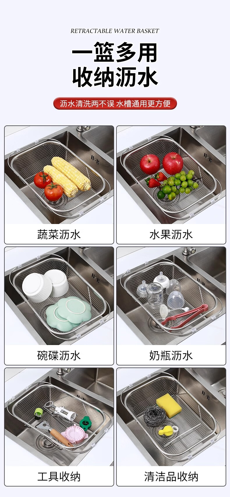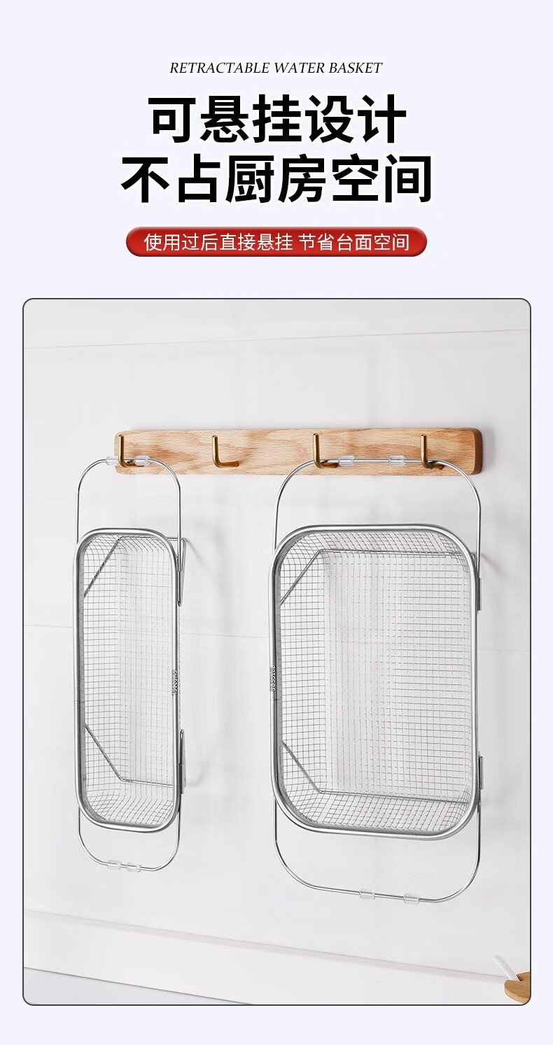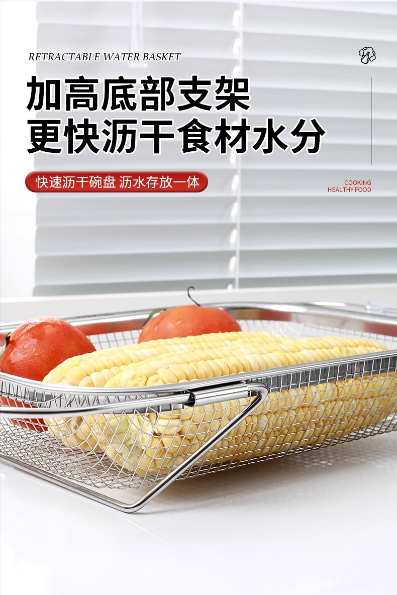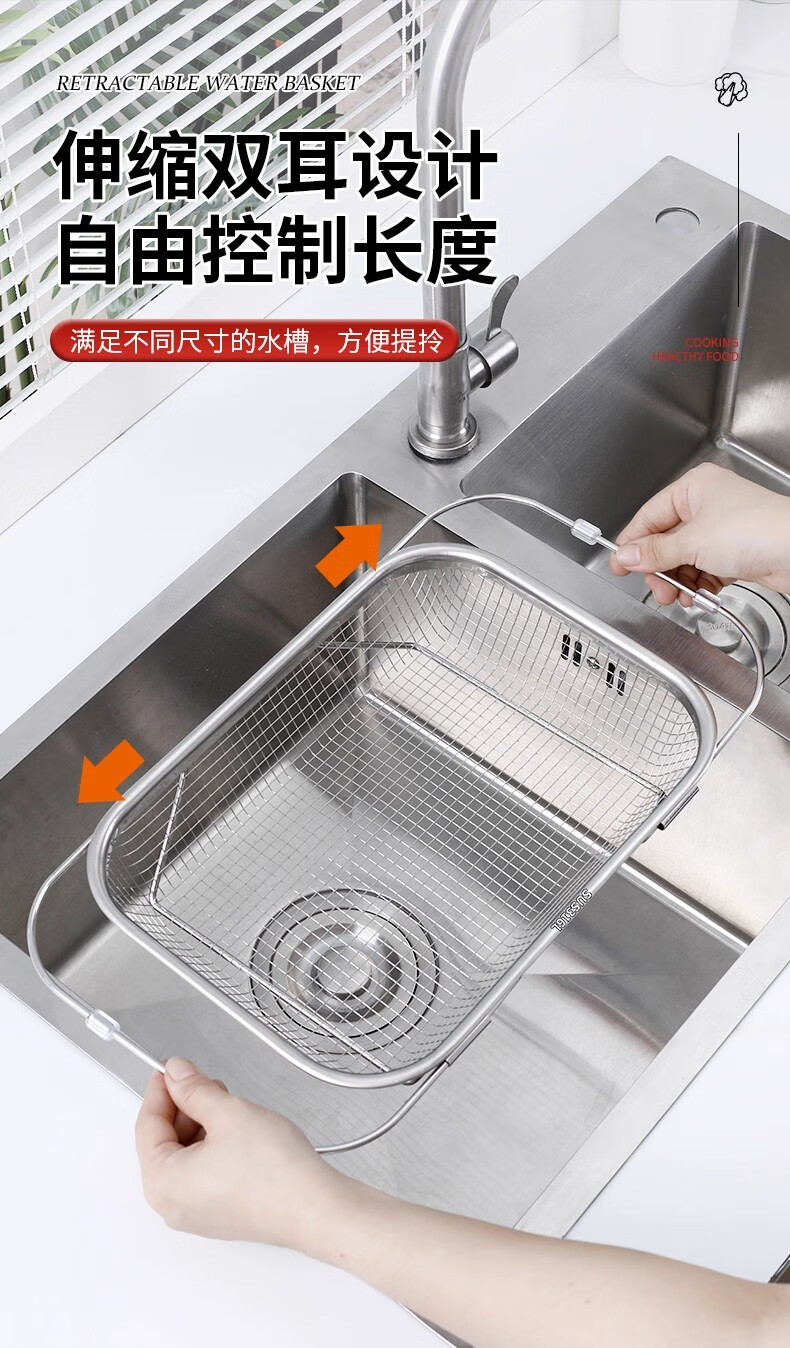物萃不锈钢水槽沥水篮厨房水池伸缩洗菜盆沥水架多功能餐具碗筷沥水架 可伸缩沥水架【小号】