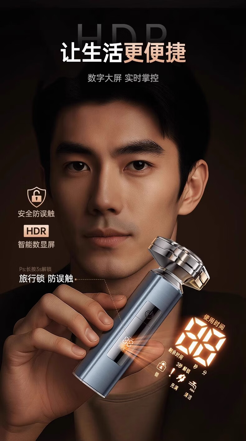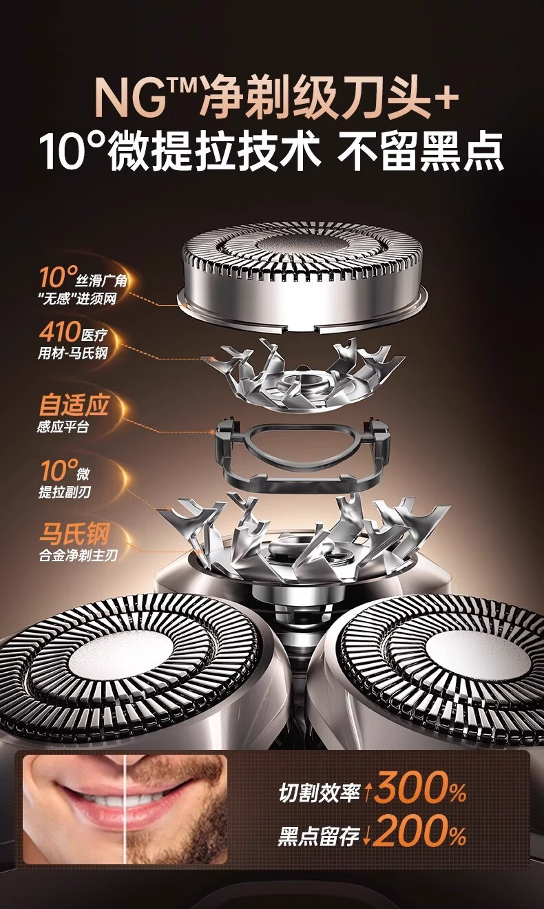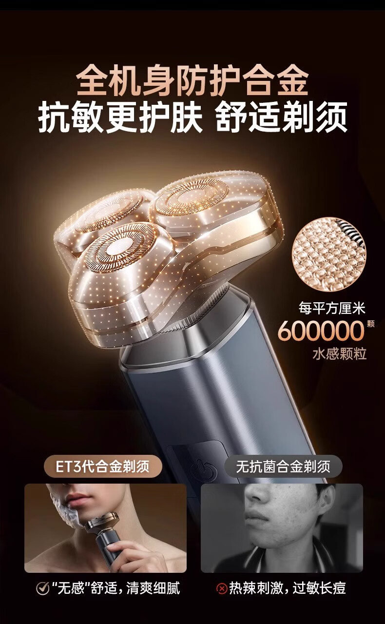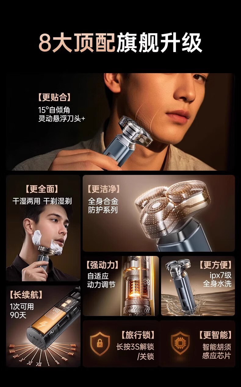 飒望【德国】剃须刀电动男士2025新款全自动超长续航全身水洗旅行便捷式复式刮胡刀送父亲男友生日礼物 耀夜黑净剃款【合金机身-超强续航】