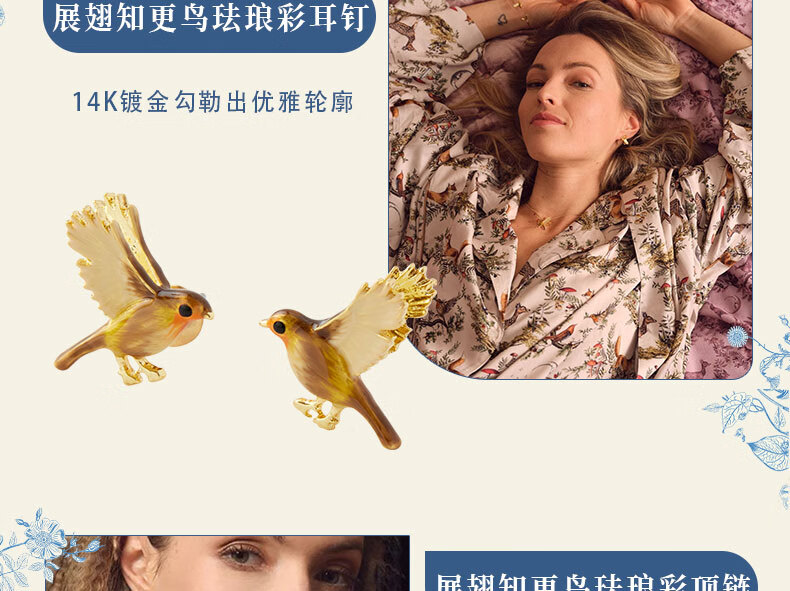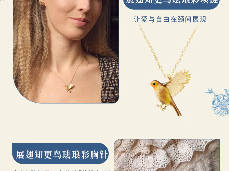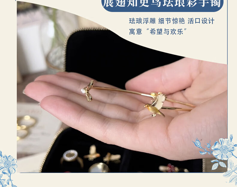 Fable展翅知更鸟珐琅彩手镯动物系列女生开口设计小众百搭元旦生日礼物 展翅知更鸟珐琅彩手镯 1个