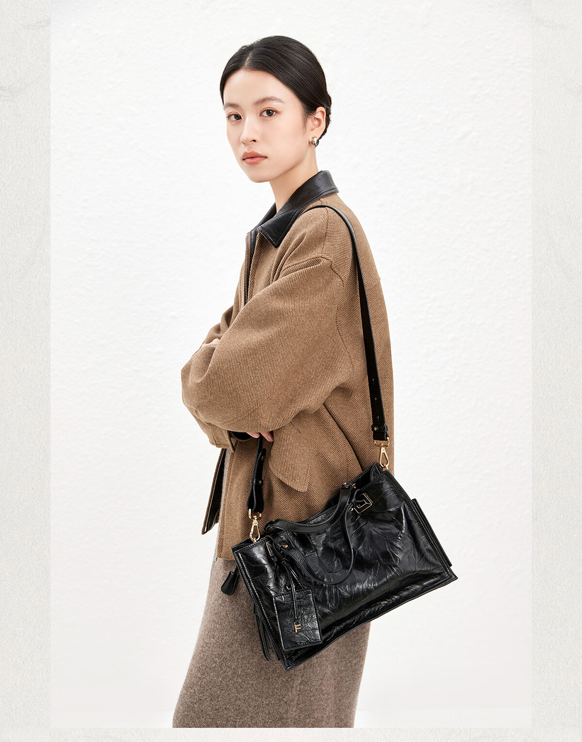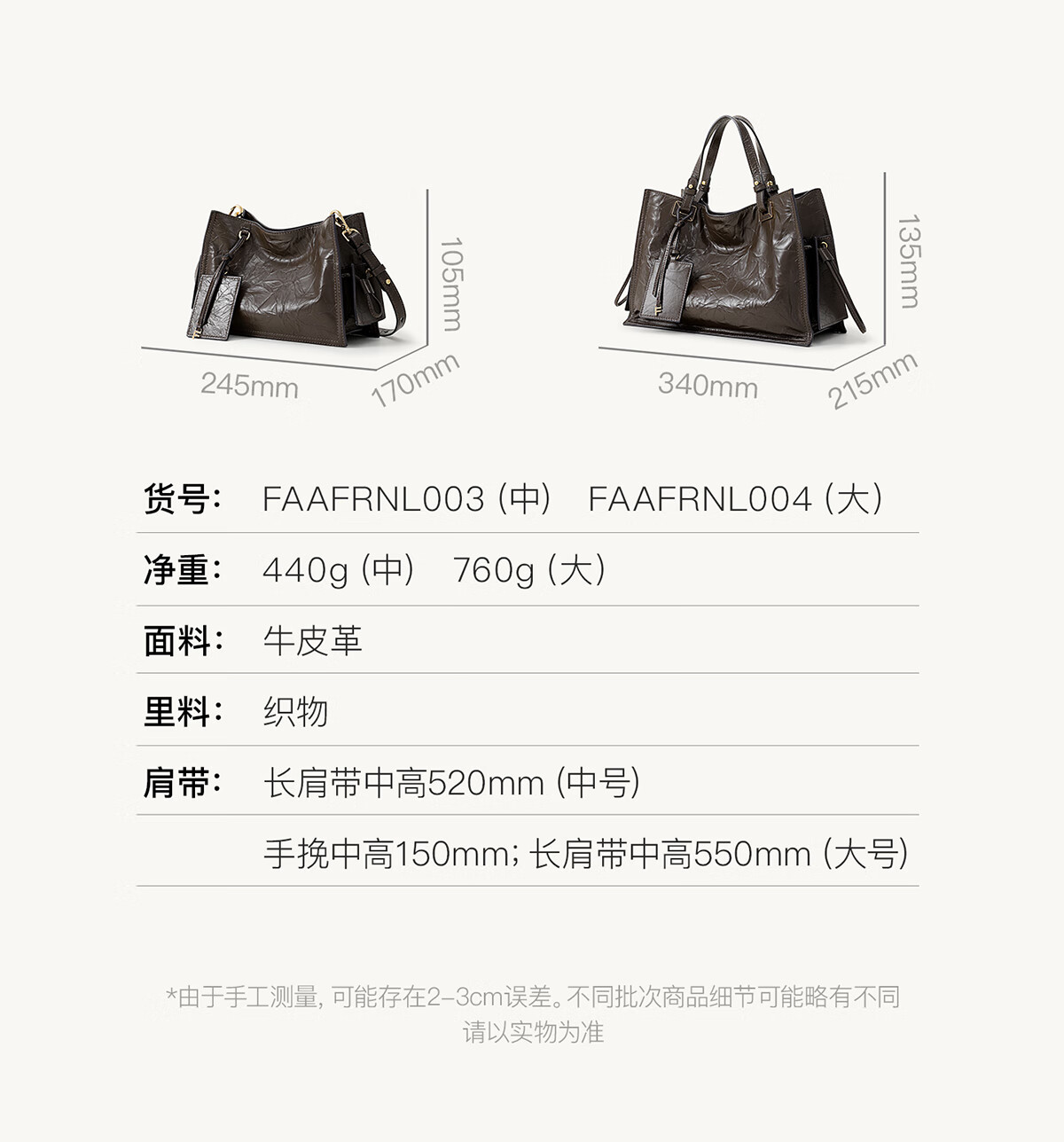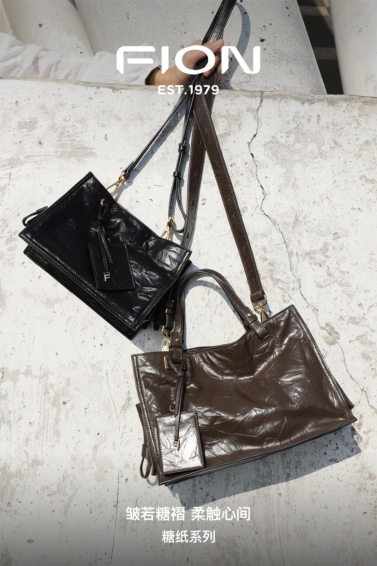 菲安妮(FION)2025新款包包女包托特包高级感大容量手提斜挎包 生日礼物 褐-大款