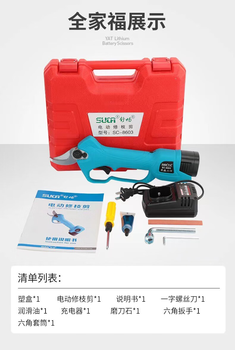 舒畅推荐舒畅电动修枝剪果树充电式手剪树枝电剪子修枝剪锂电剪刀 8603舒畅剪刀二电一充送刀片