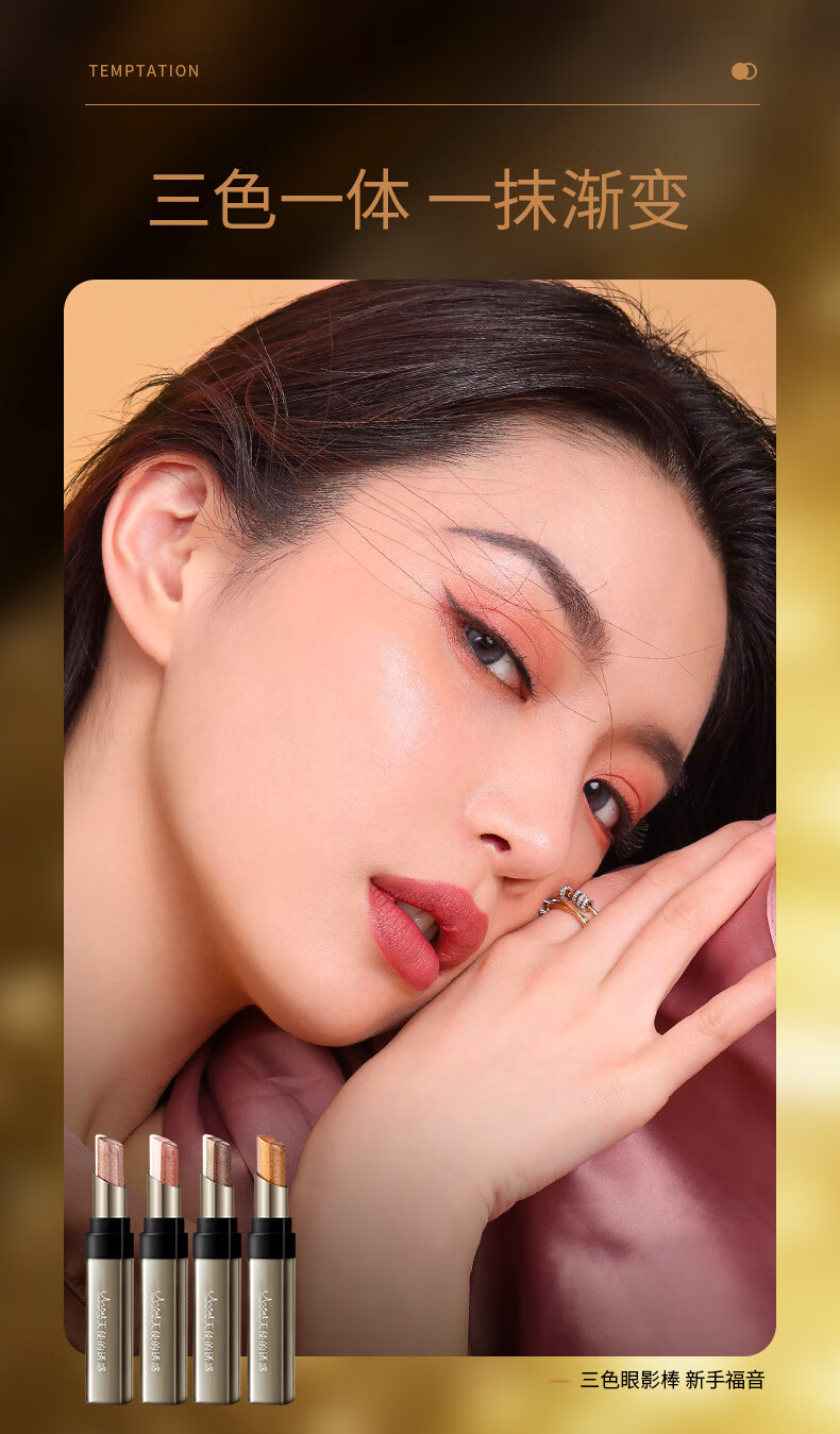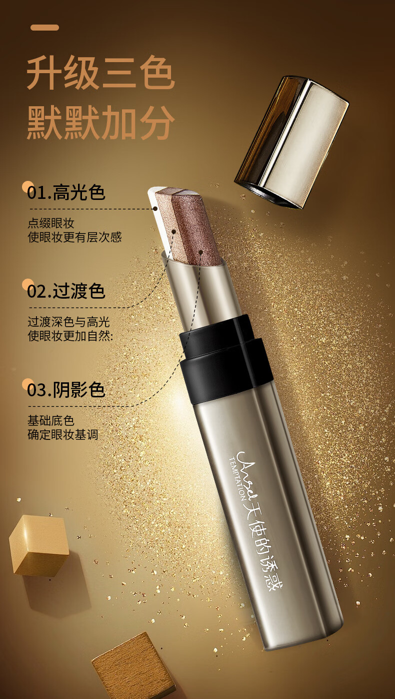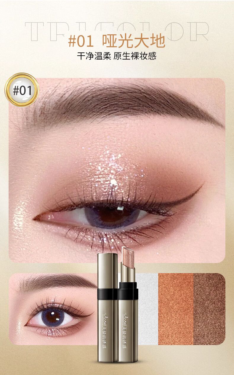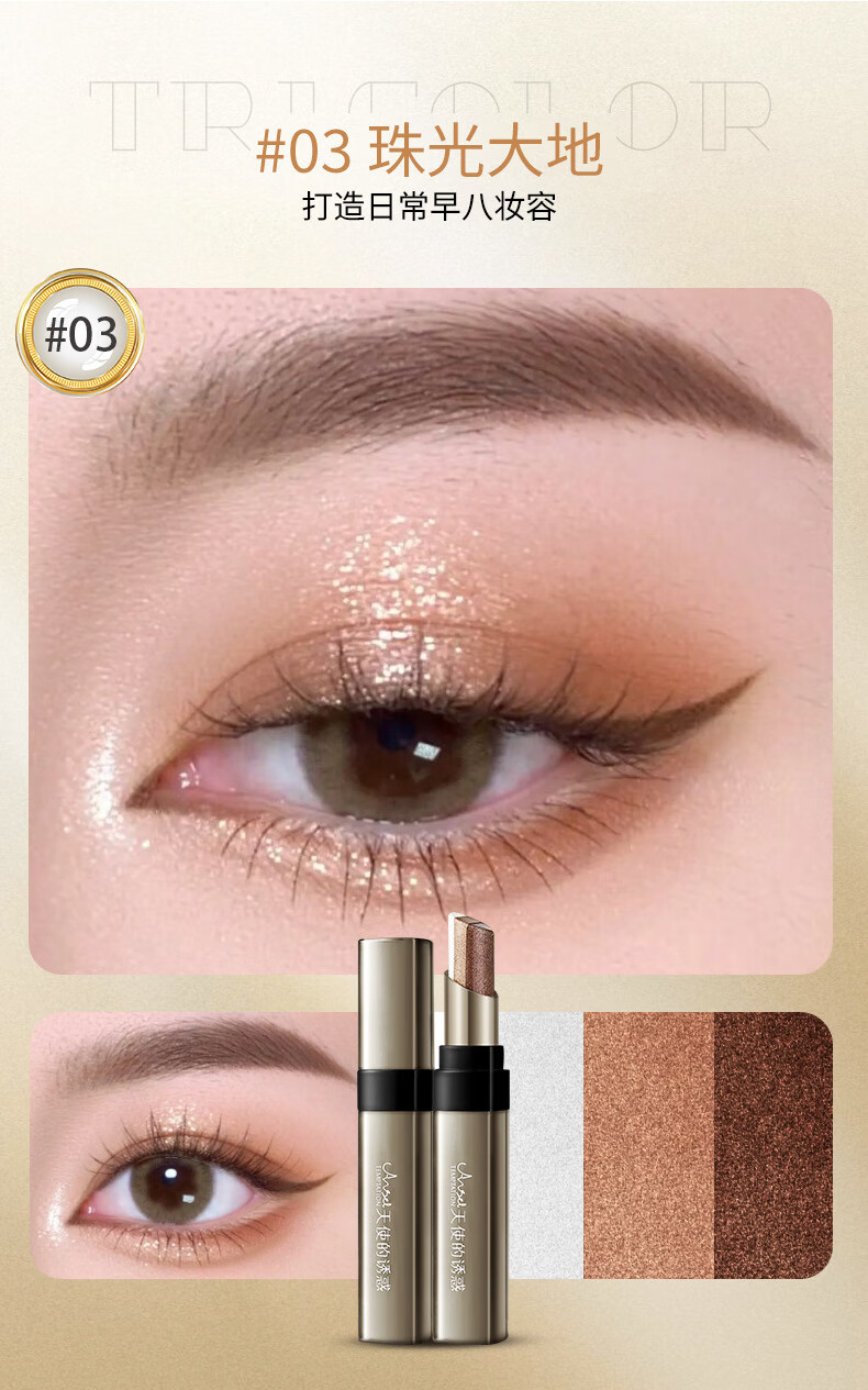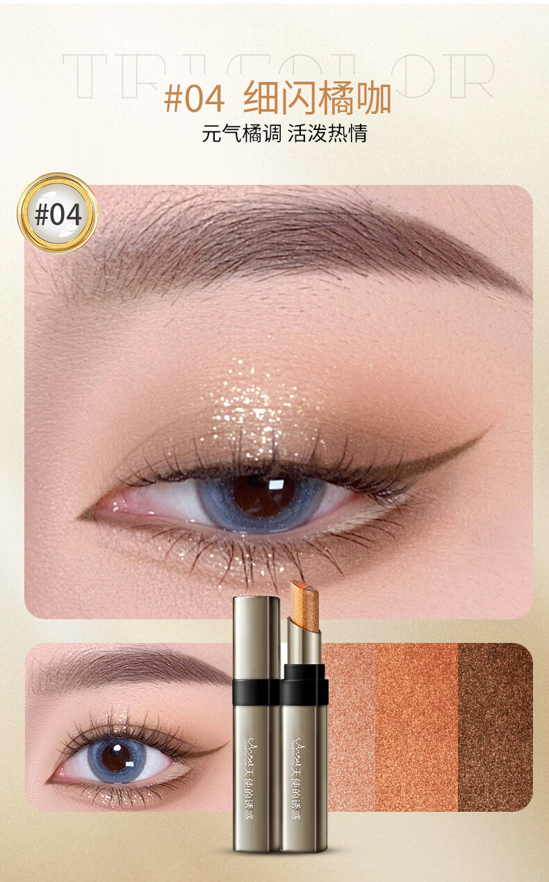 AGAG灿若繁星一抹渐变三色眼影棒懒人新手一抹成妆持妆眼影送女神节礼 04#细闪橘咖