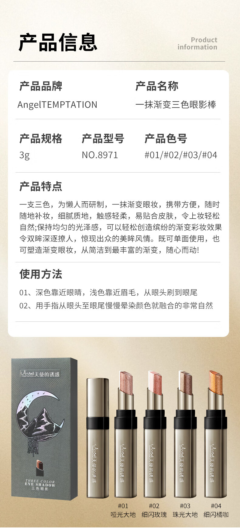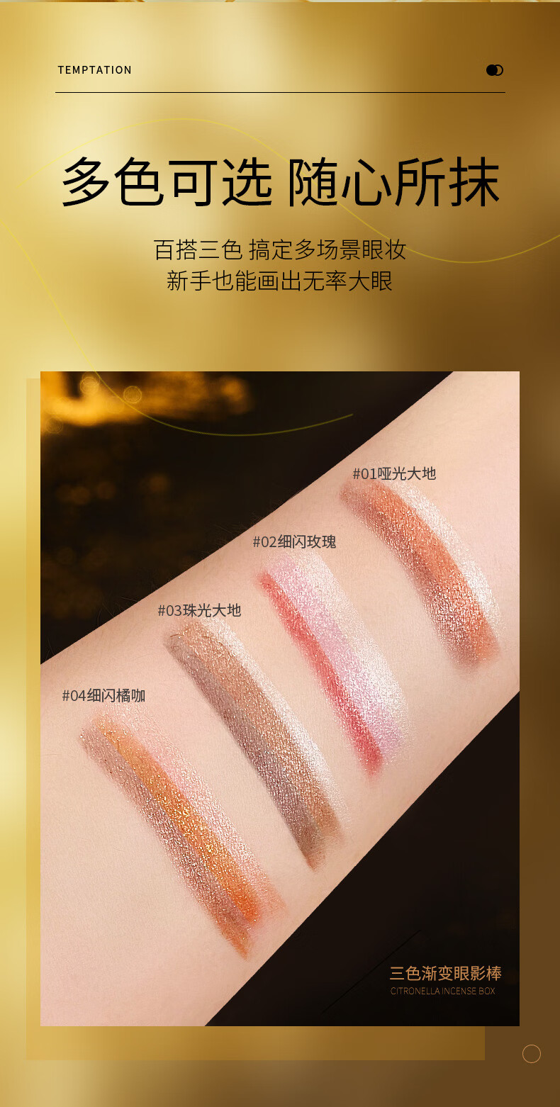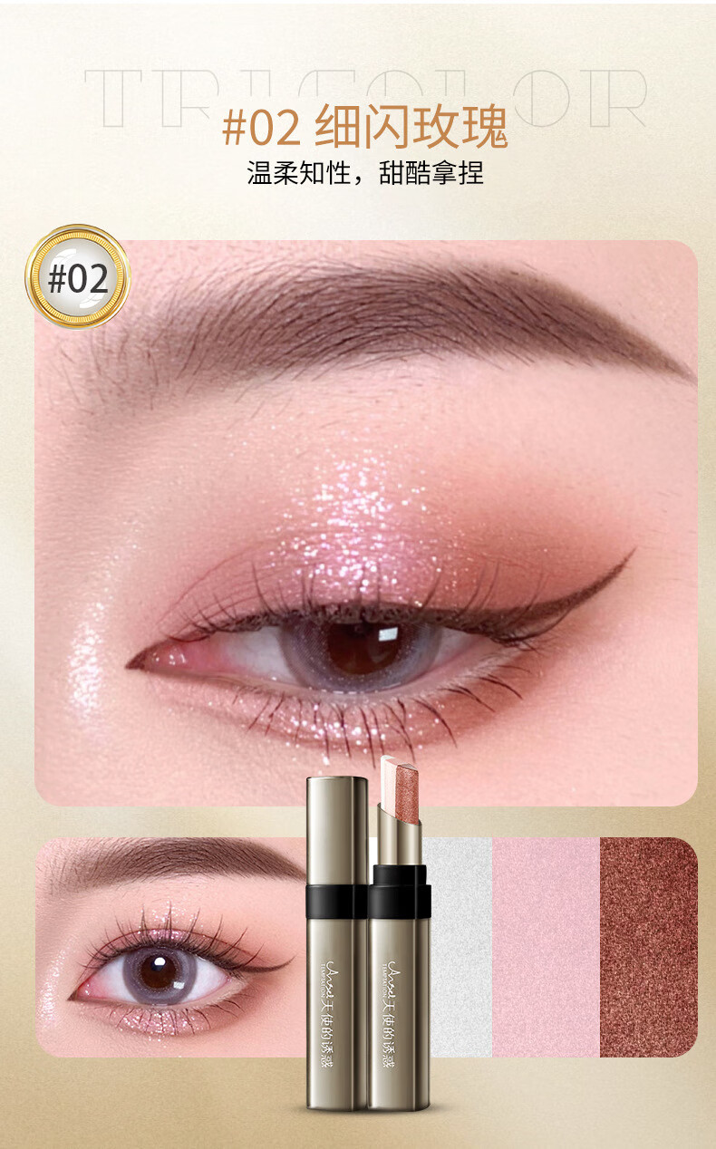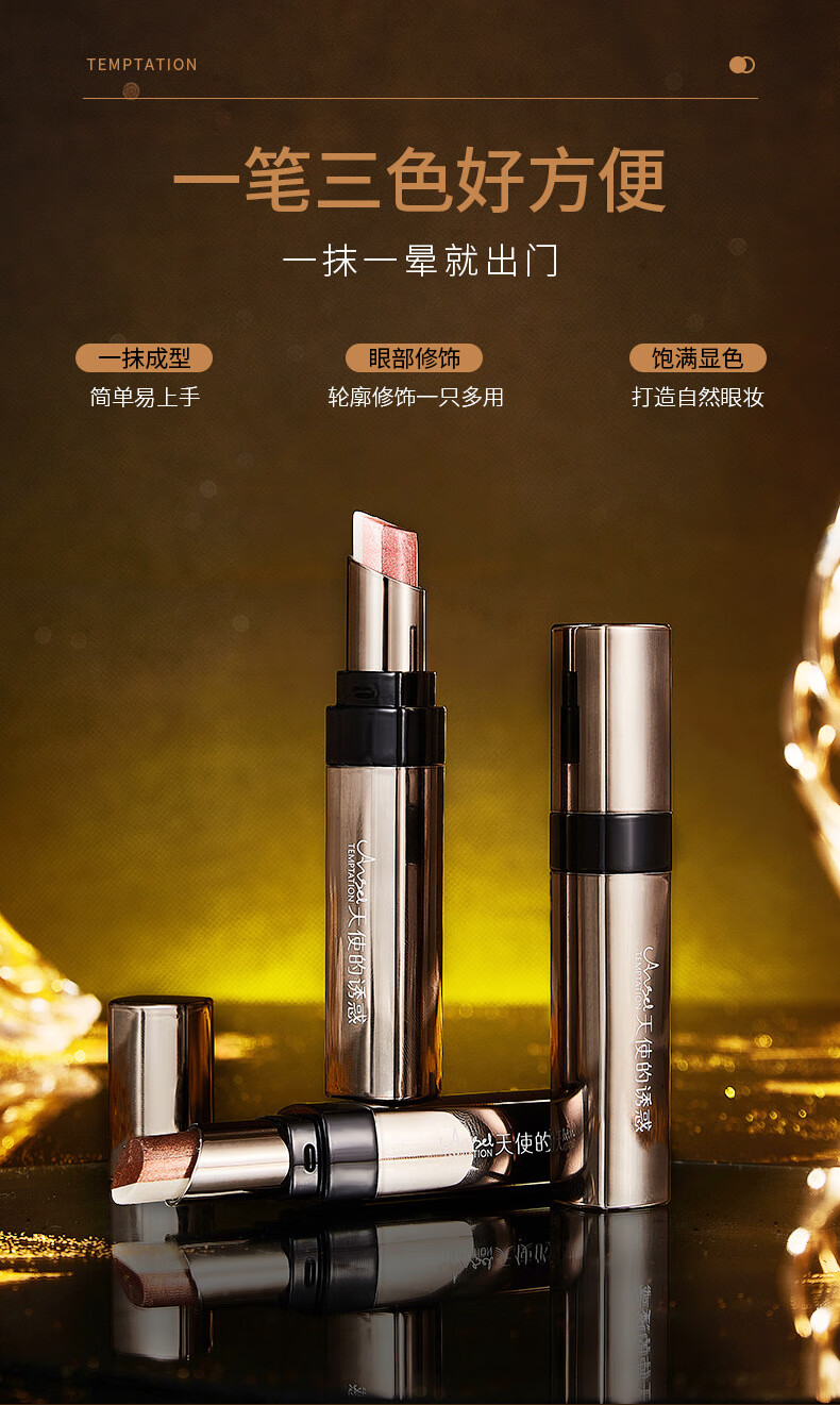 AGAG灿若繁星一抹渐变三色眼影棒懒人新手一抹成妆持妆眼影送女神节礼 04#细闪橘咖