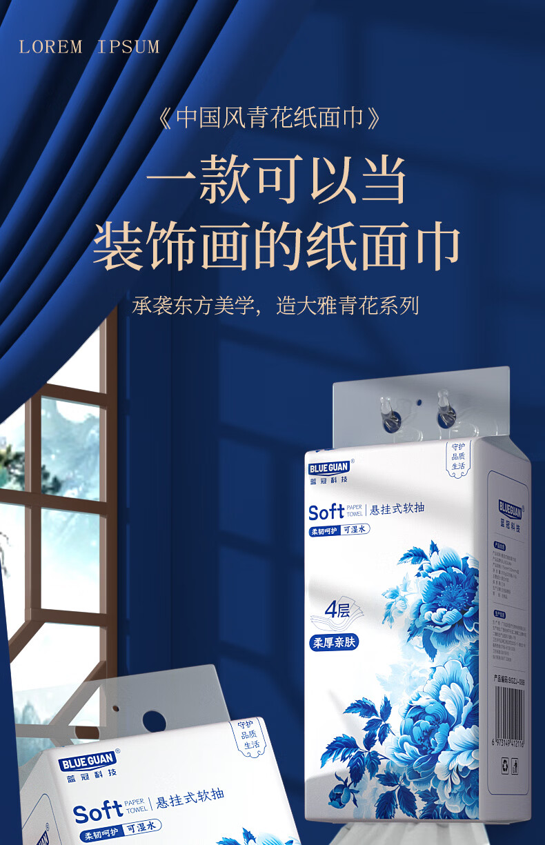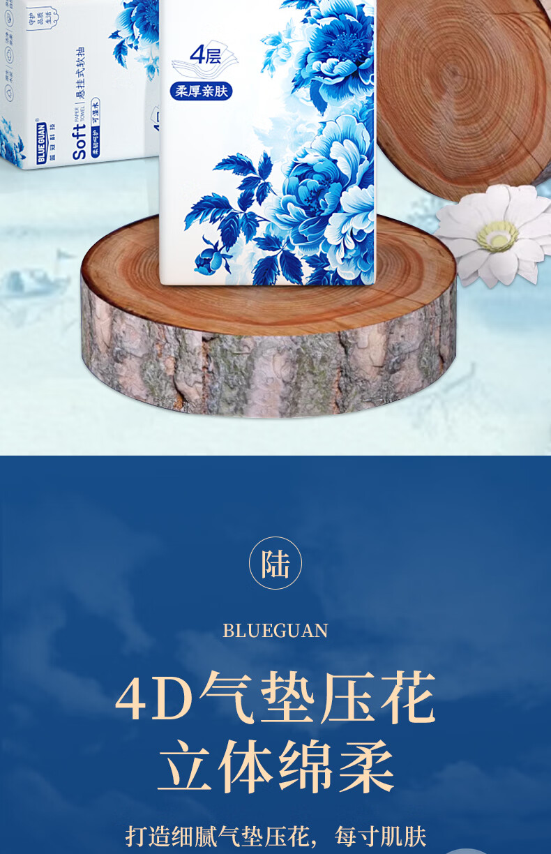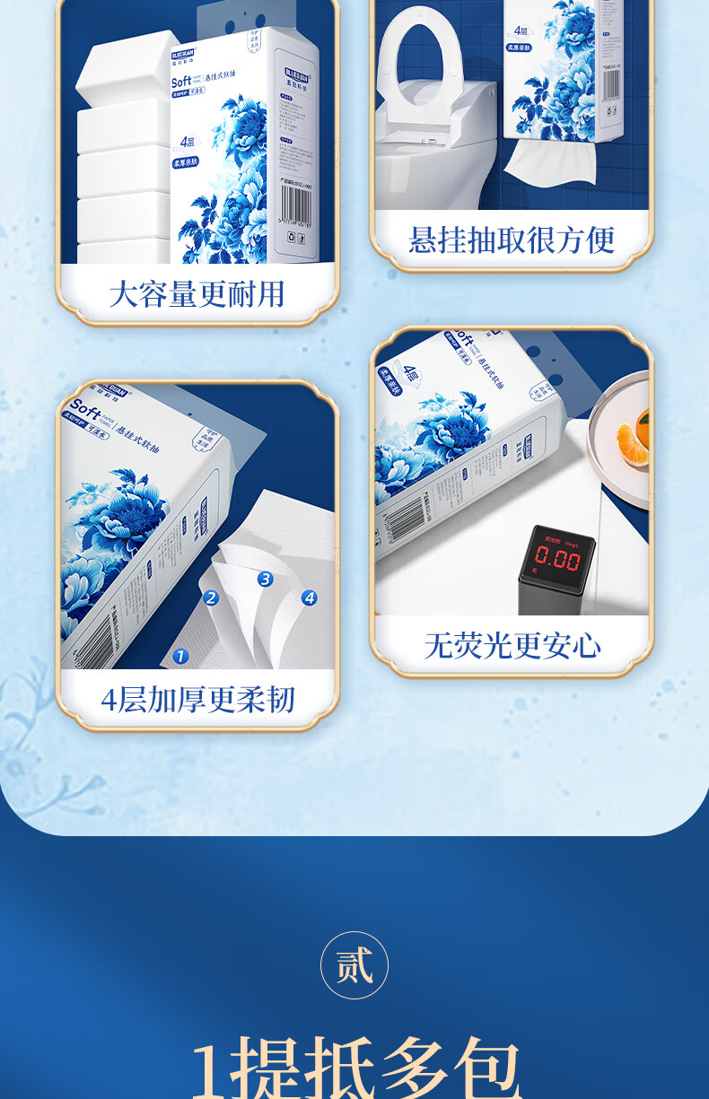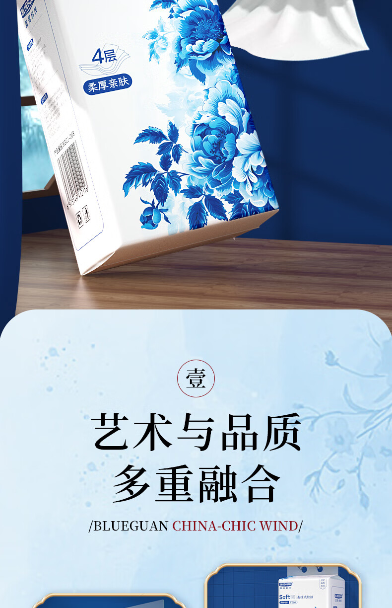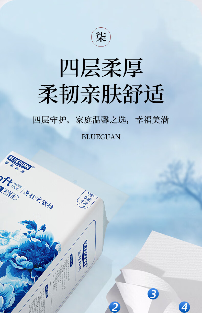 如蕾餐厅专用抽纸 餐巾纸厕纸擦手卫生纸 美观古风 便捷面巾 整箱批发 青花瓷200抽4层10提