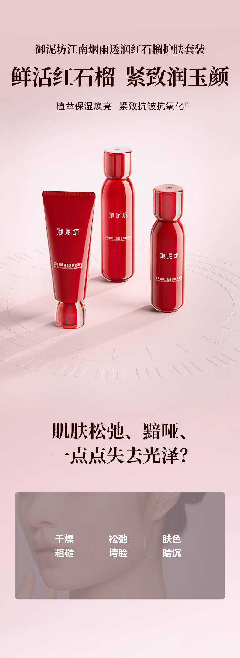 御泥坊红石榴套装护肤礼盒 补水保湿紧致套盒女 三件套(洁面+水+乳)