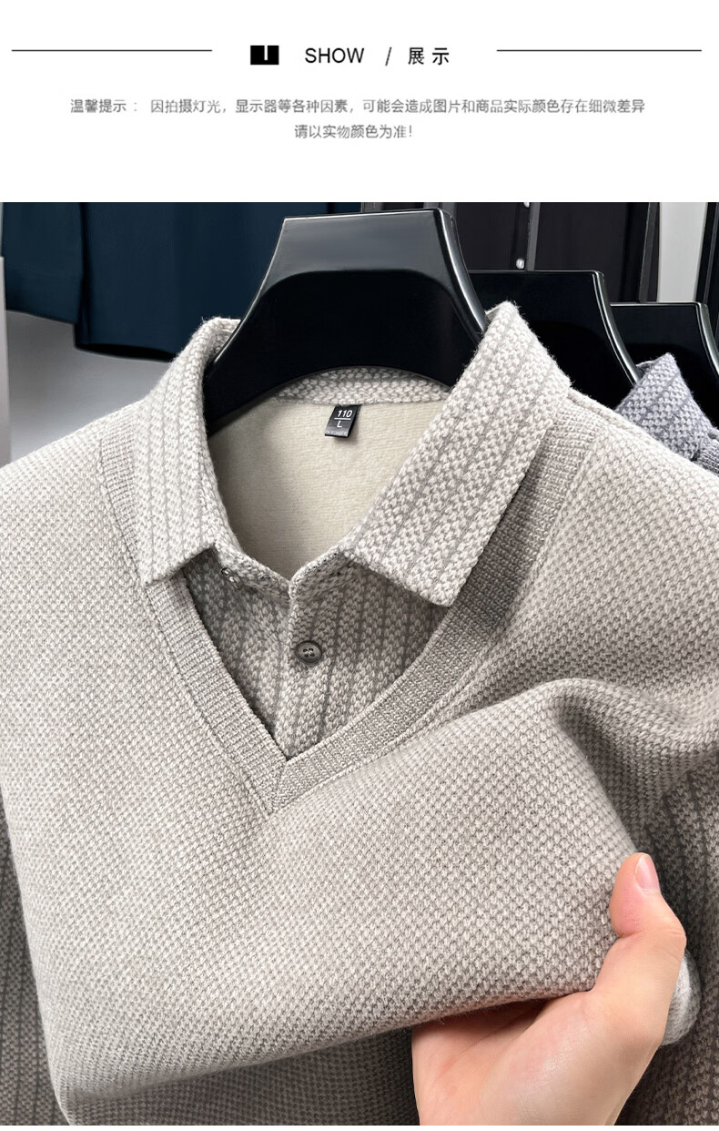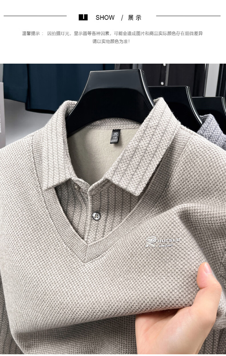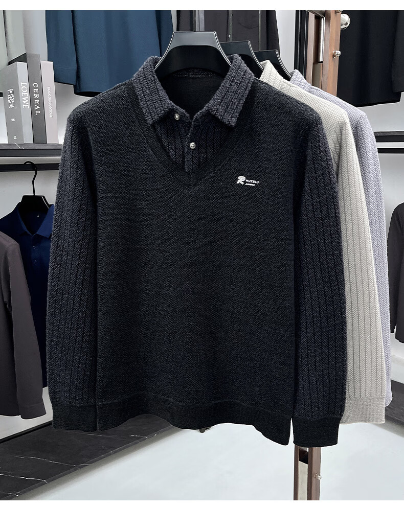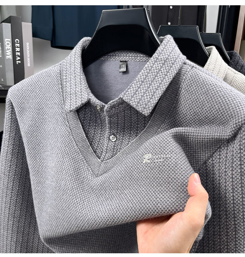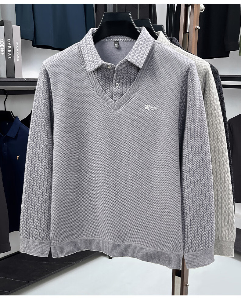 罗蒙(ROMON)仿雪貂绒假两件加绒毛衣2025秋冬季新款保暖男士打底针织衫上衣 222灰色 3XL (建议体重155-170斤)