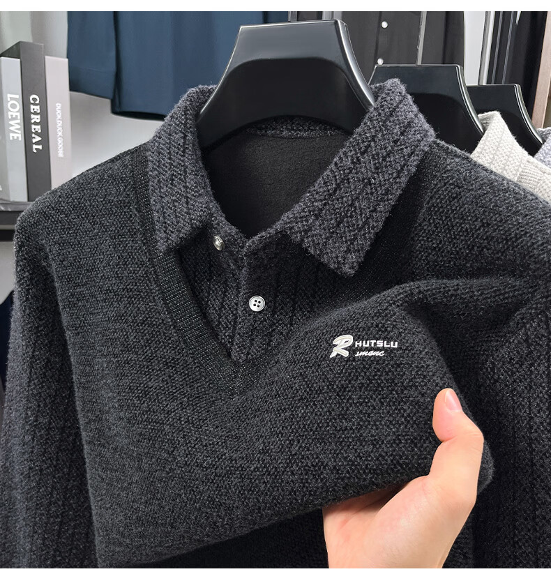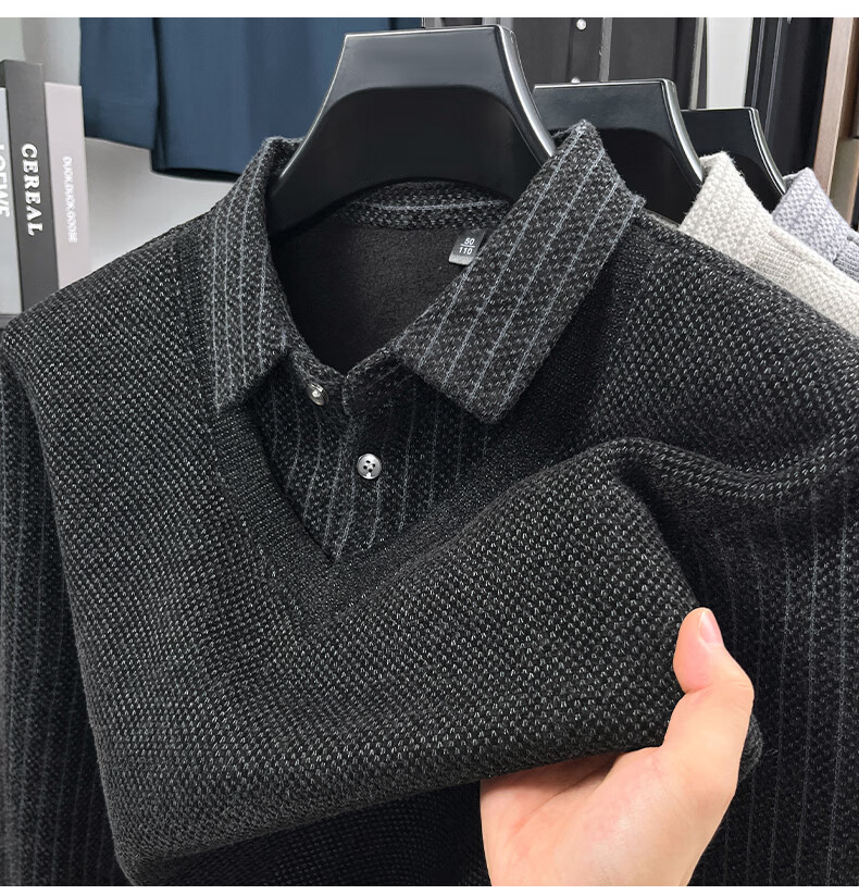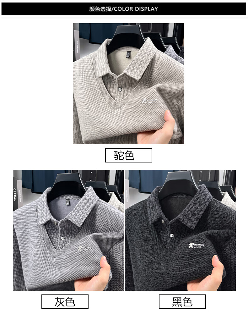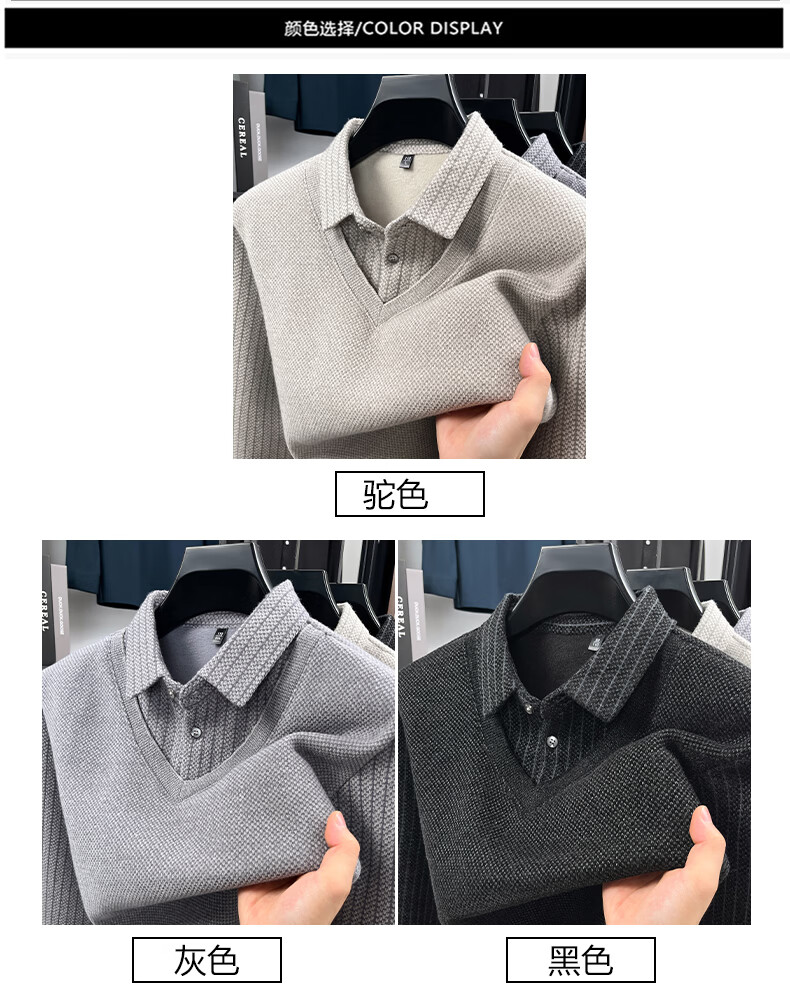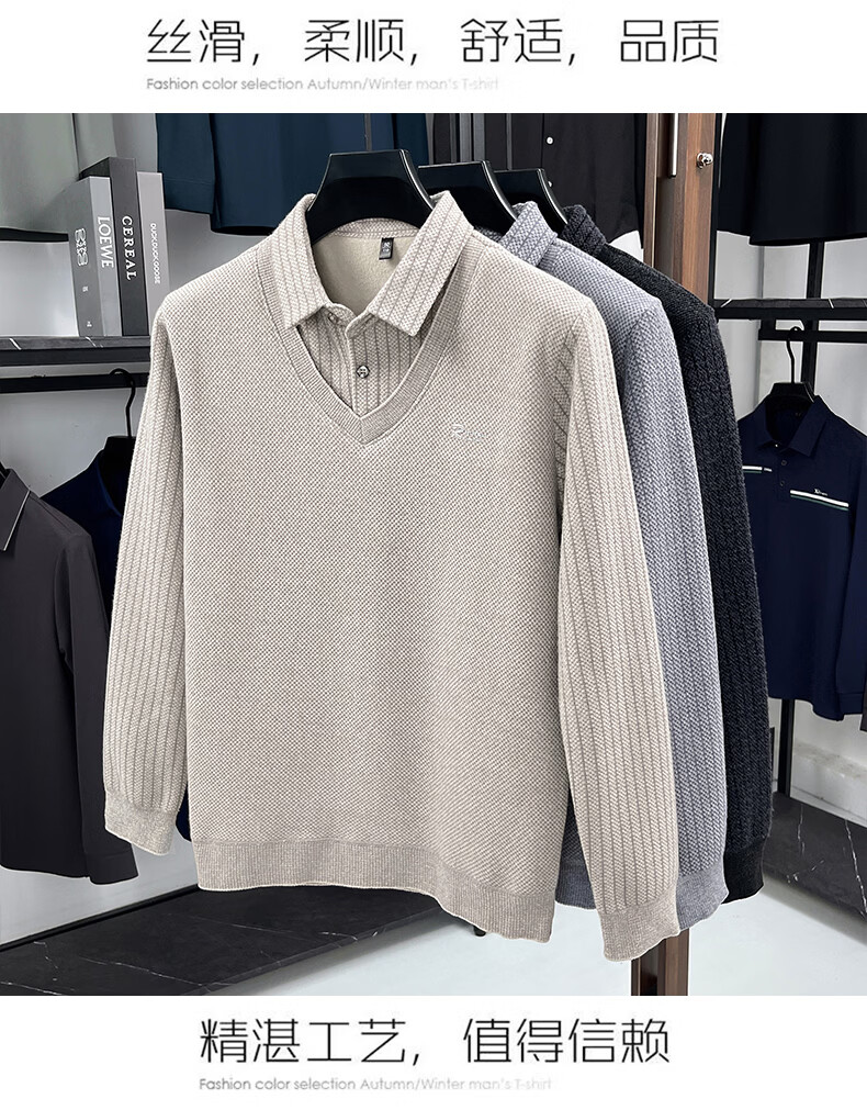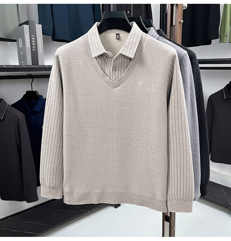 罗蒙(ROMON)仿雪貂绒假两件加绒毛衣2025秋冬季新款保暖男士打底针织衫上衣 222灰色 3XL (建议体重155-170斤)