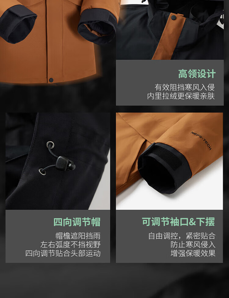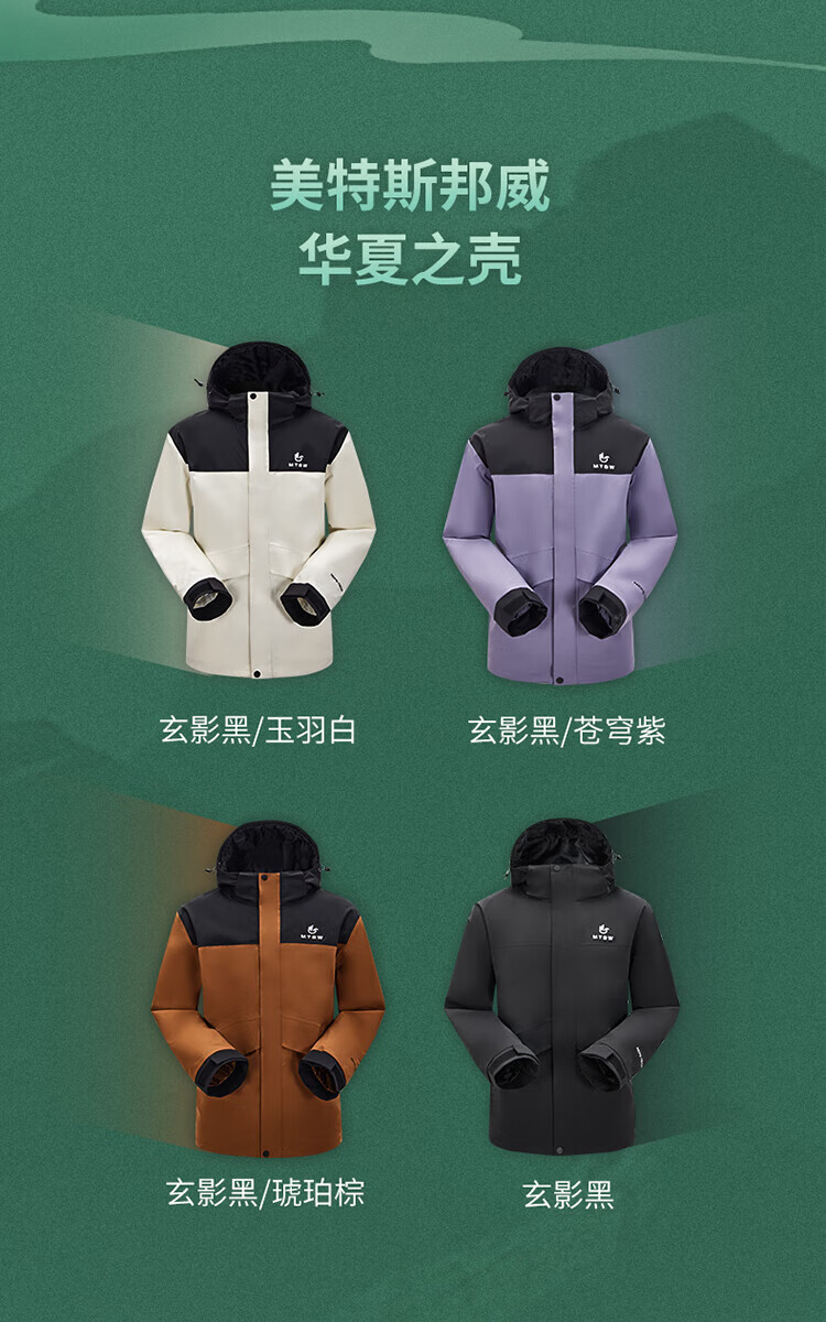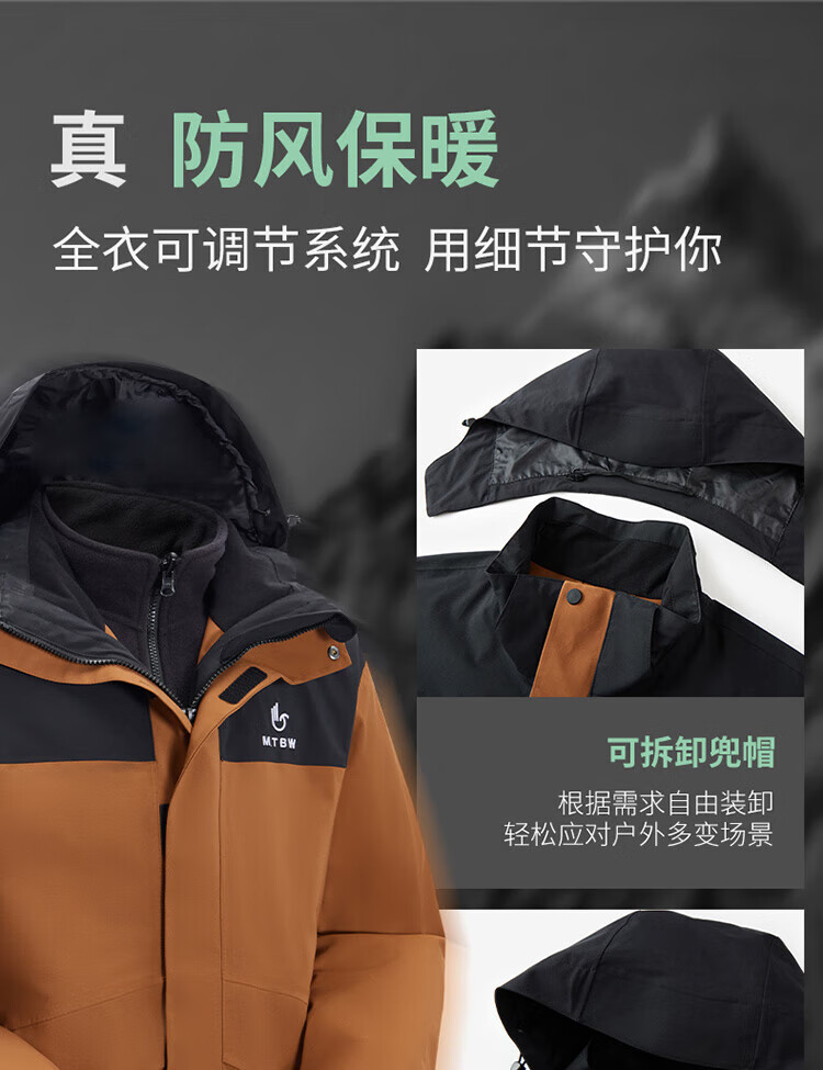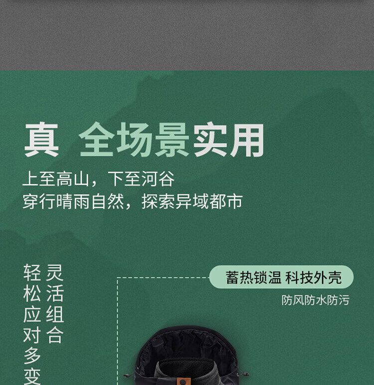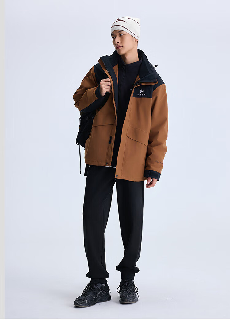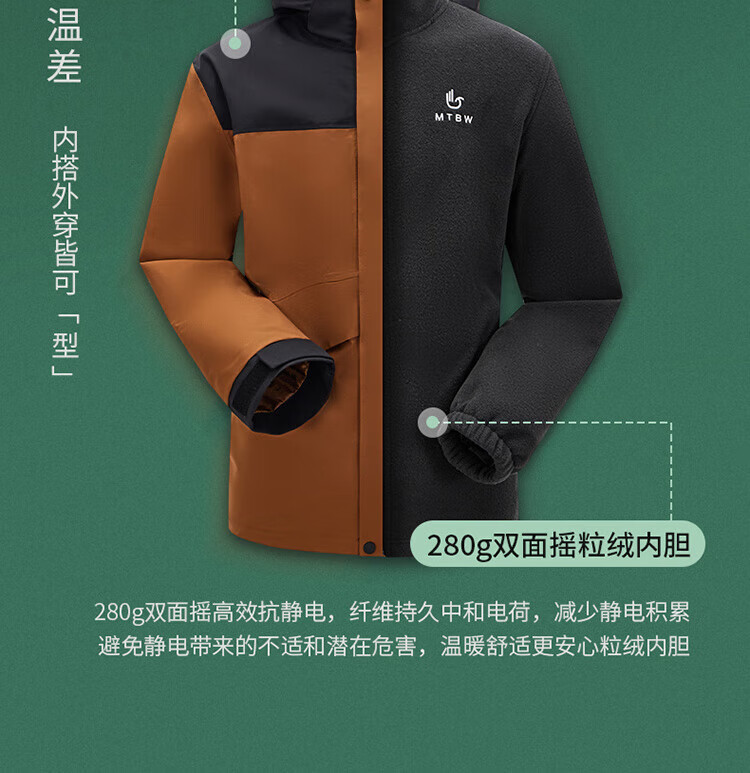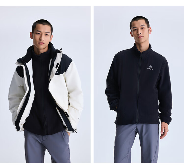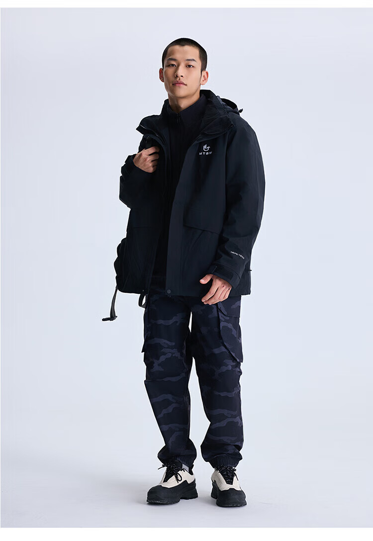 美特斯邦威25秋冬新款户外运动登山服三合一摇粒绒内胆冲锋衣外套 【三合一】抓绒内胆-鱼子酱黑 L 175 96A