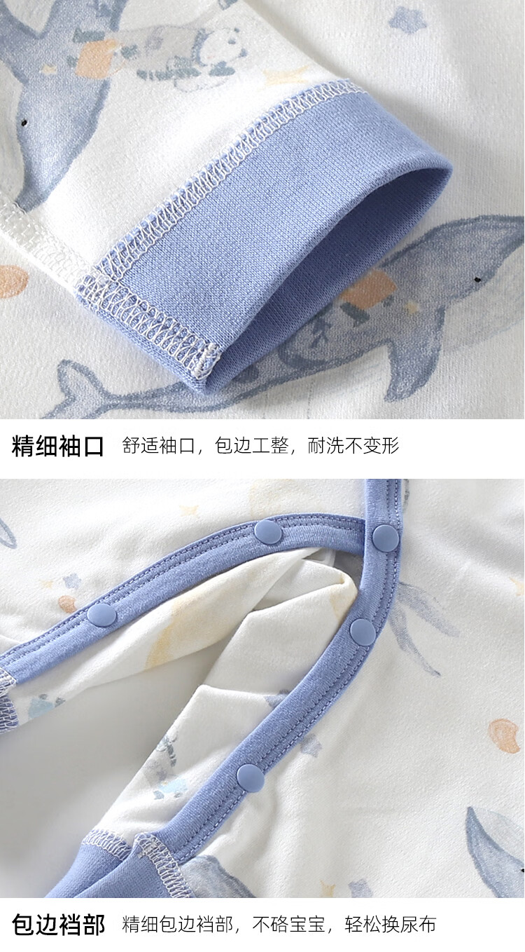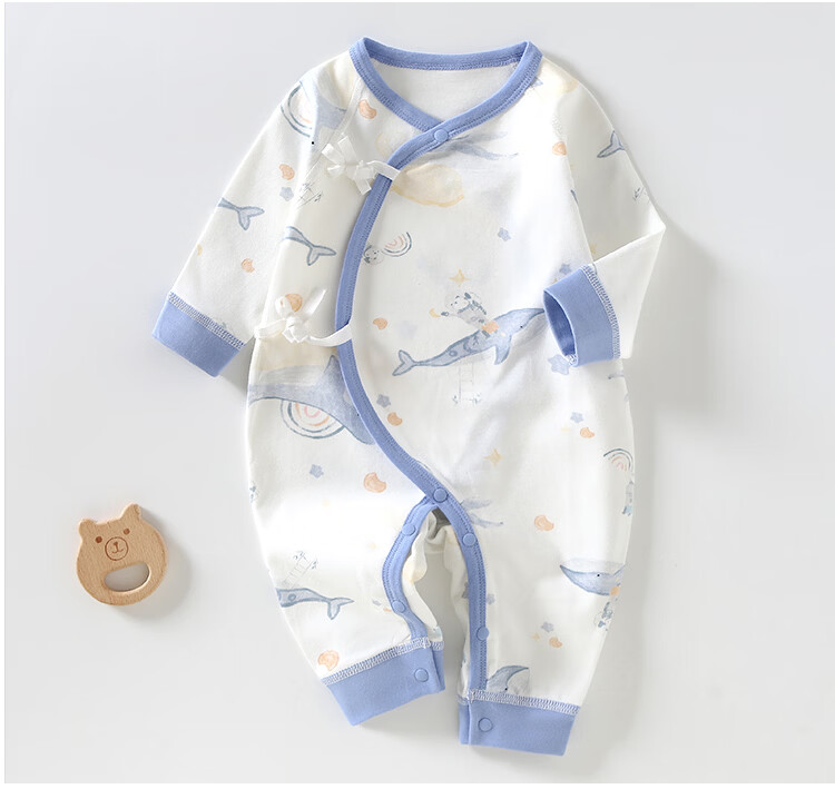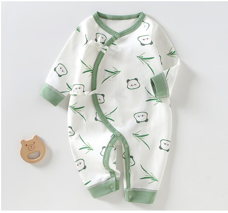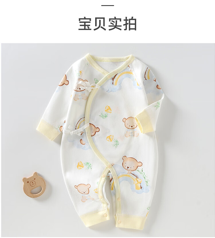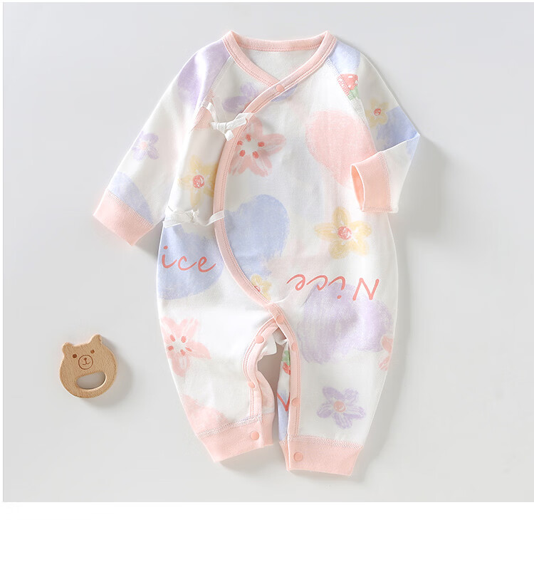 藤之木工房(T.moo)四季宝宝婴儿纯棉偏襟长袖连体衣哈衣爬服 花朵小熊 52cm