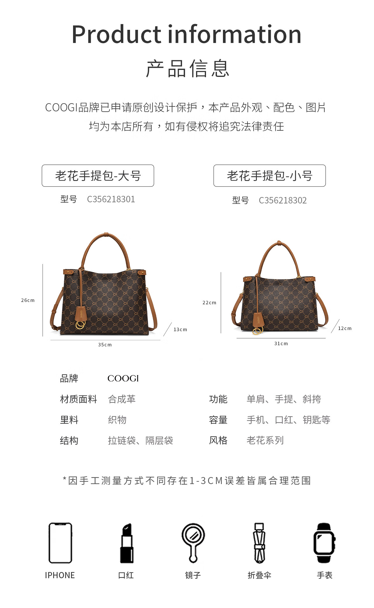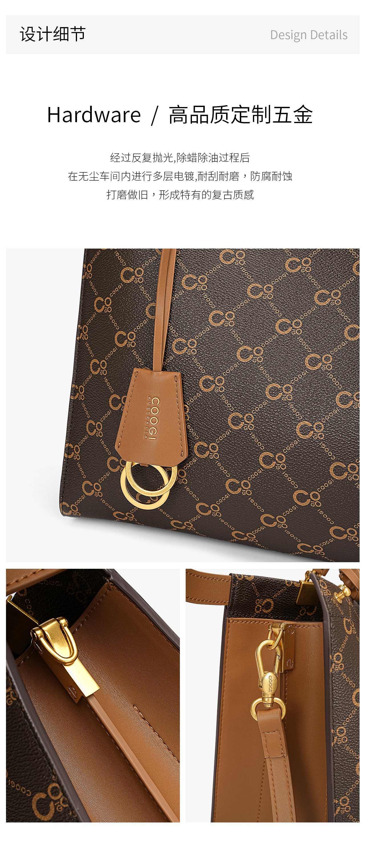 COOGI包包女包奢侈品2026新款单肩斜挎包托特包情人节礼物送女友老婆 米白 35*26*13cm