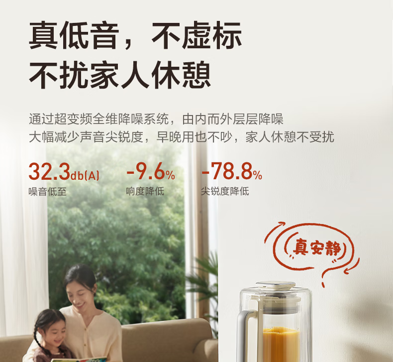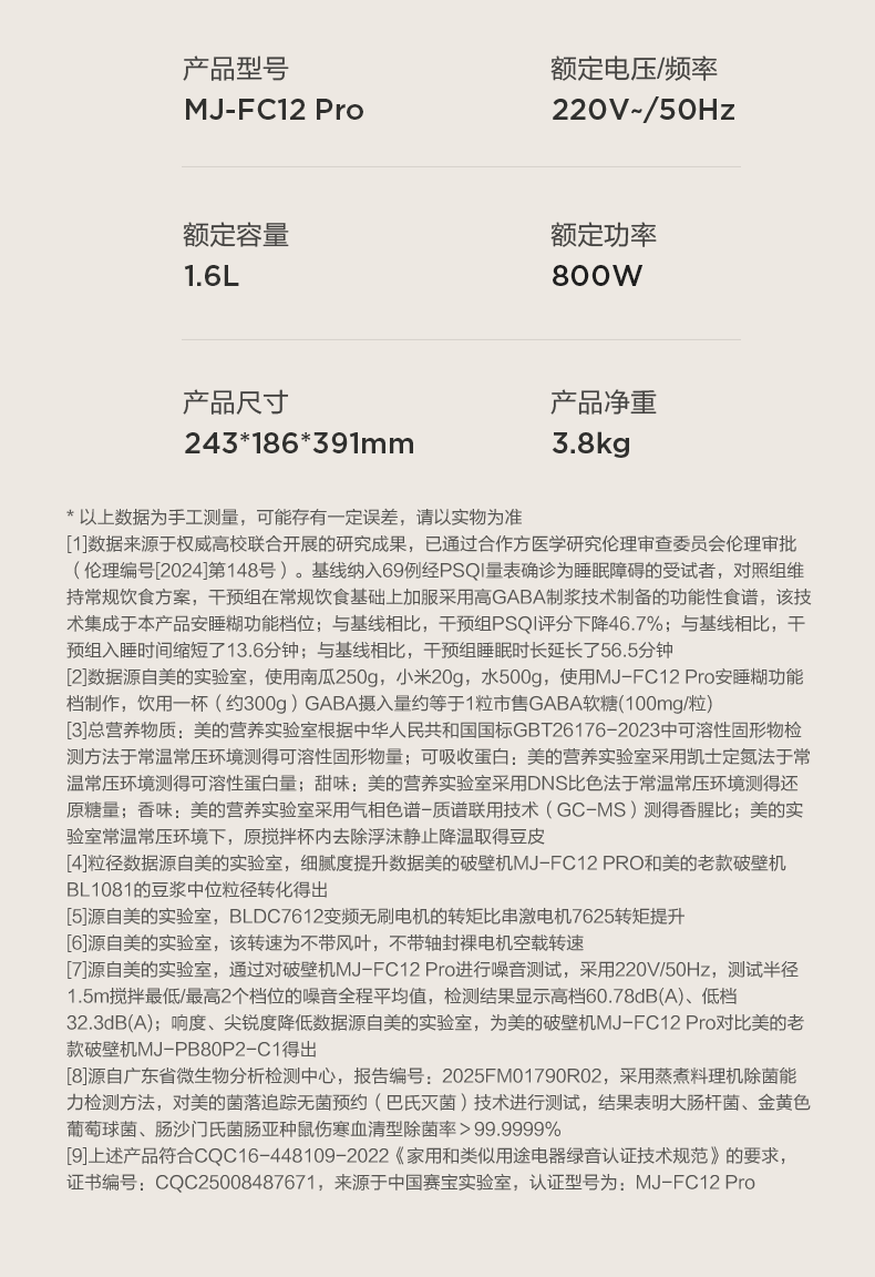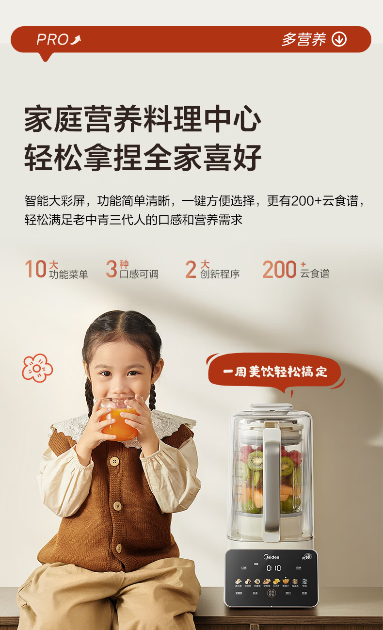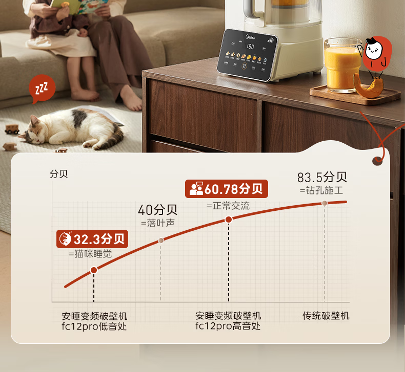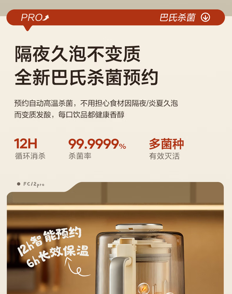 美的(Midea)新款安睡变频0涂层破壁机 1.6L家用轻音全自动多功能料理榨汁辅食豆浆机 3-5人用可拆补贴 FC12Pro