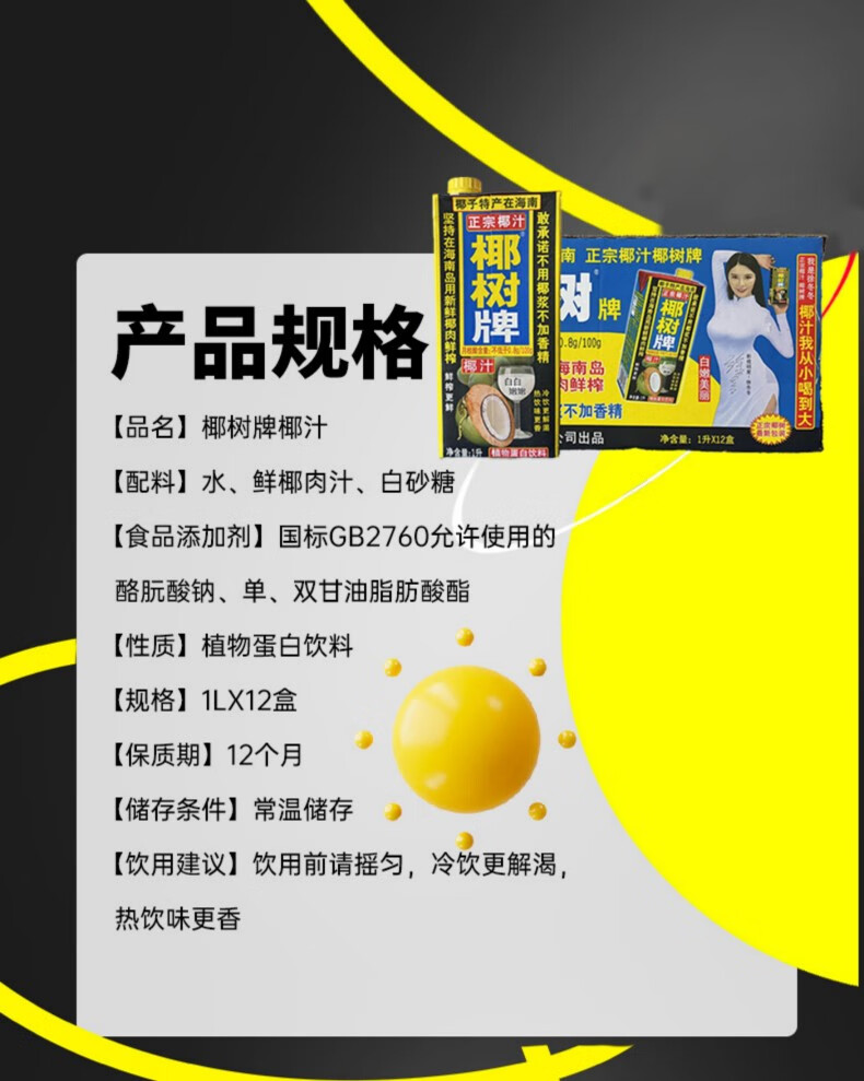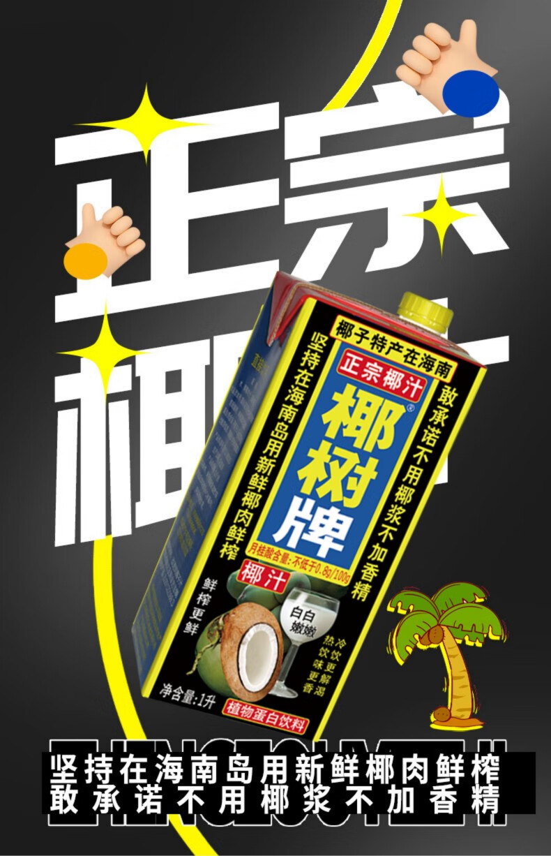 椰树 正宗椰汁 1L*12盒 合意盖 整箱装 植物蛋白饮料 年货送礼年货