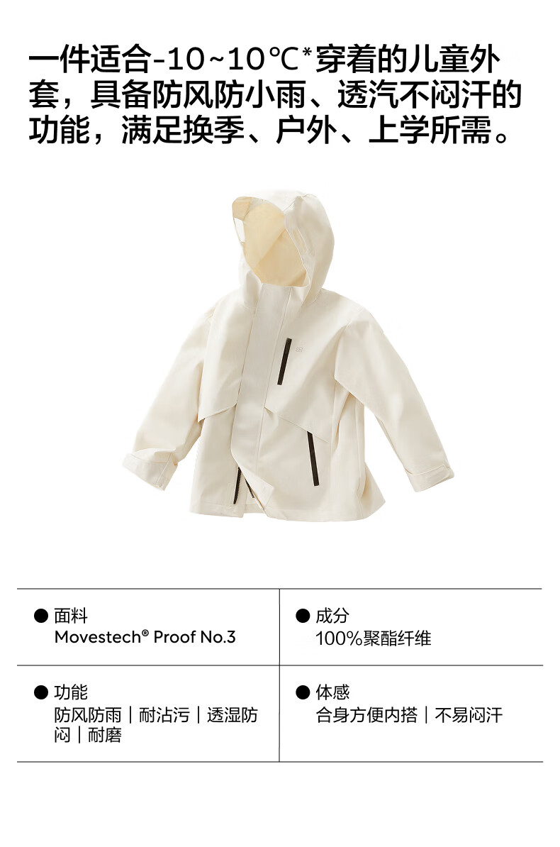 蕉内小氧气302Proof儿童单壳冲锋衣防水防风外套男女童户外服秋冬保暖
