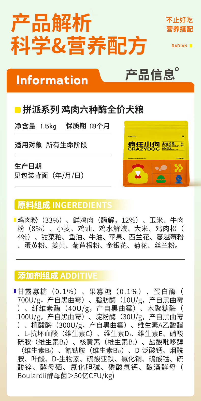 疯狂小狗拼派肉松狗粮泰迪比熊博美小型幼犬成犬通用粮1.5kg3斤
