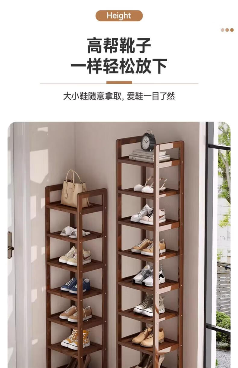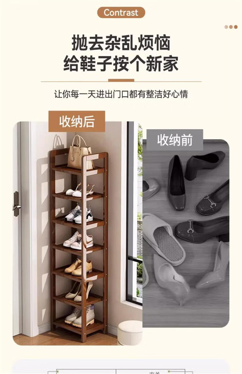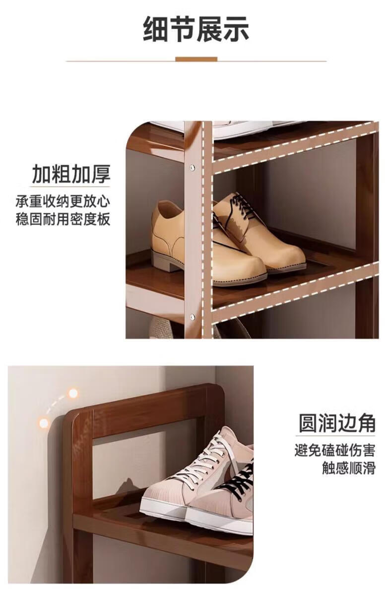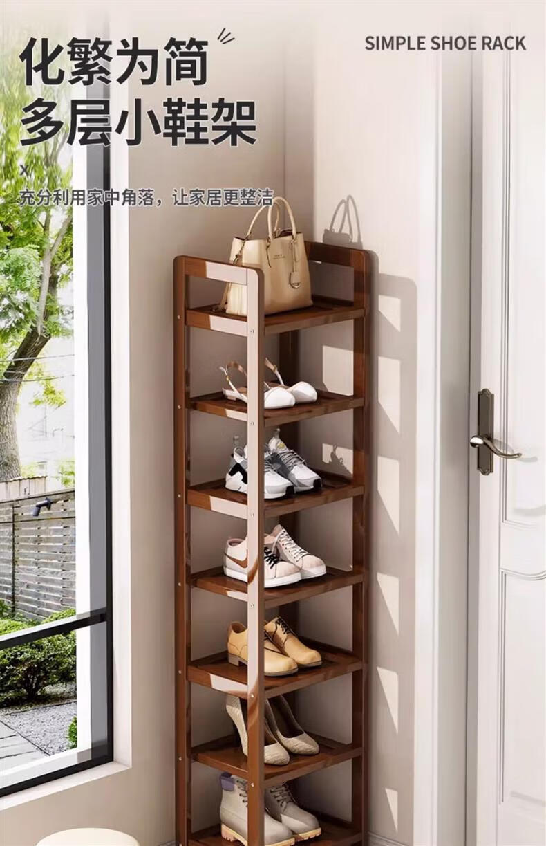 馨婺家鞋架小型窄小多层鞋柜门口家用进门室内组合简易室内宿舍收纳鞋架 茶色三层-长30cm【加厚加固】