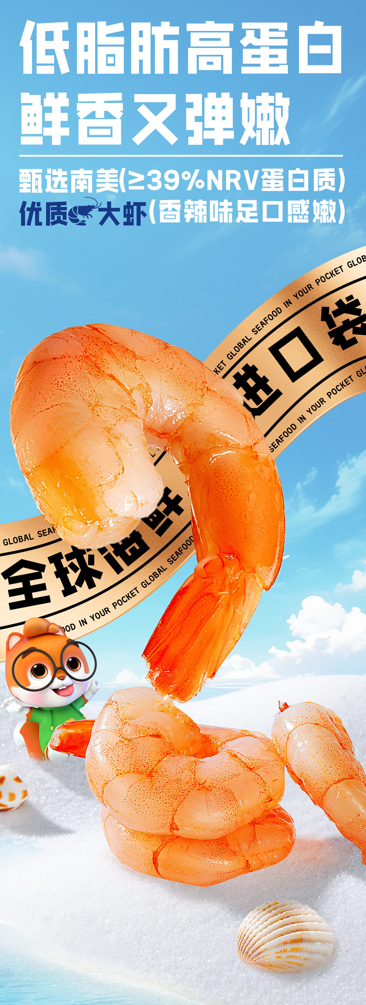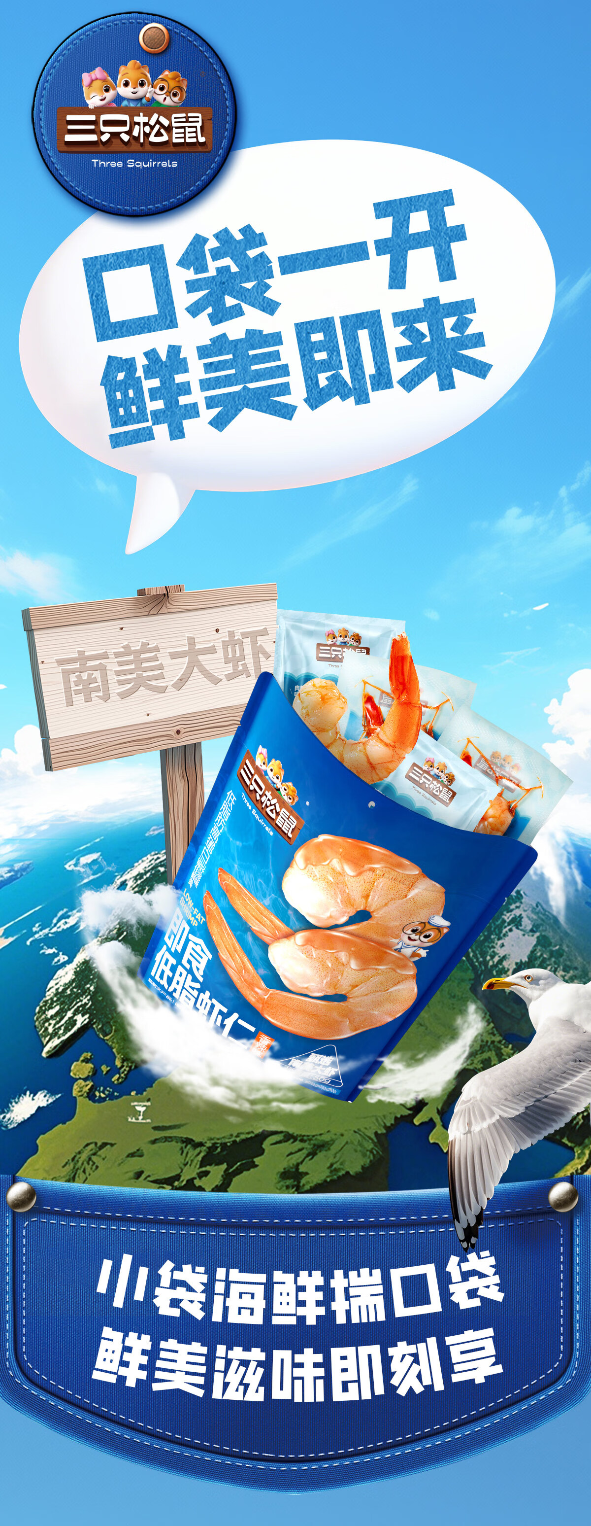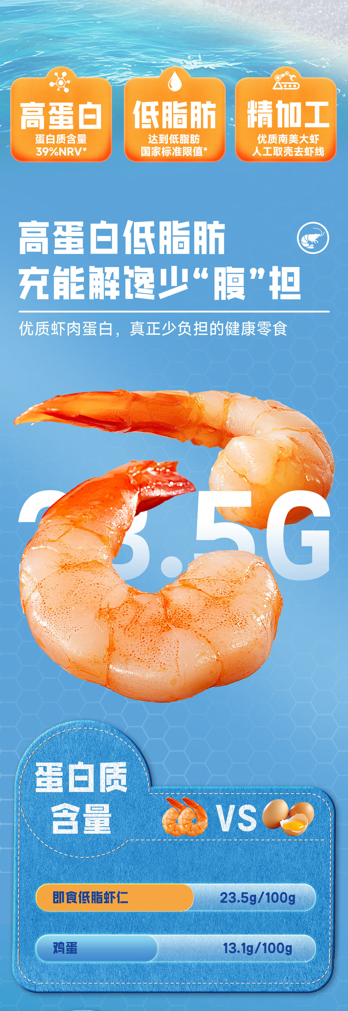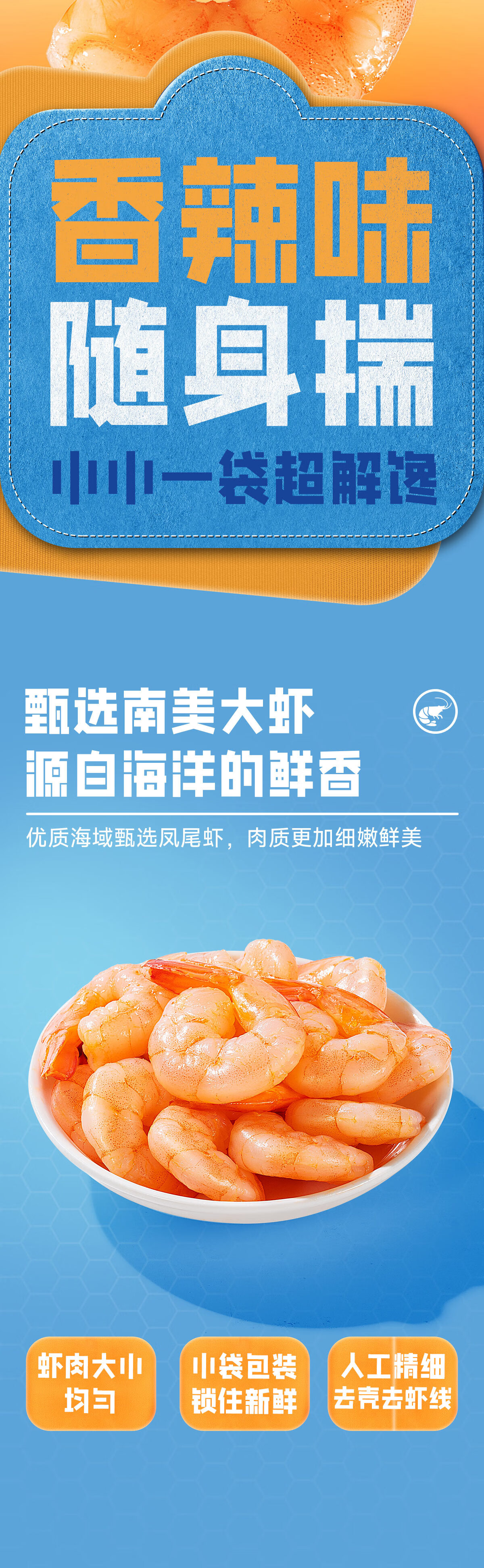 三只松鼠即食低脂虾仁50g 香辣味独立小袋减脂健身高蛋白海鲜零食