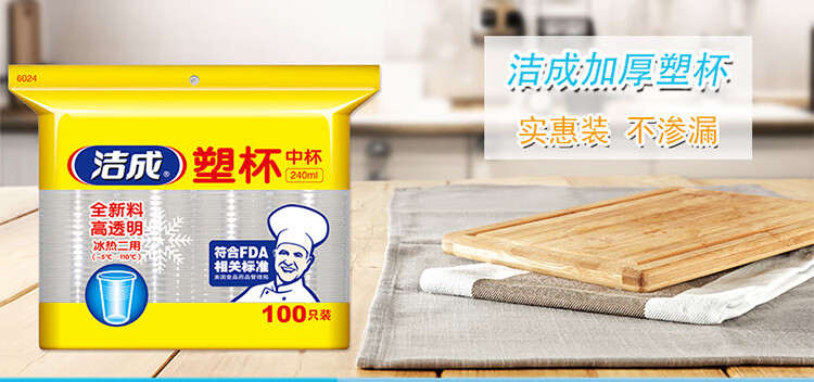 洁成 一次性杯子塑料杯加厚240ml中号塑杯100只装 加厚塑杯100只装