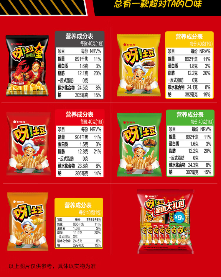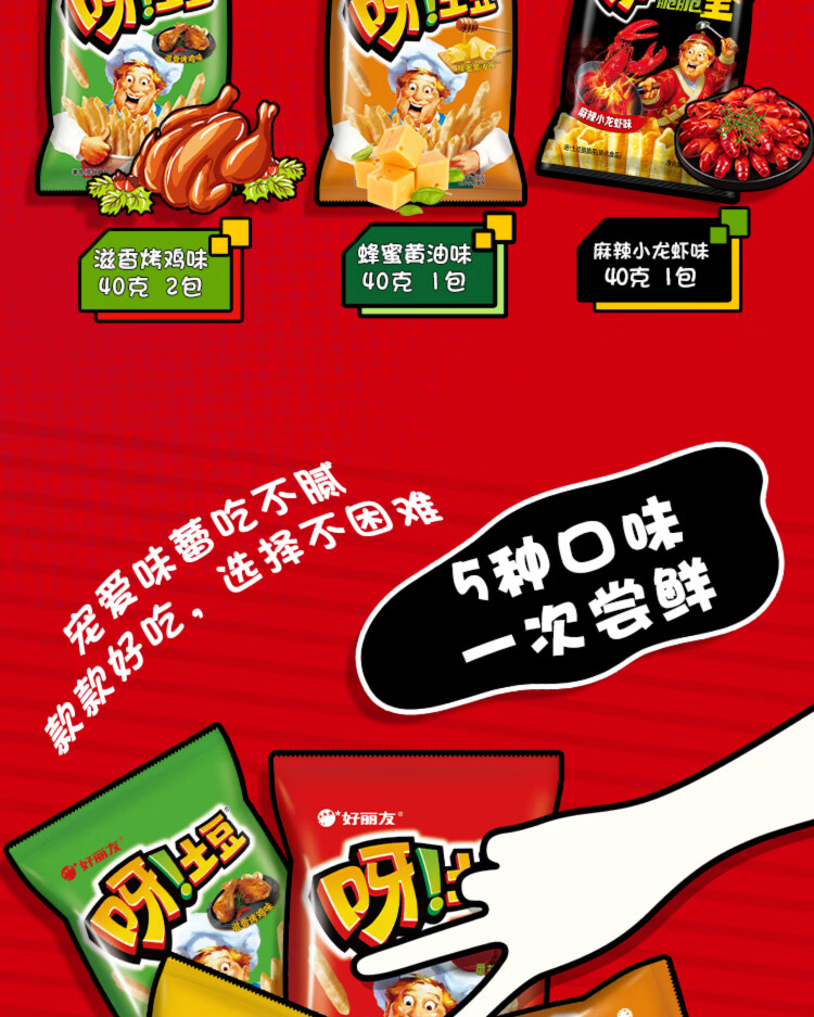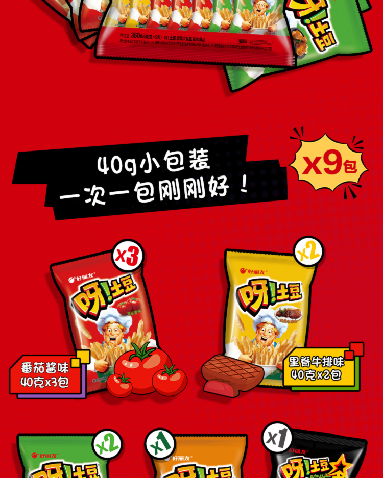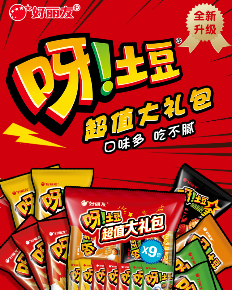 好丽友(ORION)呀土豆休闲零食大礼包360g(40g*9) 休闲零食小包装膨化薯条年货