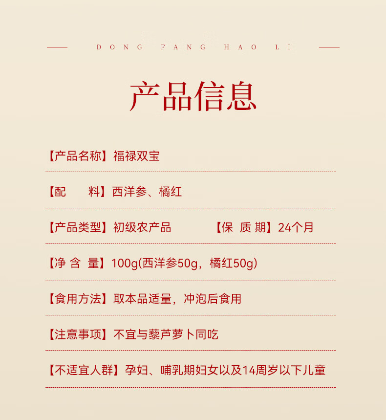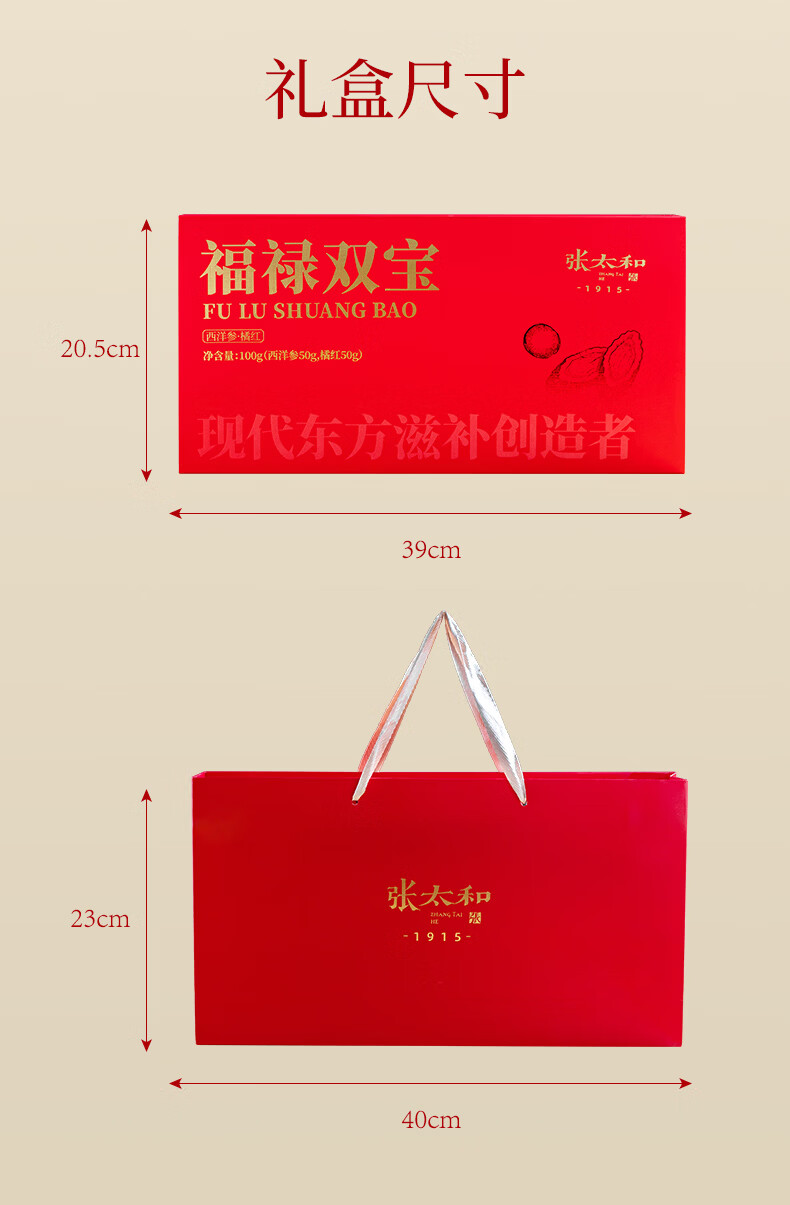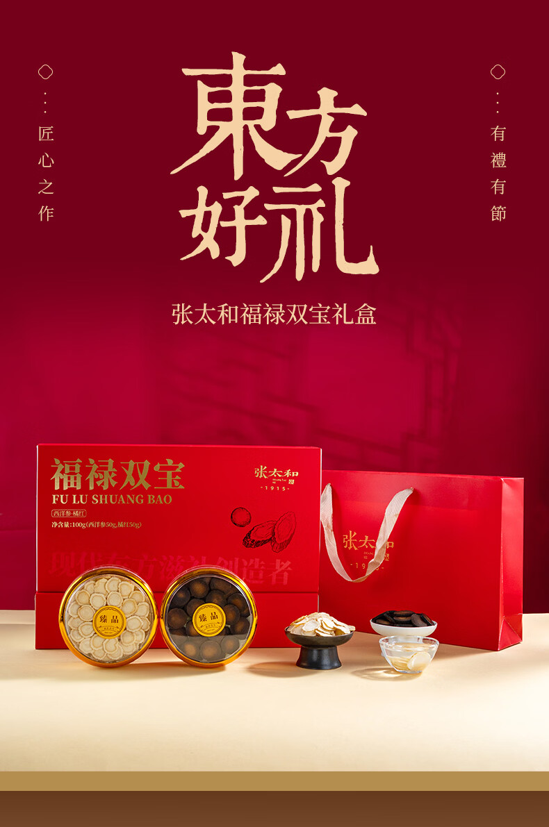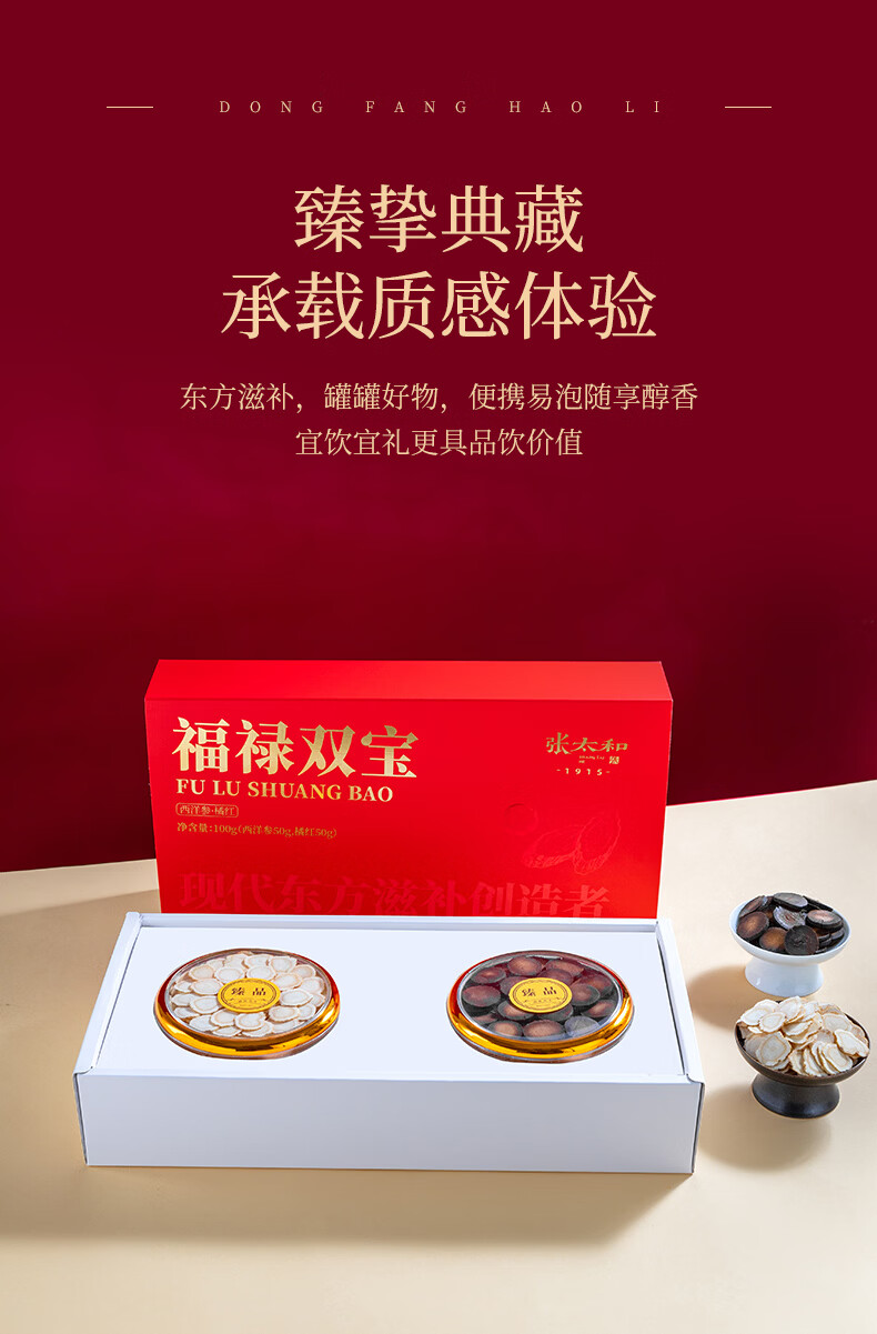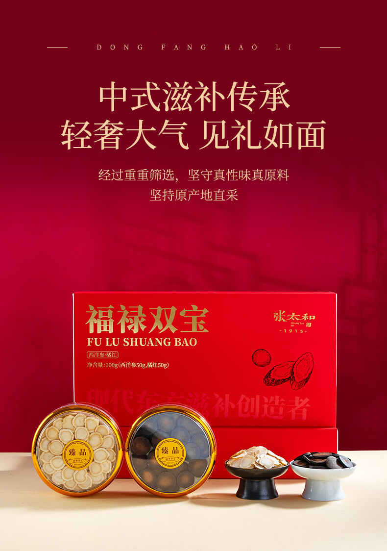 张太和福禄礼盒 团圆礼盒 西洋参片礼盒装西洋参橘红铁皮石斛红参片 福禄双宝(西洋参50g+橘红50g) 100g*1盒