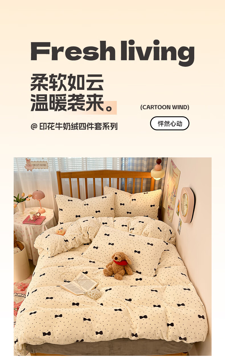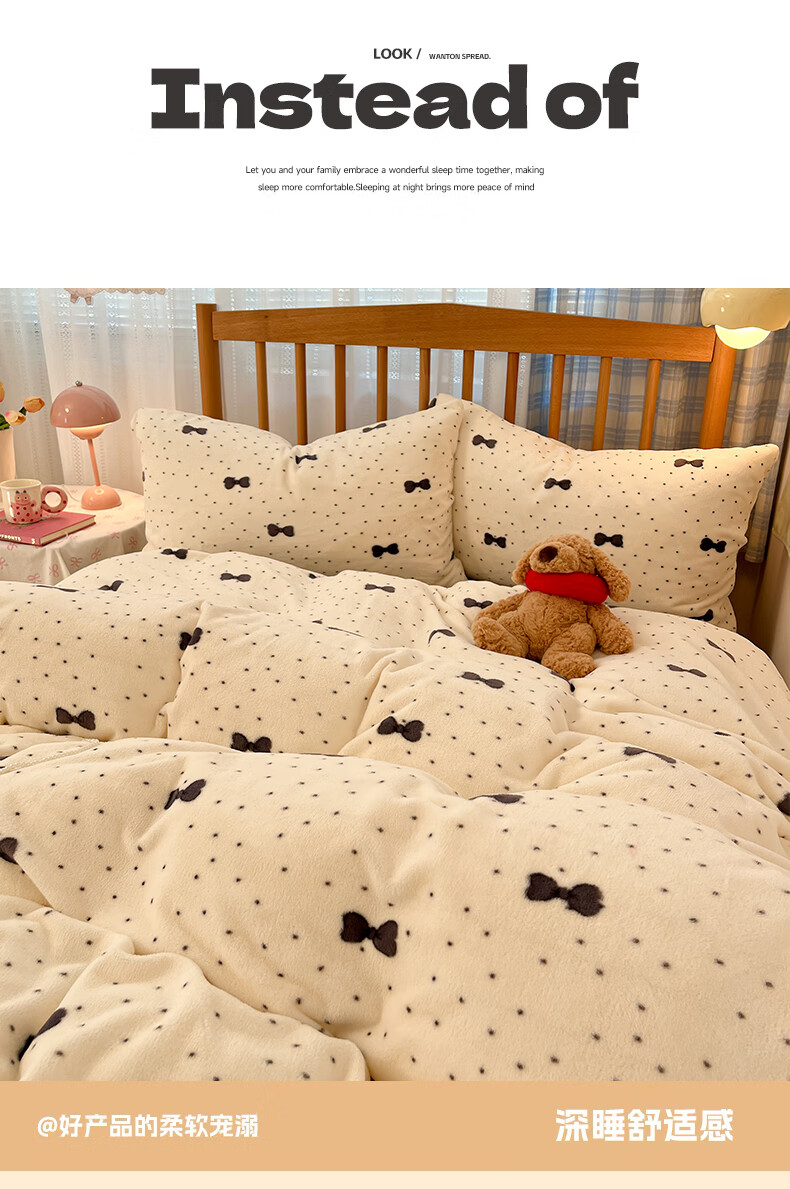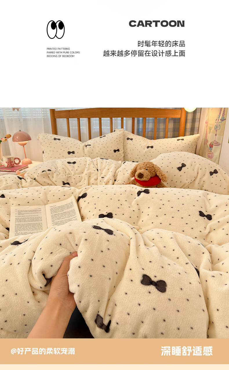 一默四件套秋冬季牛奶绒被套床单枕套家纺床上用品姜饼人牛奶绒四件套 姜饼人 床单款 (被套200*230cm) 四件套
