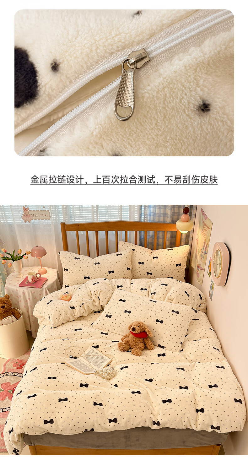 猫人(MiiOW)卡通牛奶绒床上四件套 冬季加绒加厚珊瑚绒床单被套床品三件套 波点叠影【一触即暖防静电设计】 0.9 床单款 三件套(被套150*200cm)