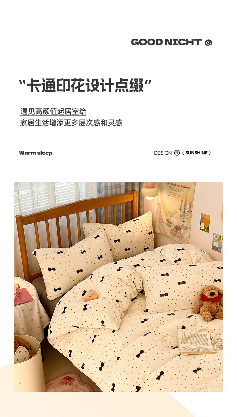 MIDO HOUSE铭都床上四件套100%纯棉全棉秋冬磨毛柔软亲肤床单被套罩床品套件 【买就送被子】喵星人 1.5m 床笠款 (被套200*230cm)