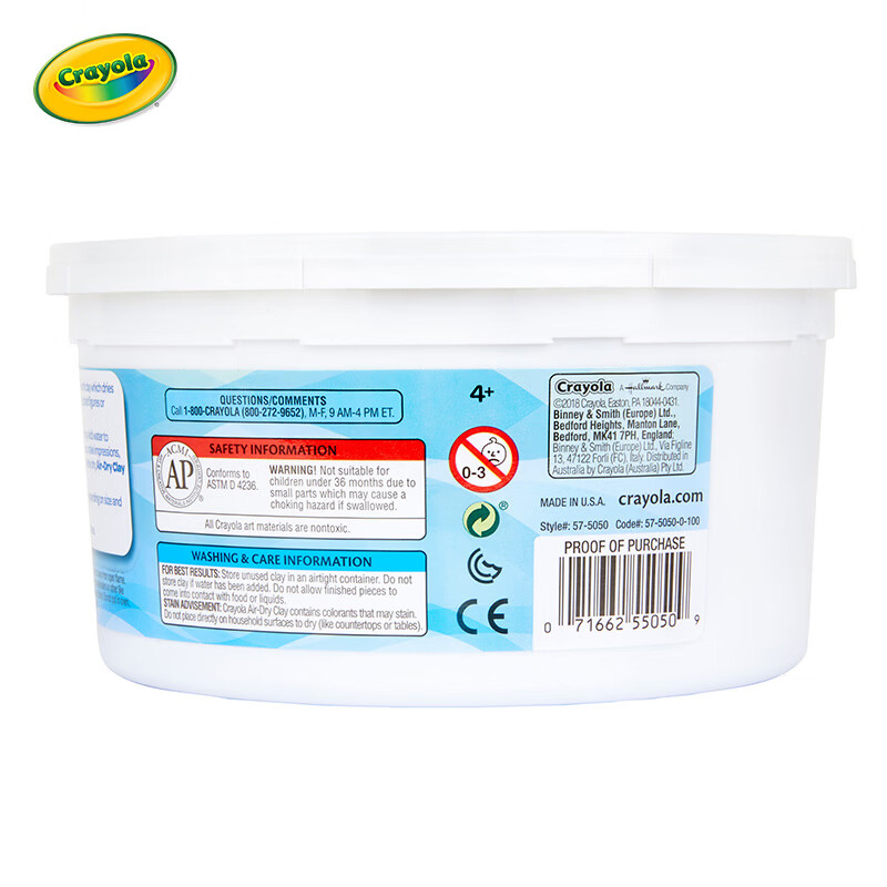 绘儿乐(Crayola)儿童安全无毒彩泥橡皮泥2.5磅可风干黏土桶装 白色