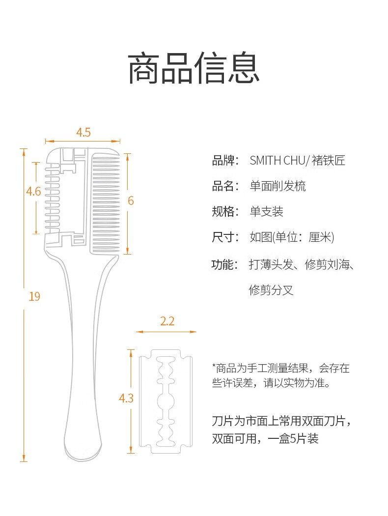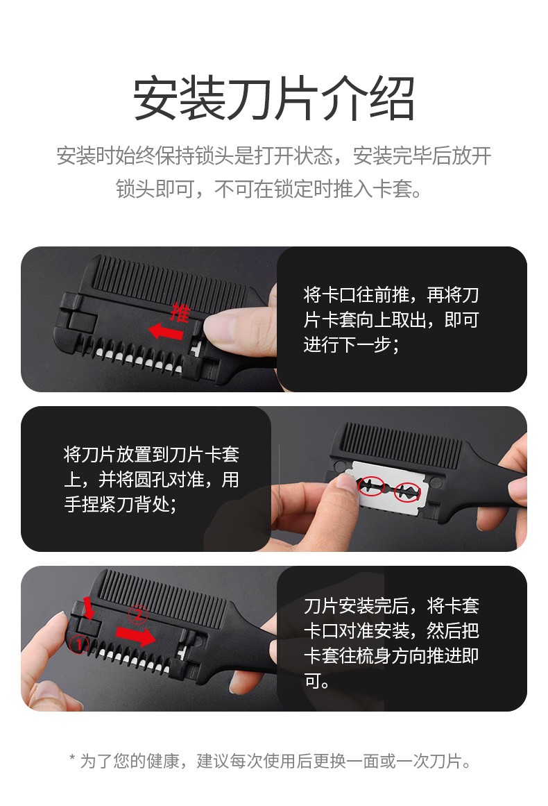 褚铁匠(smithchu)加厚削发梳碎发削发器老式自己剪刘海刀打薄梳子削发刀理发工具 削发器+10刀片