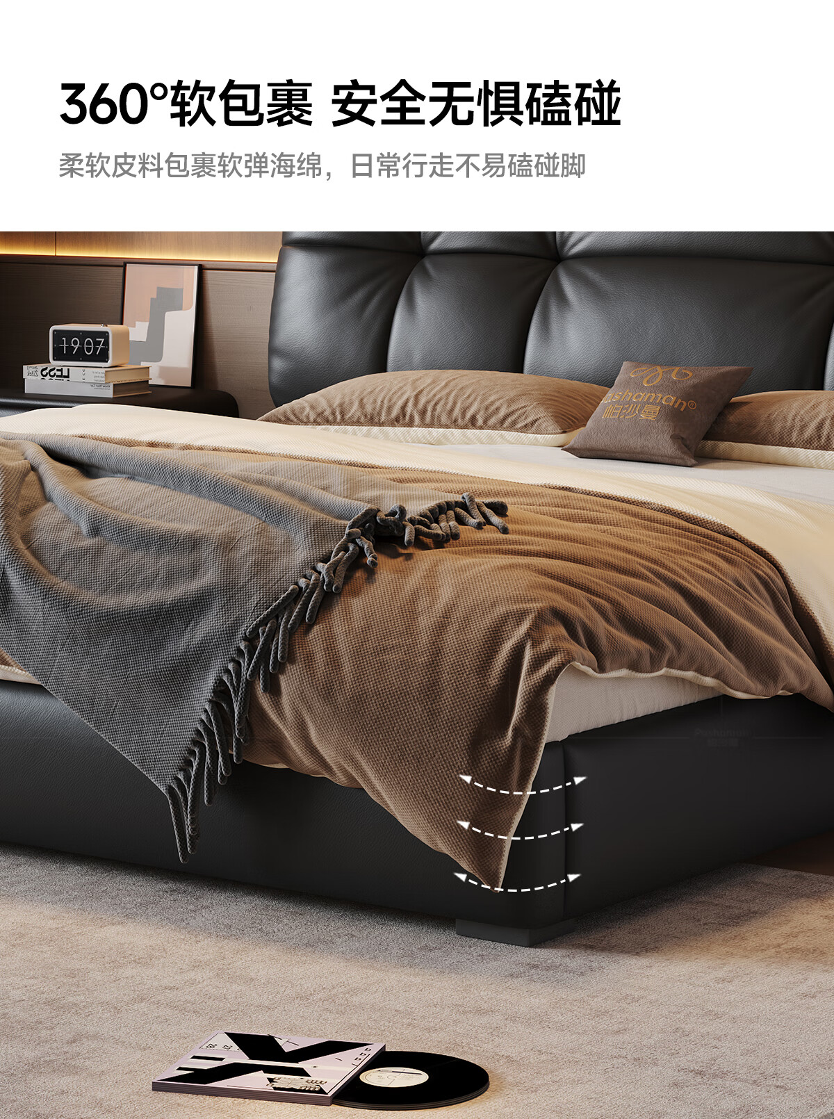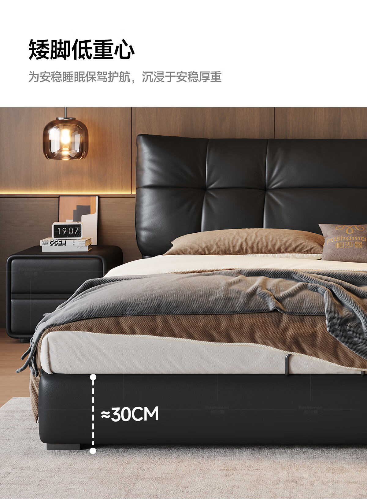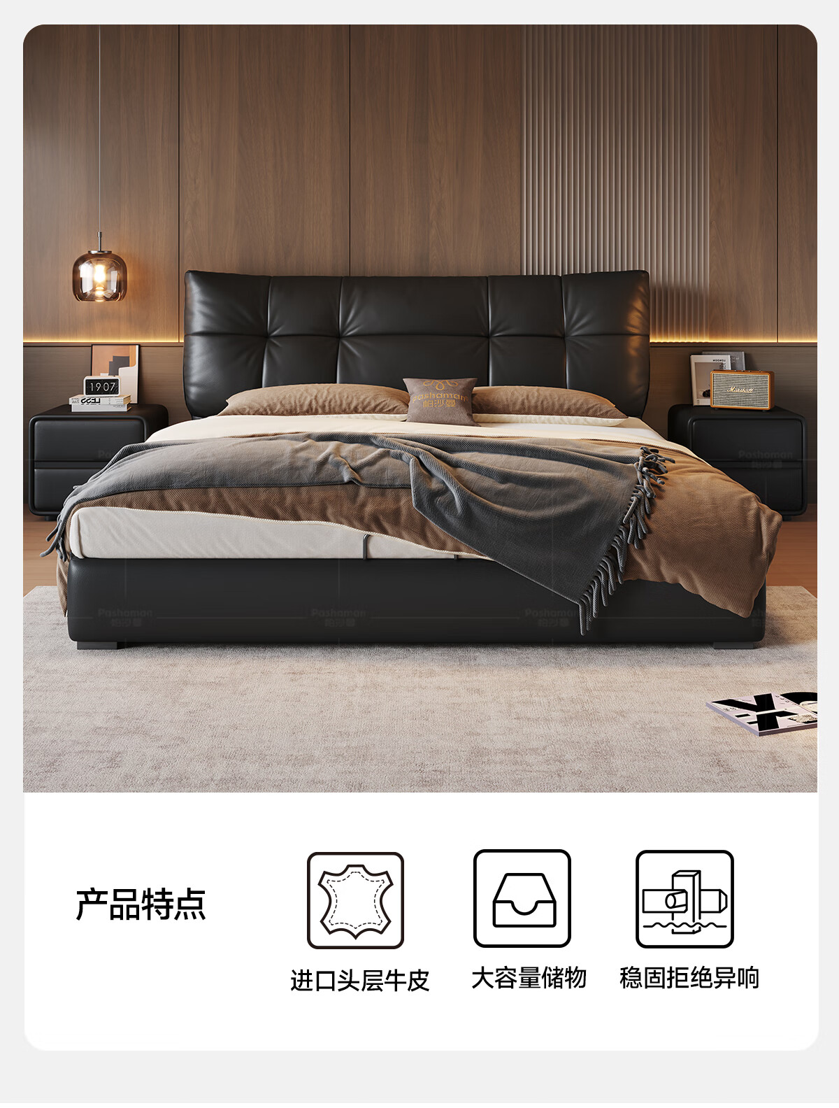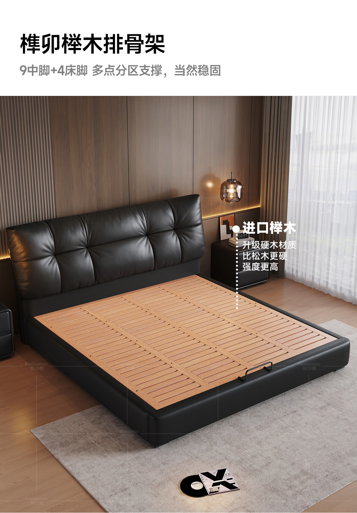 帕沙曼国货补贴真皮床主卧1米8大黑熊床双人轻奢落地软包储物床8424CP-R 【15CM钢木排骨架】单床 框架结构1500mm*2000mm