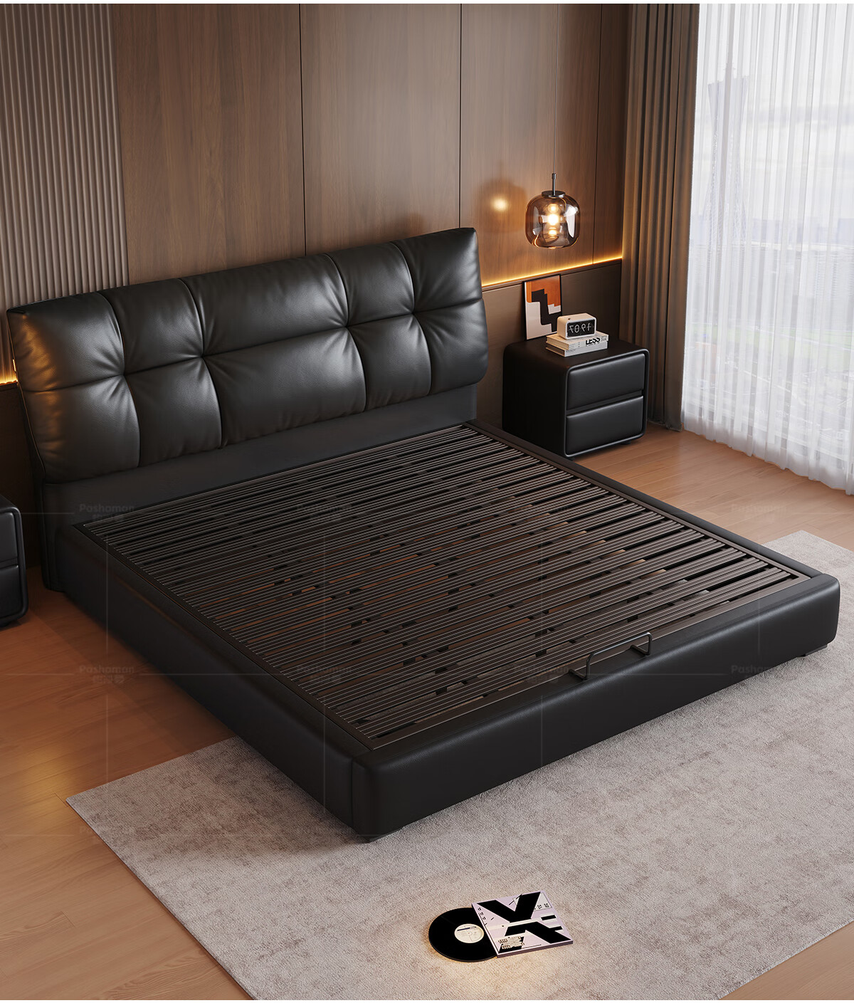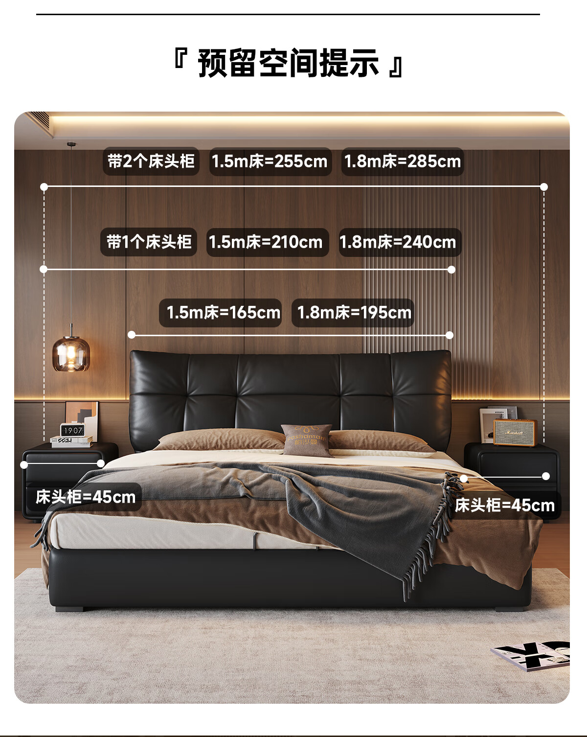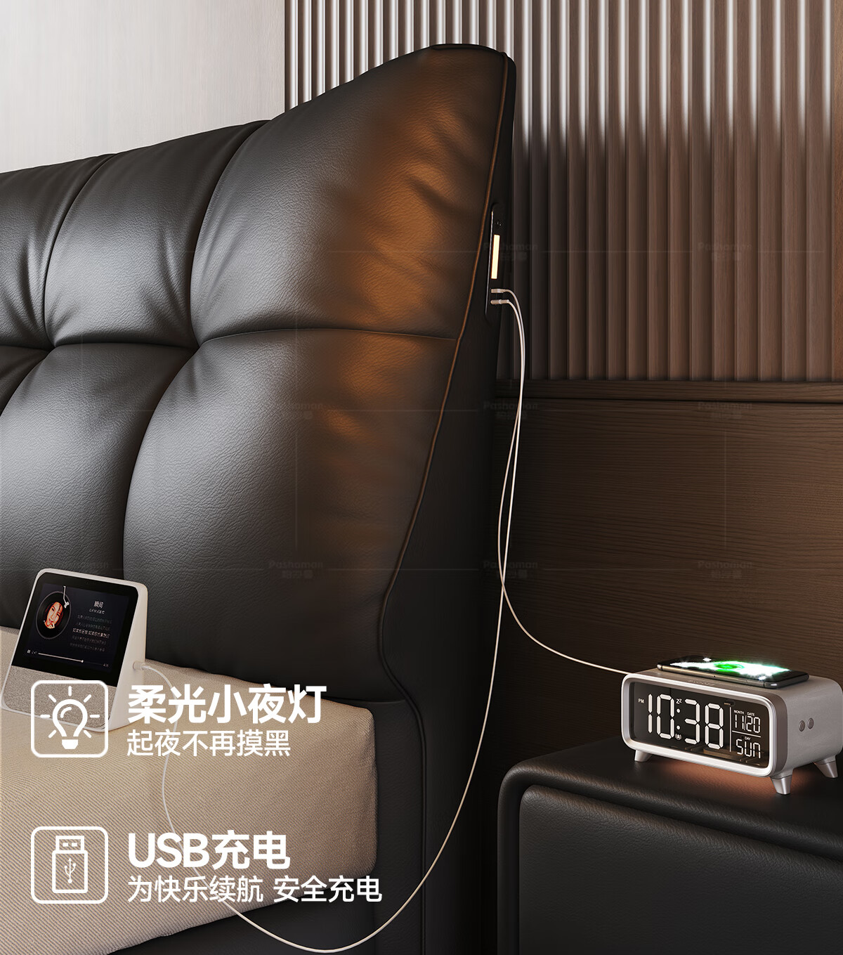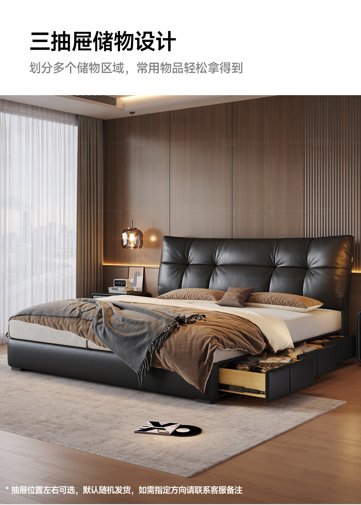 帕沙曼国货补贴真皮床主卧1米8大黑熊床双人轻奢落地软包储物床8424CP-R 【15CM钢木排骨架】单床 框架结构1500mm*2000mm