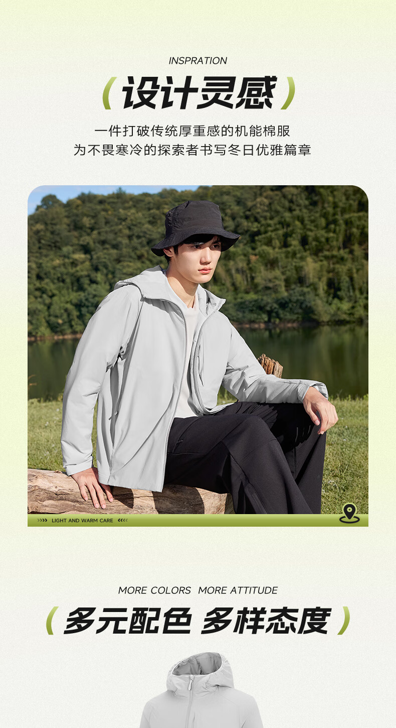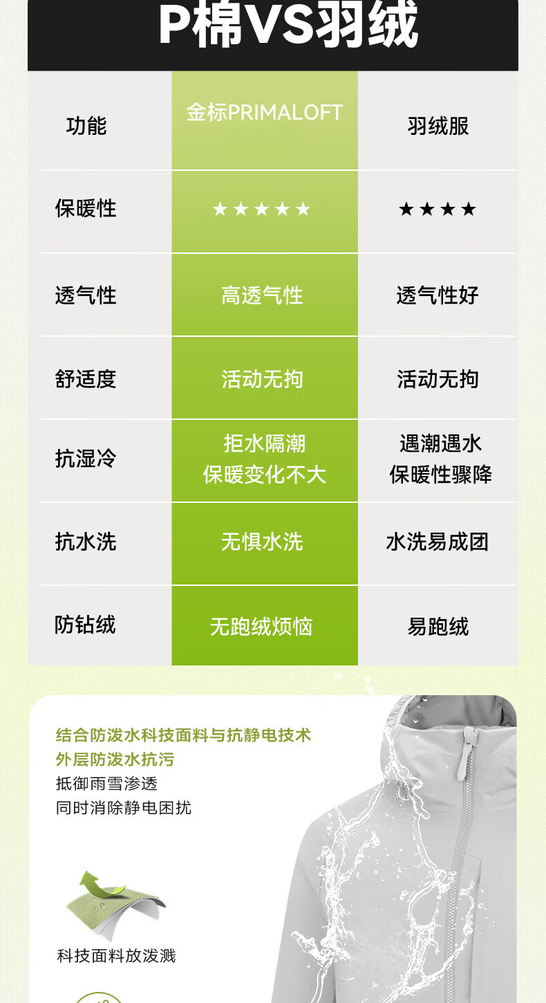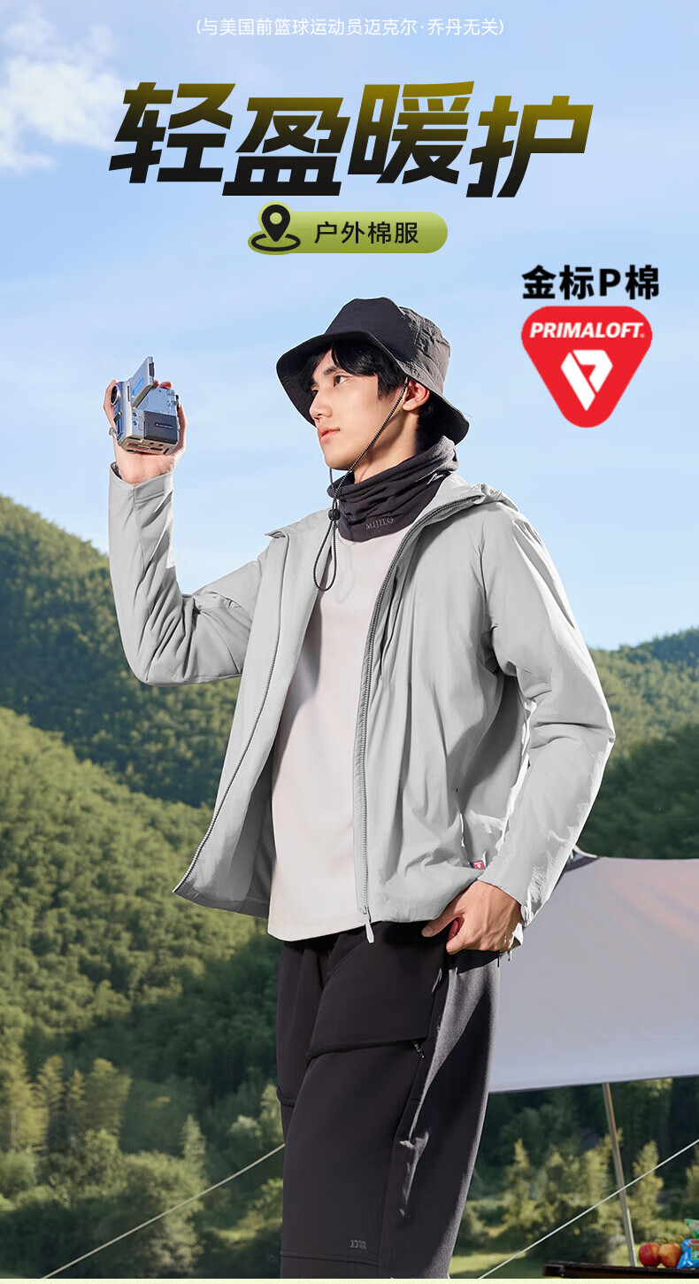 乔丹山神金标P棉服男外套风衣冬季保暖防泼水连帽运动夹克Primaloft 罗勒绿 XL