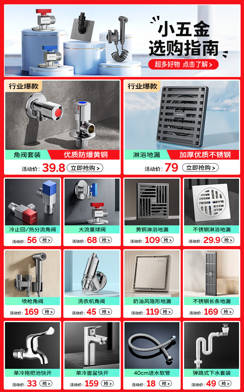 九牧(JOMOO)角阀黄铜加厚八字阀三角阀冷热水两用角阀套装马桶角阀 【9只】5冷4热角阀套装