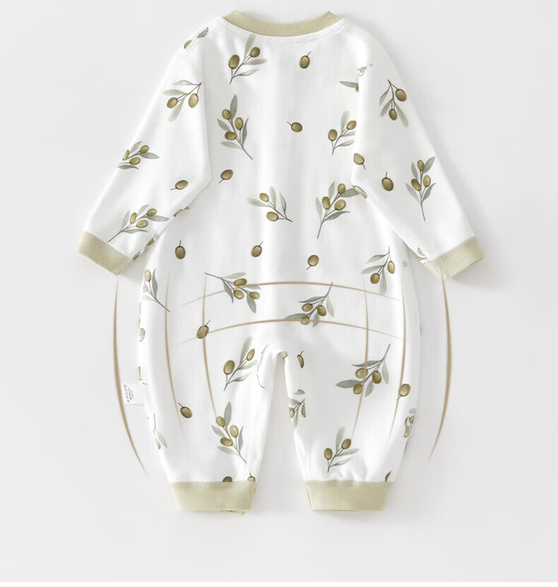 贝肽斯婴儿连体衣春季新生儿衣服宝宝衣服纯棉抗菌长袖哈衣爬爬服睡衣 翡翠橄榄 66cm