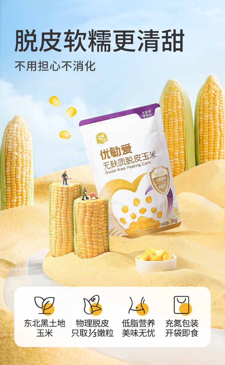 伊威(Eastwes)无麸质脱皮玉米粒易消化开袋即食早餐小包装婴幼儿辅食 【无麸质】脱皮玉米粒50g*10袋