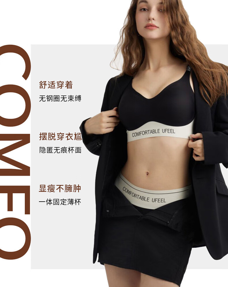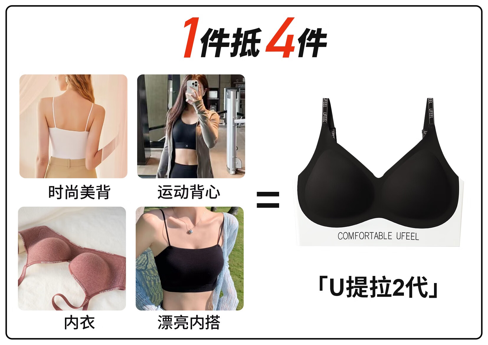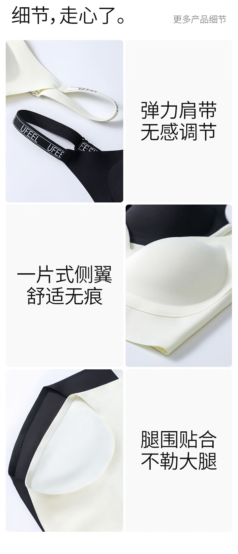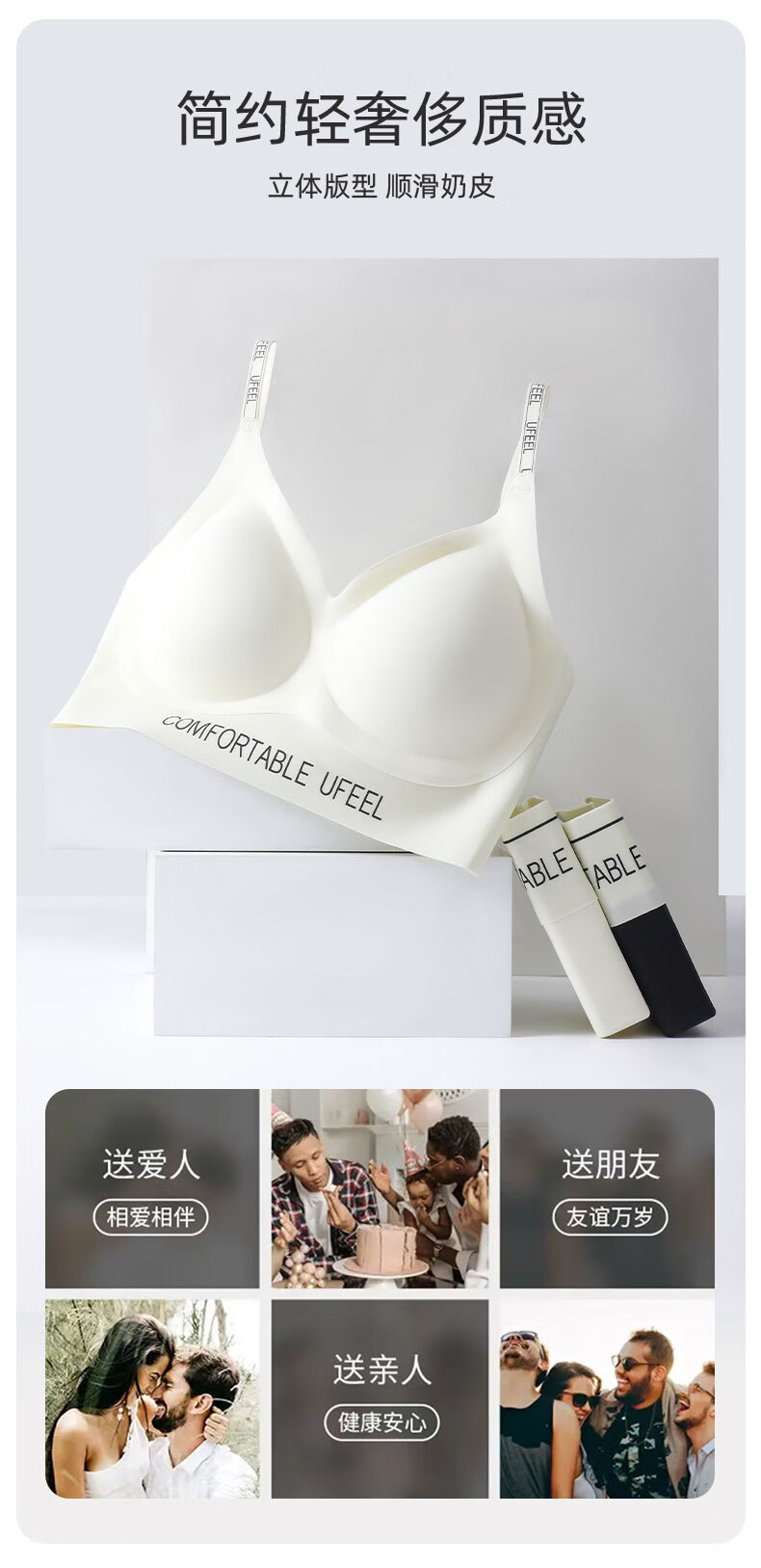 UFEEL清仓 痕舒适透气摩登系文胸女无钢圈文胸美背无痕显瘦内衣8668 黑白色颜色随机 单件 L 101-115斤
