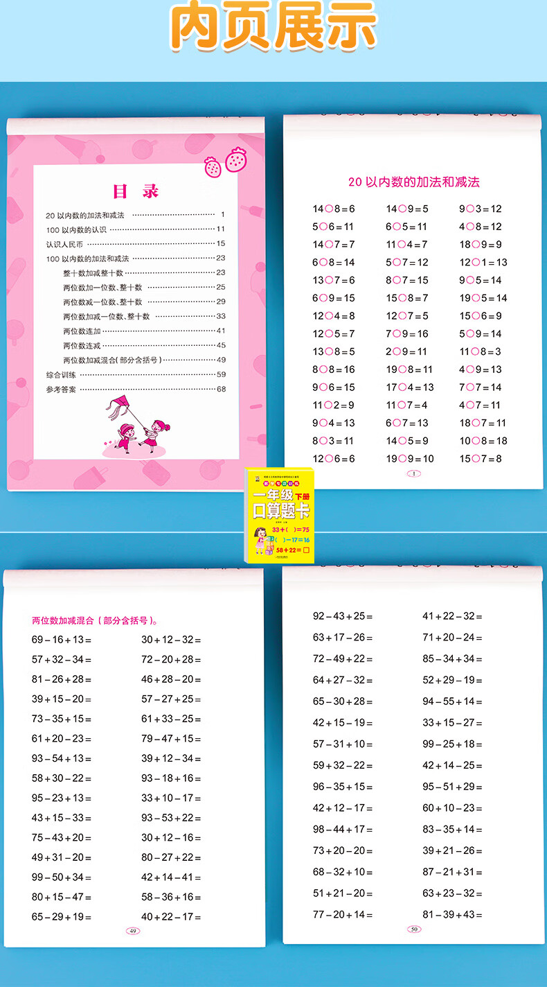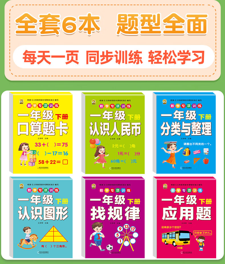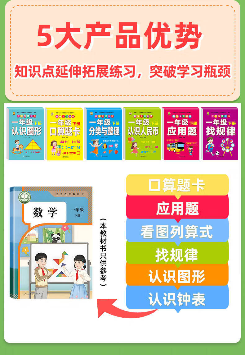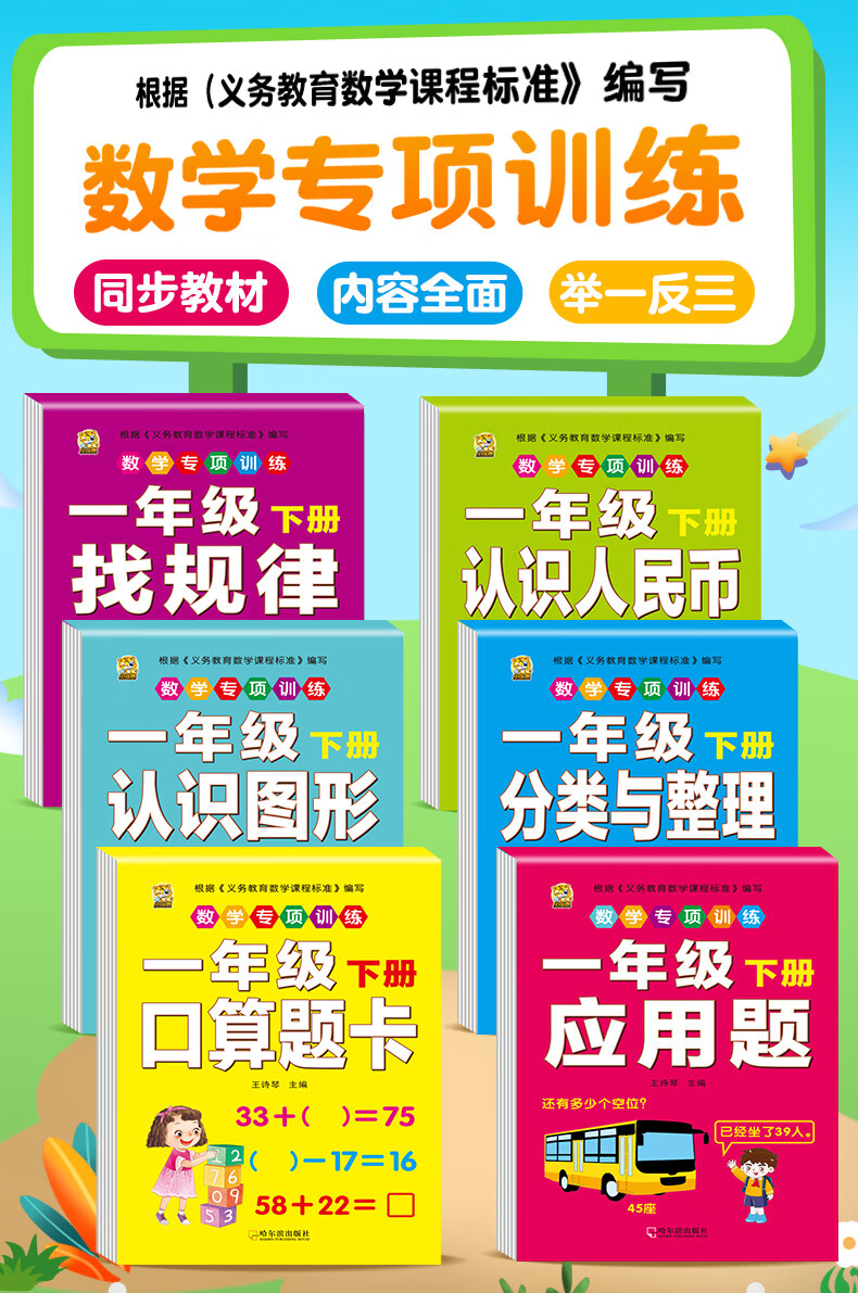 口算题卡一年级下册数学口算天天练专项训练应用题小学认识人民币七巧板找规律同步训练全套练习册人教版认识钱币图形分类与整理 【全套6本】数学专项训练 一年级下册