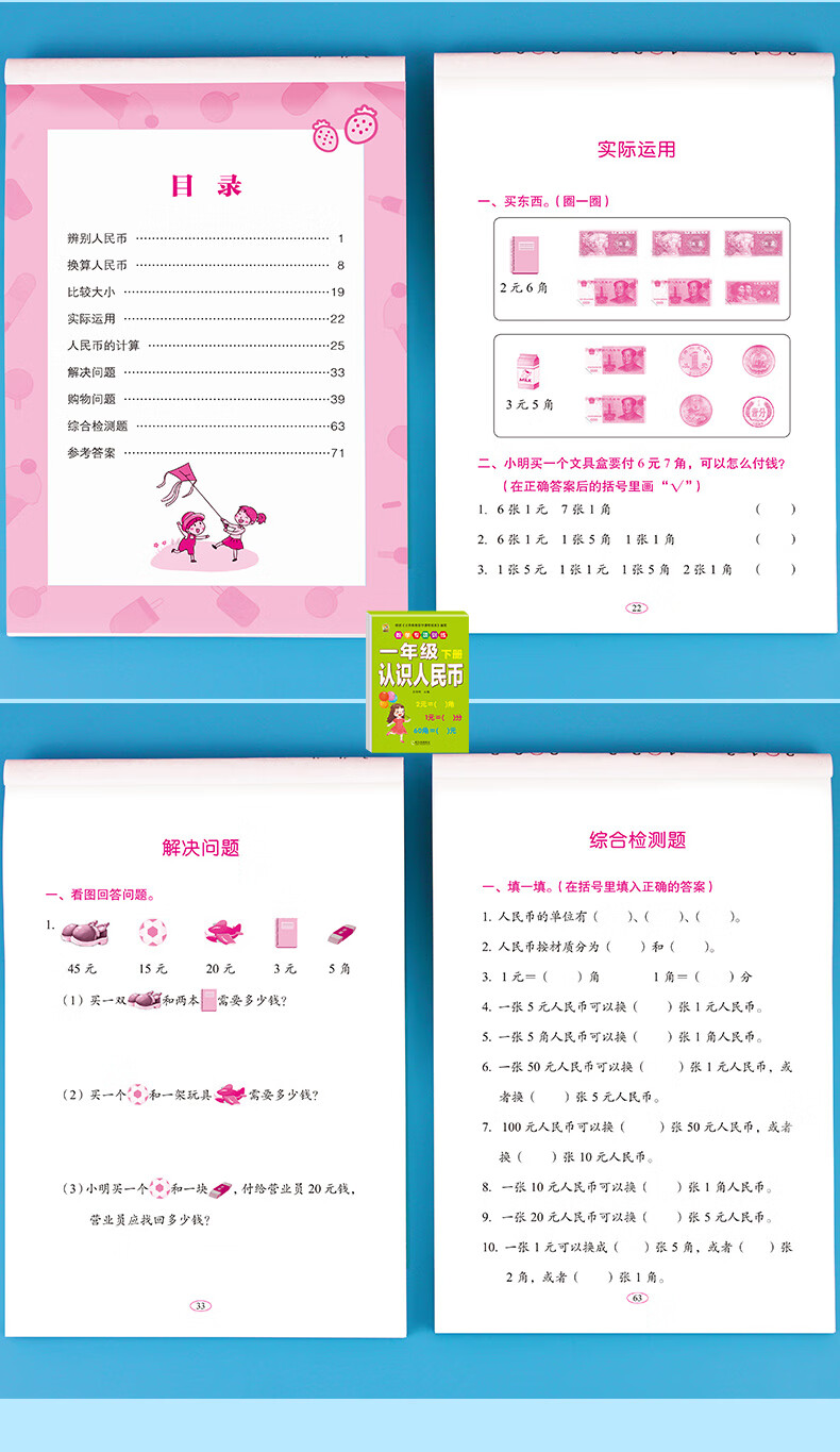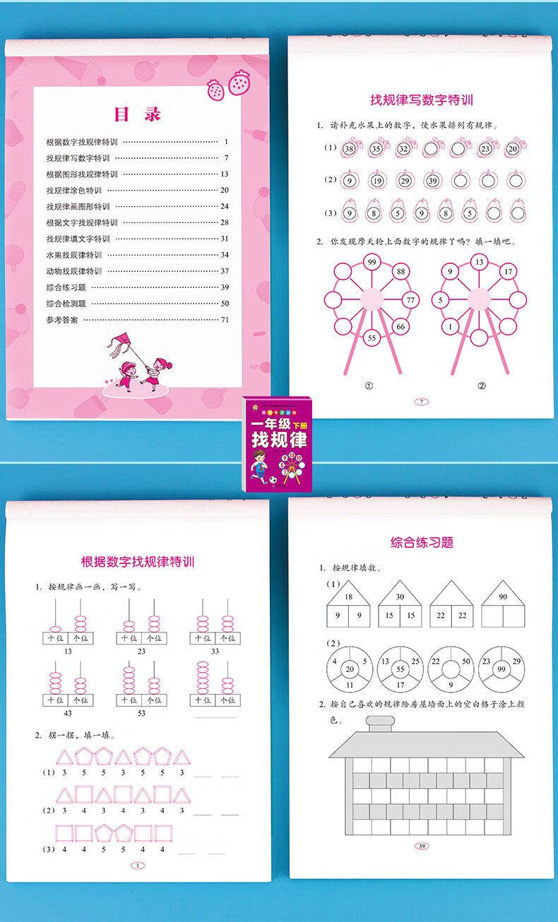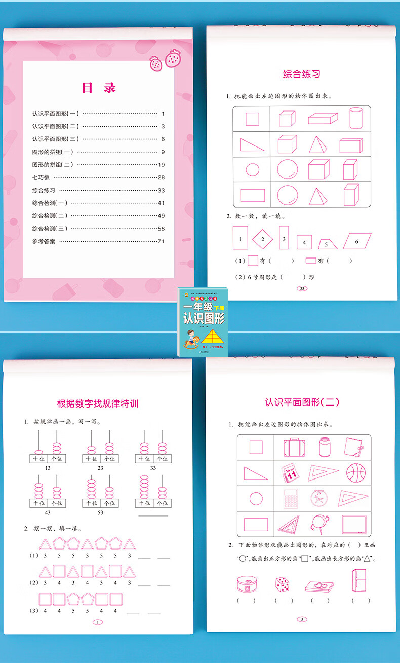 口算题卡一年级下册数学口算天天练专项训练应用题小学认识人民币七巧板找规律同步训练全套练习册人教版认识钱币图形分类与整理 【全套6本】数学专项训练 一年级下册