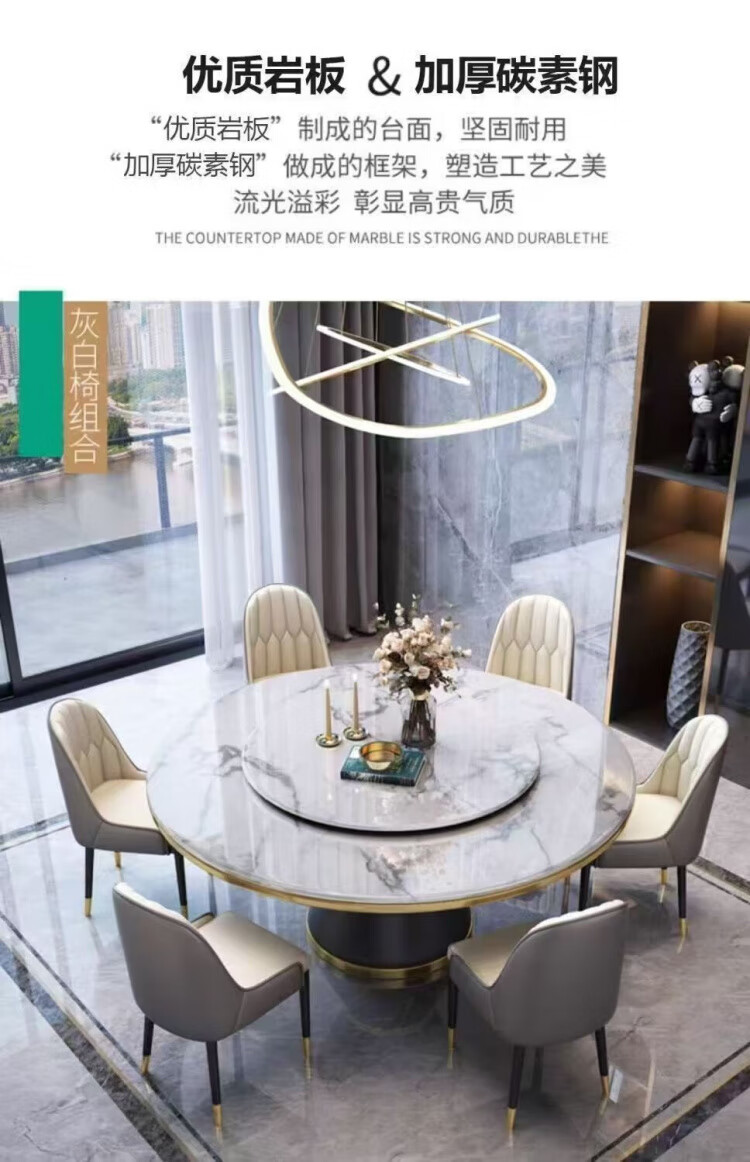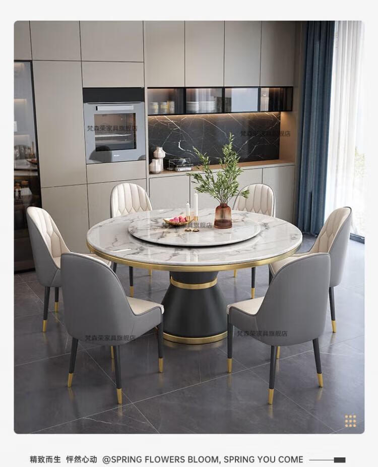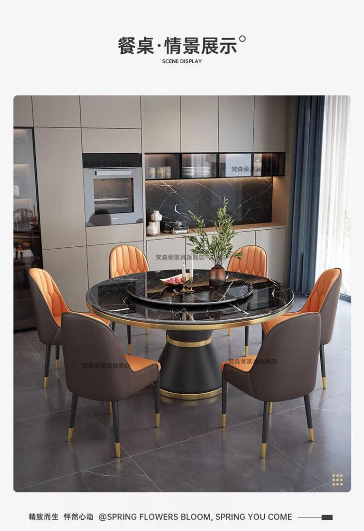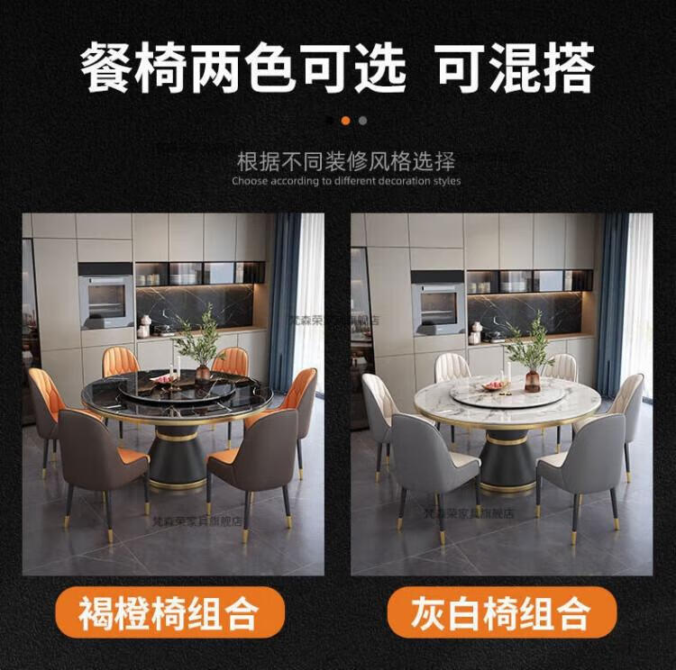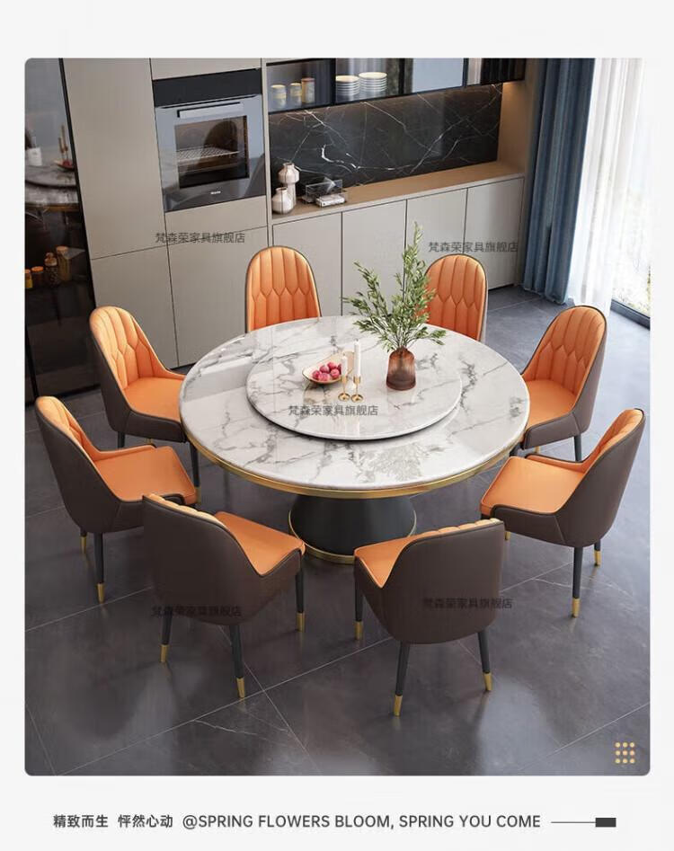 梵森荣2026新款轻奢岩板餐桌椅组合家用酒店大圆桌小户型带转盘吃饭桌子 12mm加厚岩板 1.5m 单圆桌+8椅【送转盘】