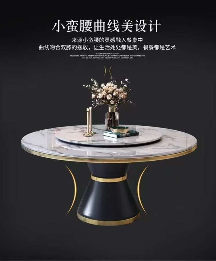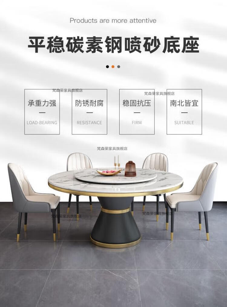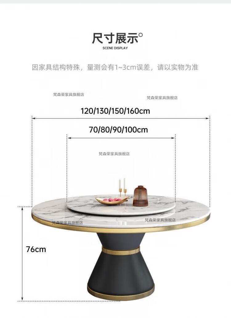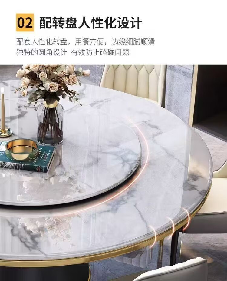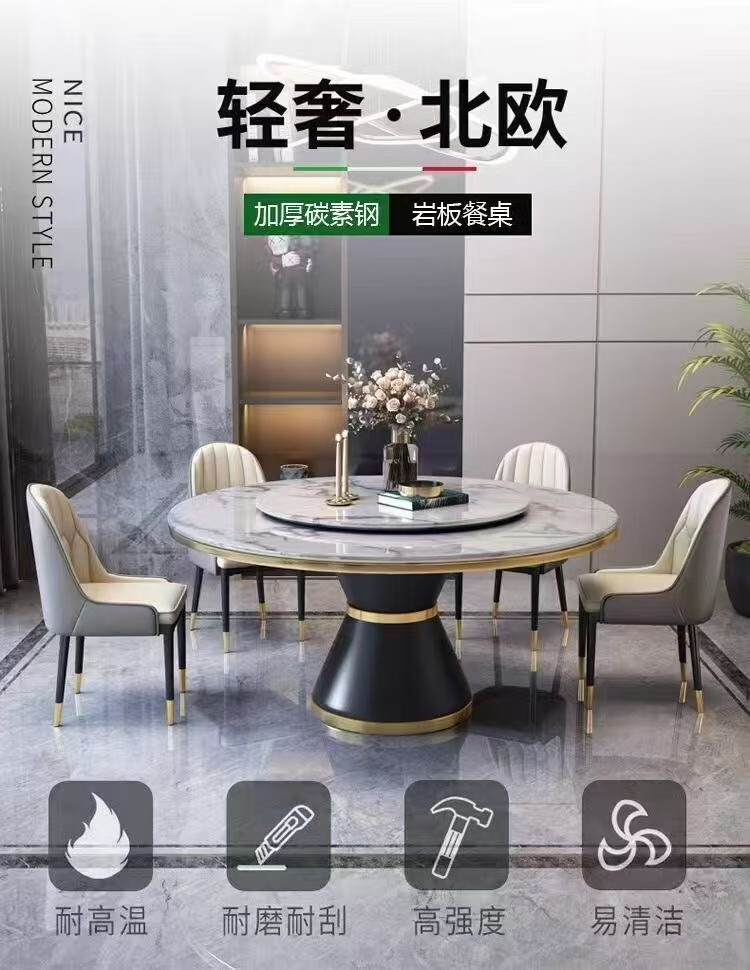 梵森荣2026新款轻奢岩板餐桌椅组合家用酒店大圆桌小户型带转盘吃饭桌子 12mm加厚岩板 1.5m 单圆桌+8椅【送转盘】