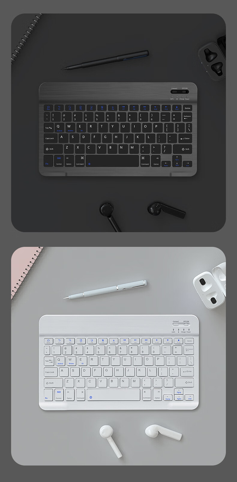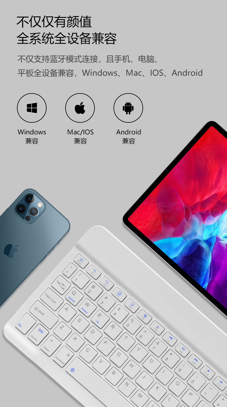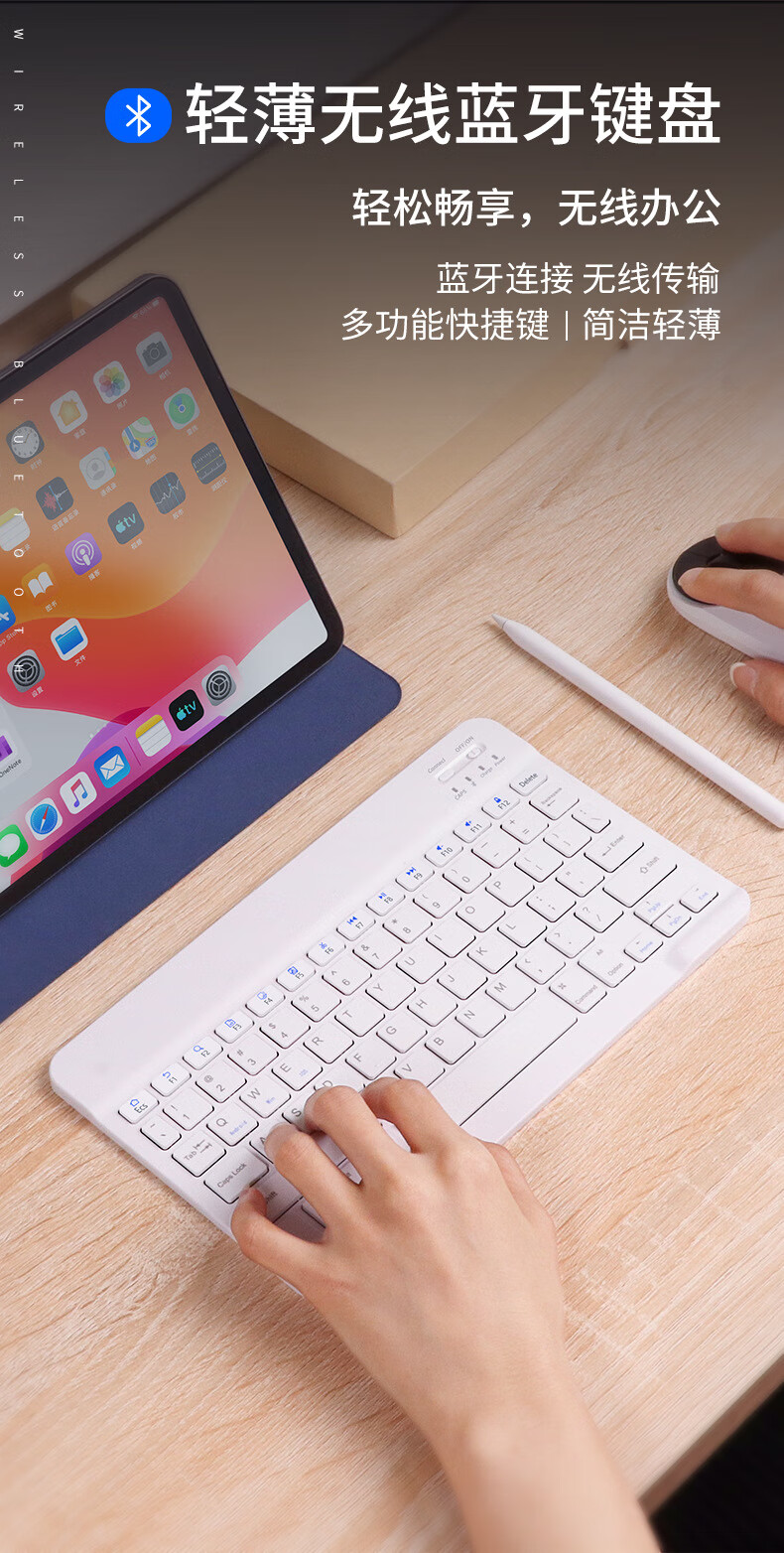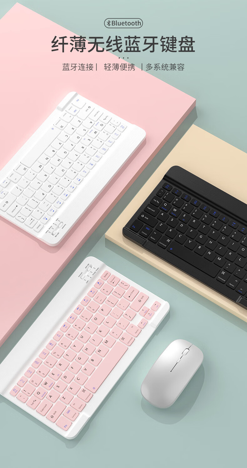 【精选】十寸蓝牙键盘iPad适用平板电脑手机触控充电个性彩印键鼠 7002单模鼠标(装干电池 白色