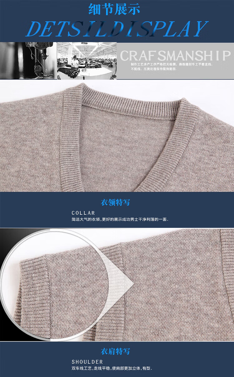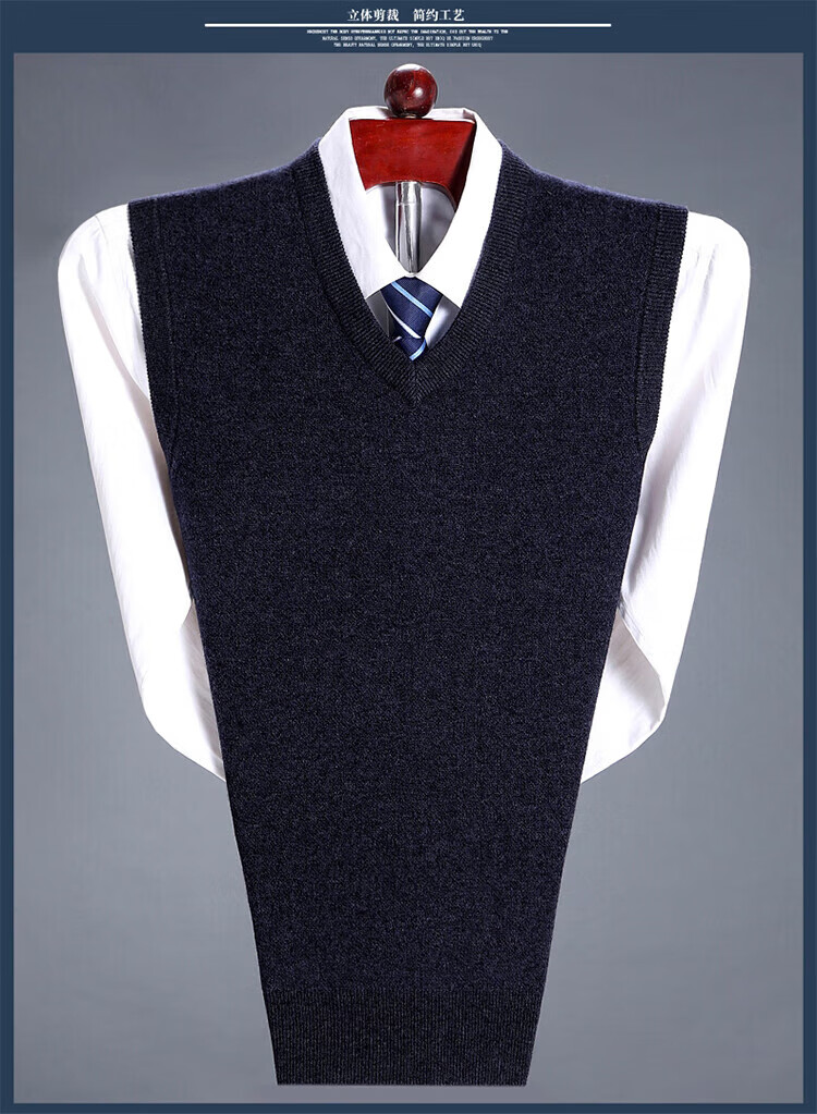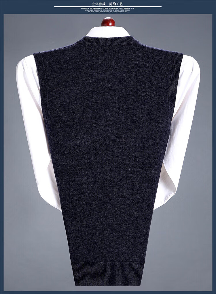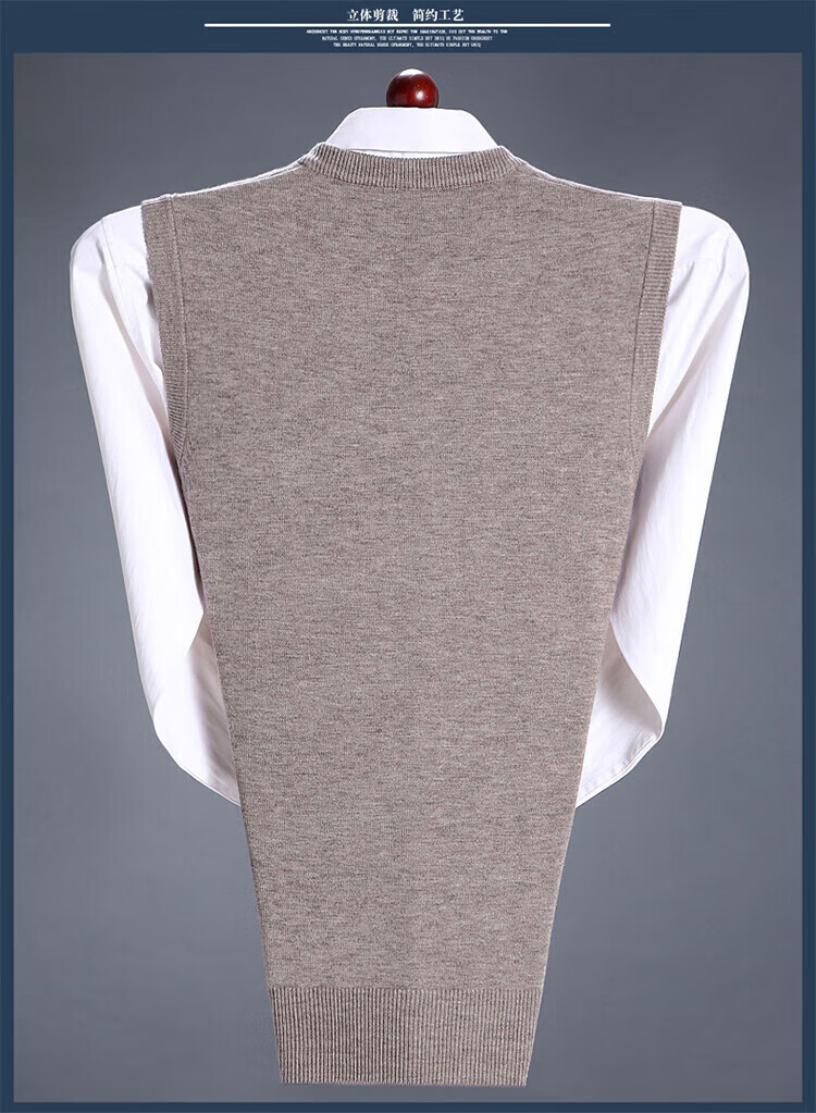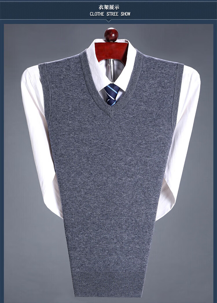 斯市羊绒衫男背心加厚V领中老年纯山羊绒宽松马甲坎肩毛衣 灰色 4XL 195/108A(135码)