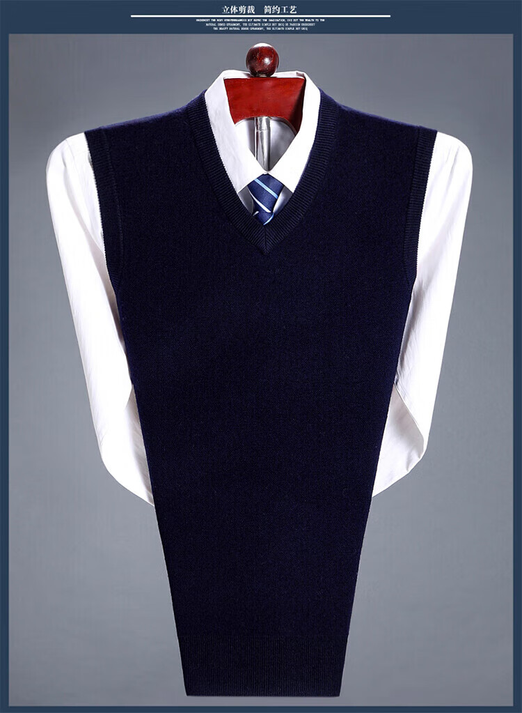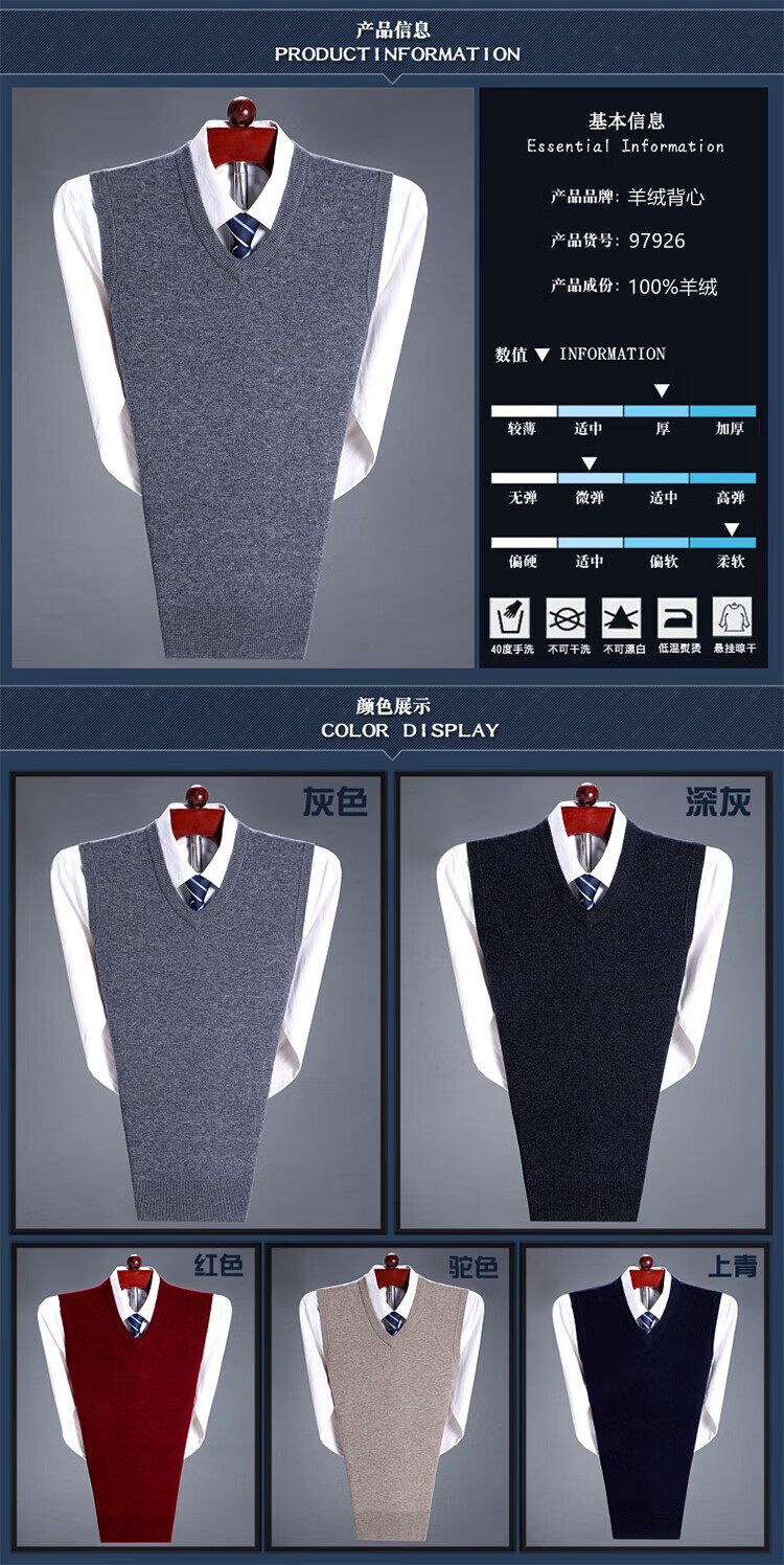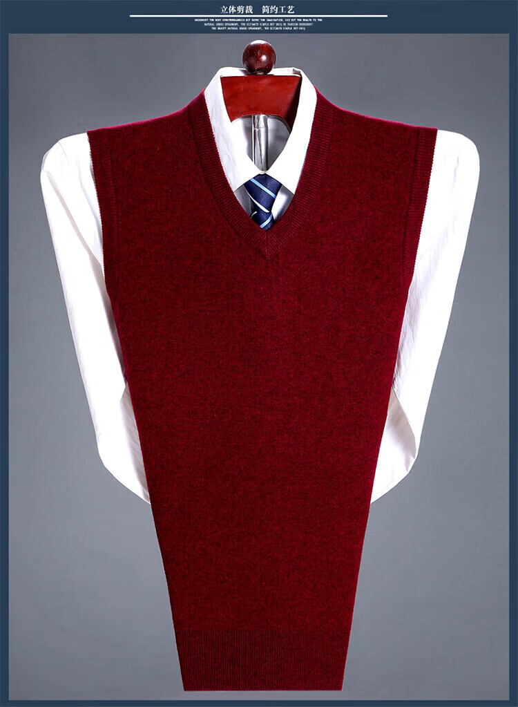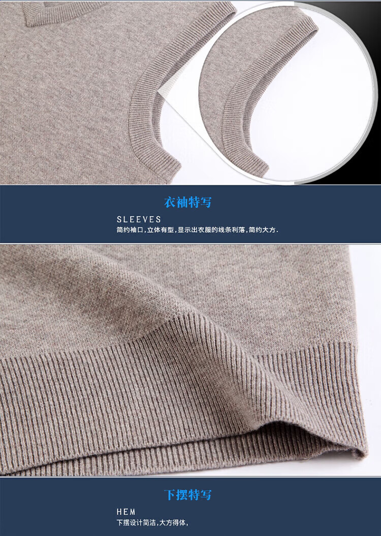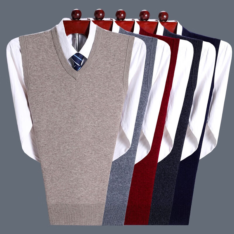 斯市羊绒衫男背心加厚V领中老年纯山羊绒宽松马甲坎肩毛衣 灰色 4XL 195/108A(135码)