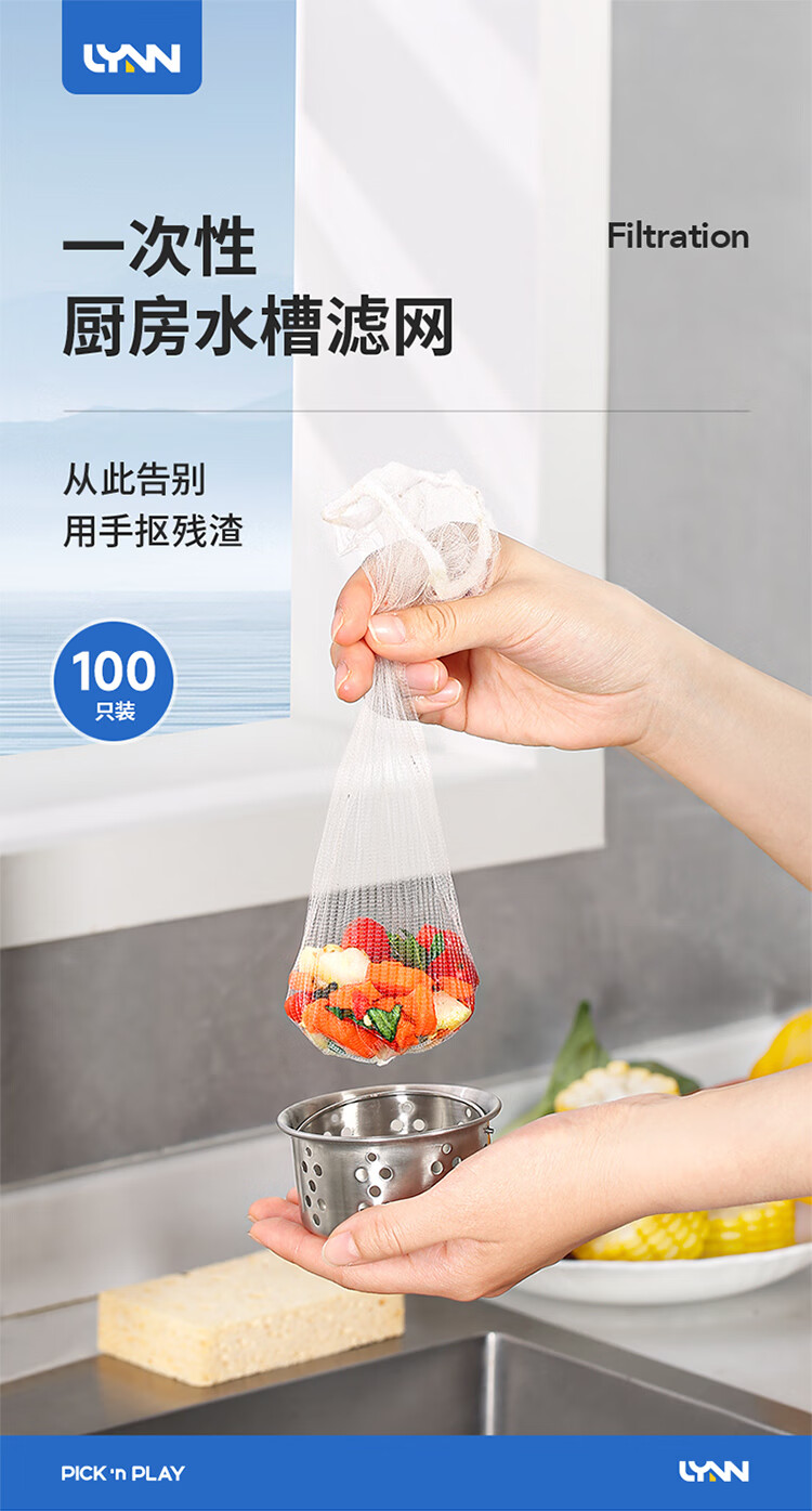 LYNN水槽过滤网100只一次性加大号 厨房洗碗滤池下水道水池地漏筛网 一次性特大加厚防尘罩30只