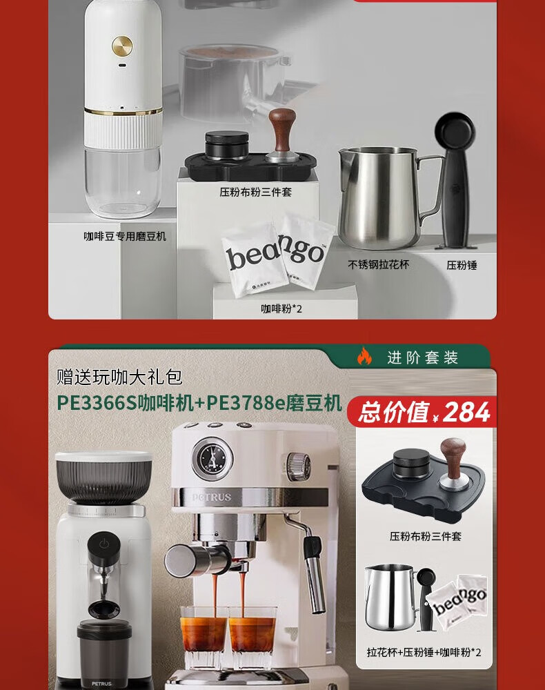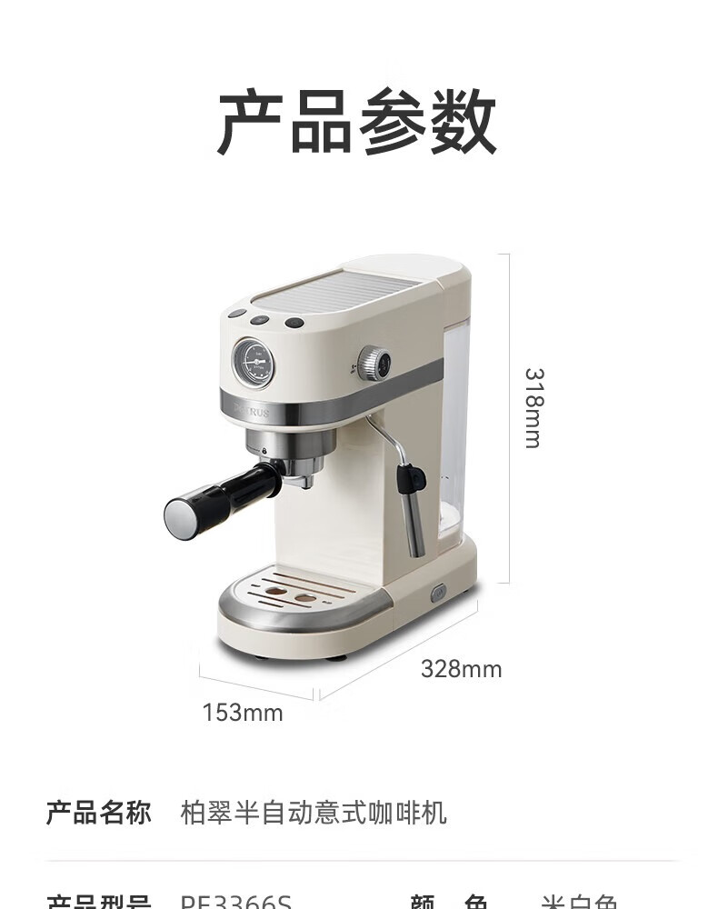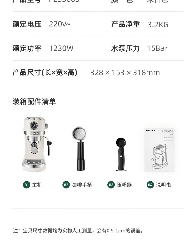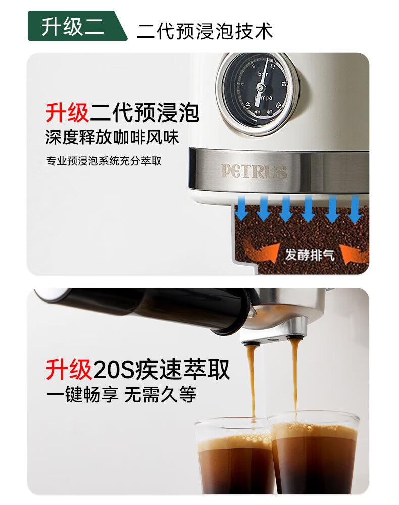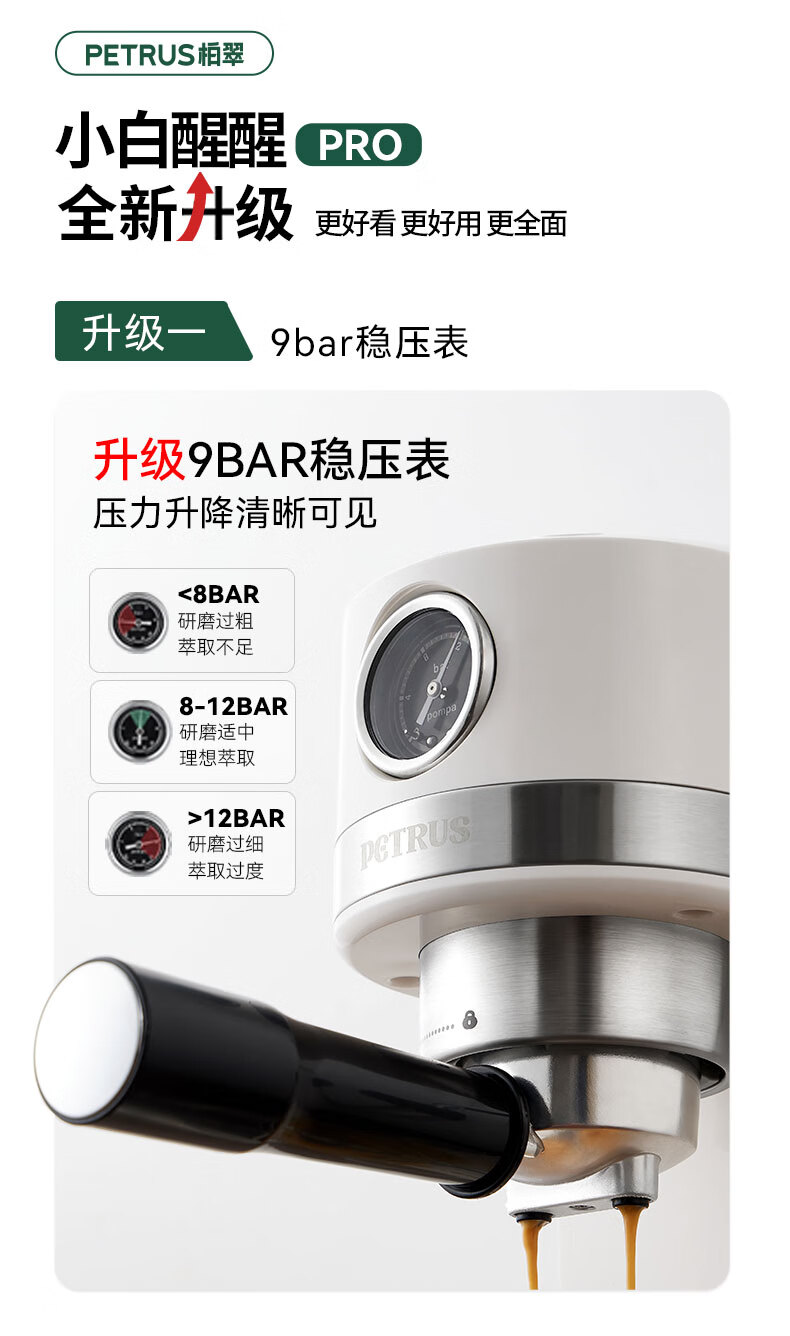 柏翠petrus咖啡机3366小白醒醒Pro升级款意式半自动全自动小型家用办公使用送礼礼物 PE3366S 小白醒醒pro升级款PE3366S【豪华版】