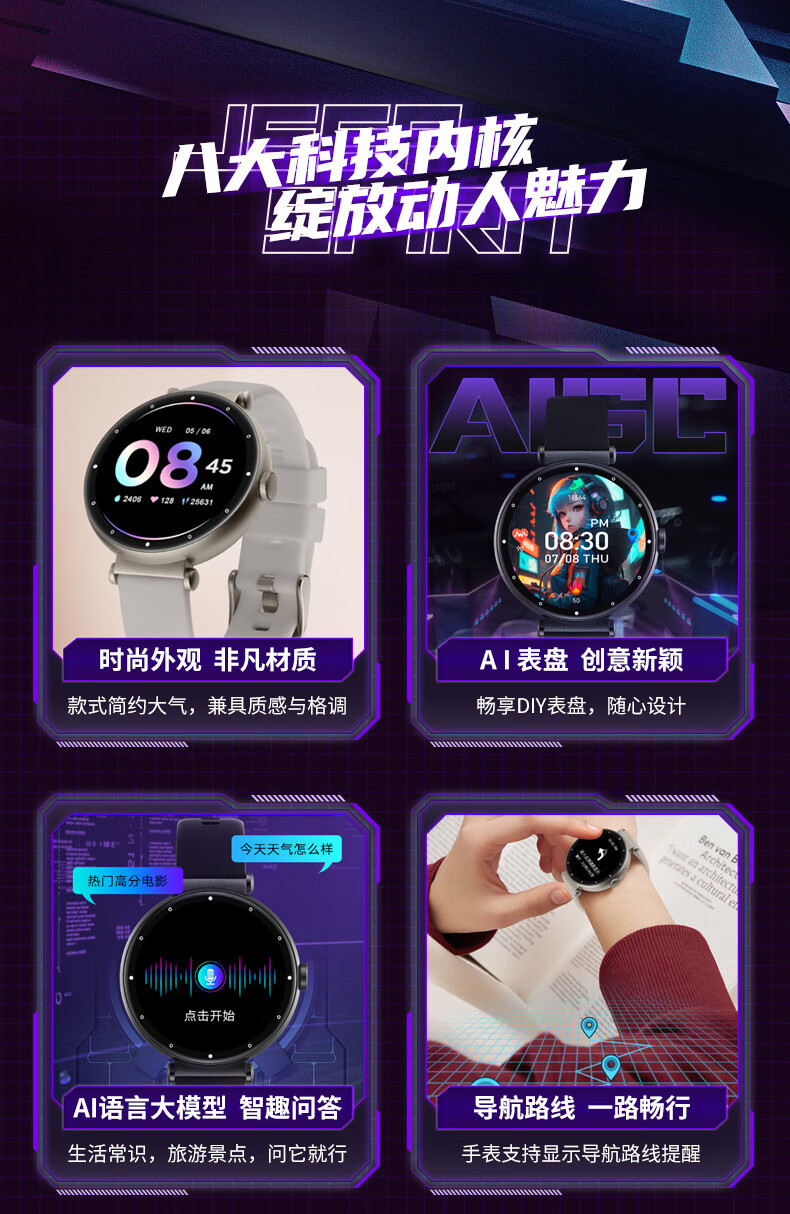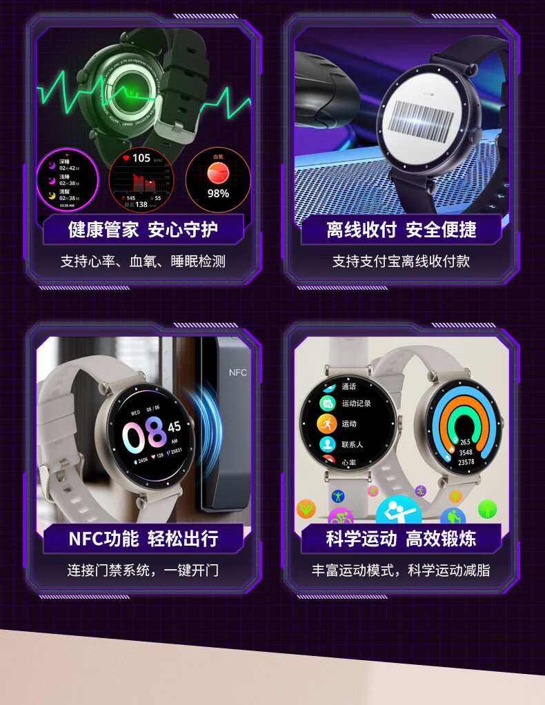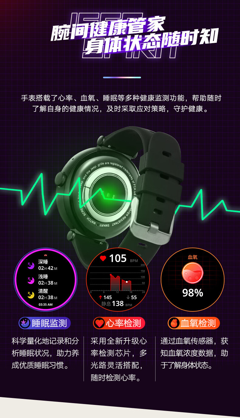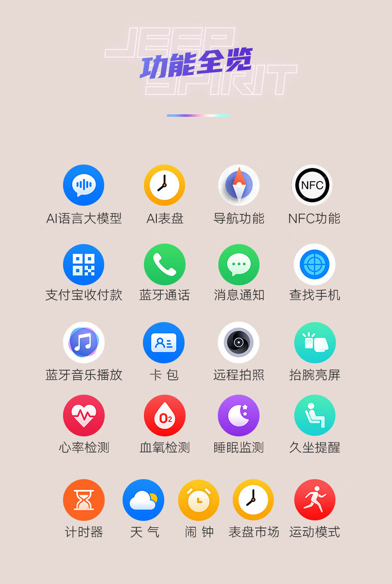 Jeep吉普智能手表女款蓝牙通话消息提醒AI智能语音移动支付NFC门禁健康运动管理测心率血氧睡眠防水S02 Jeep女款智能手表健康管理心率血氧睡眠【灰色】