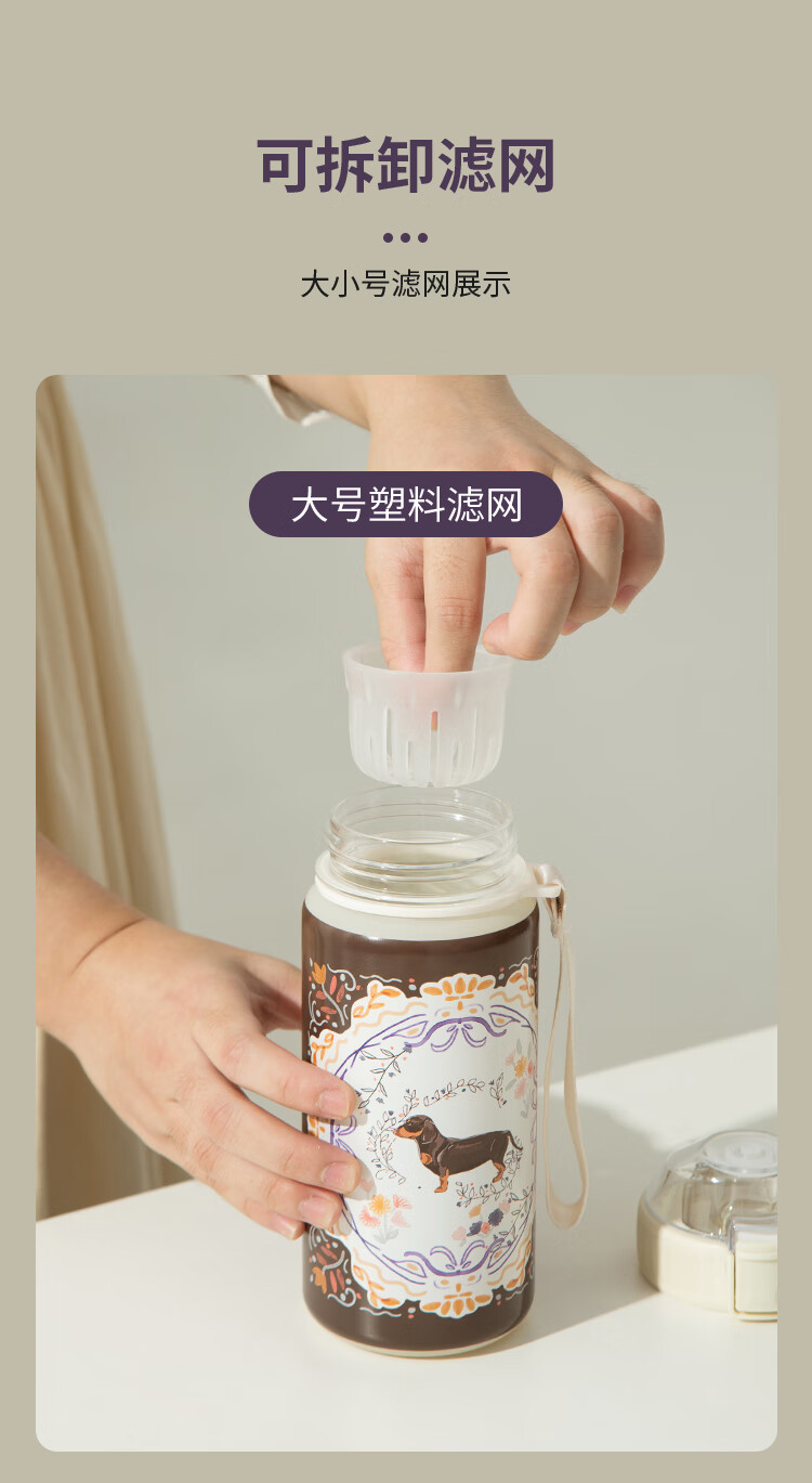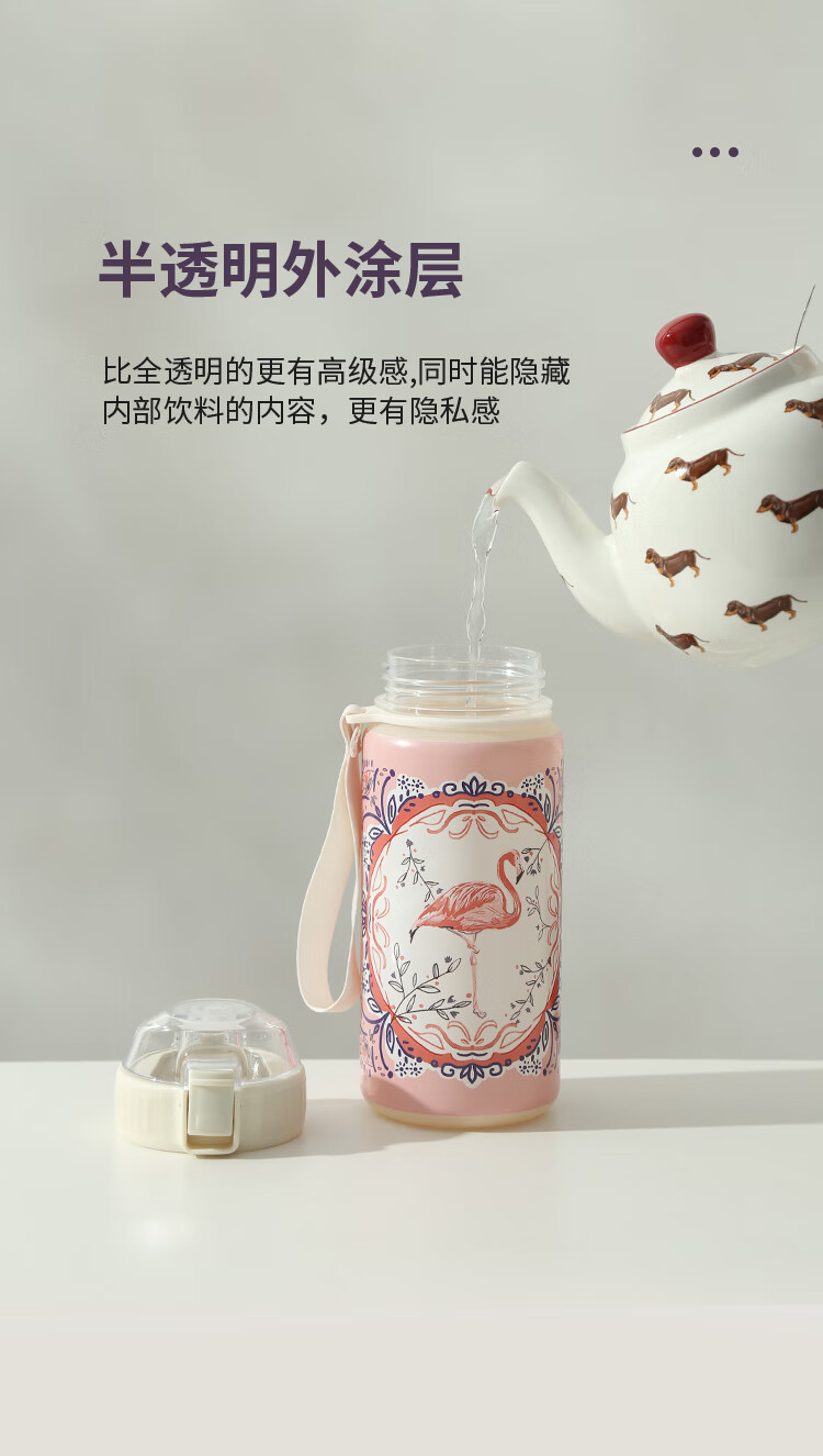 TAEFAIR火烈鸟弹跳杯Tritan茶水分离学生成人便携英式创意含茶滤泡茶水杯 C-镜框火烈鸟Tritan弹跳杯650ml