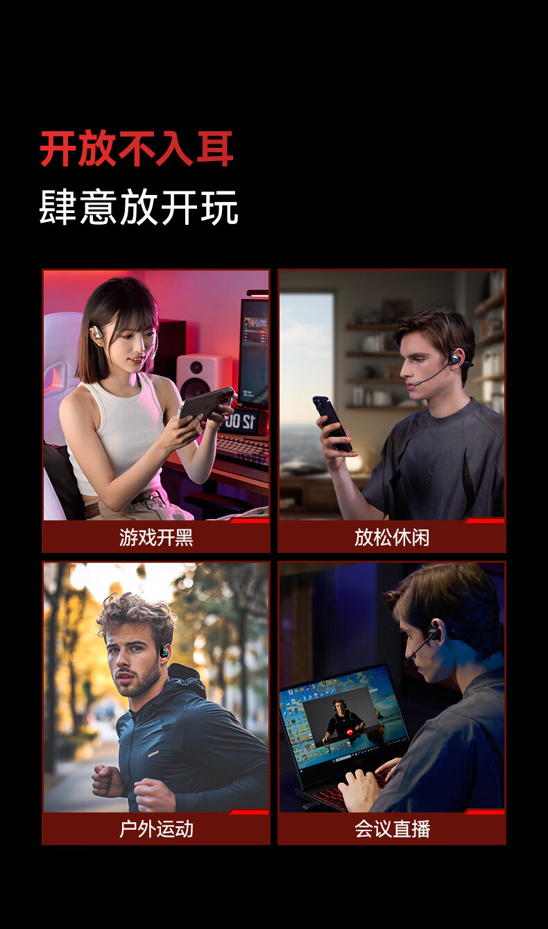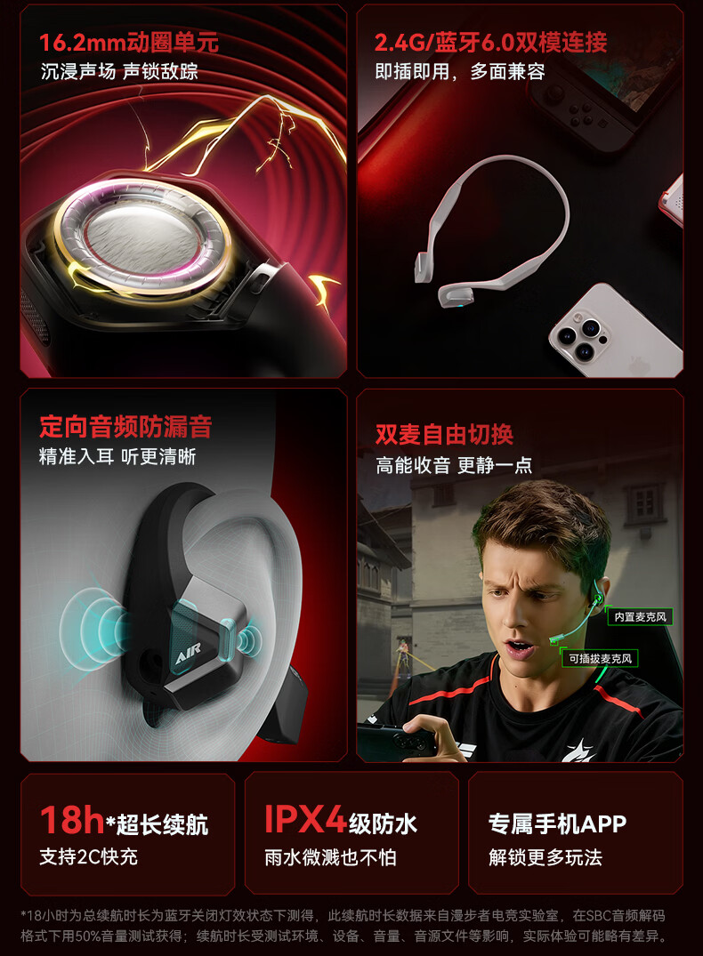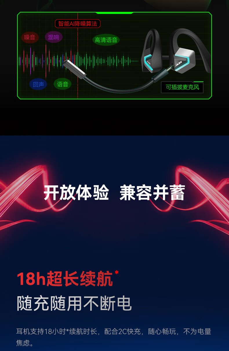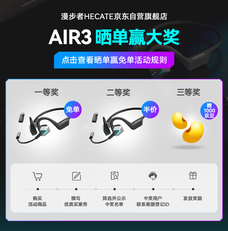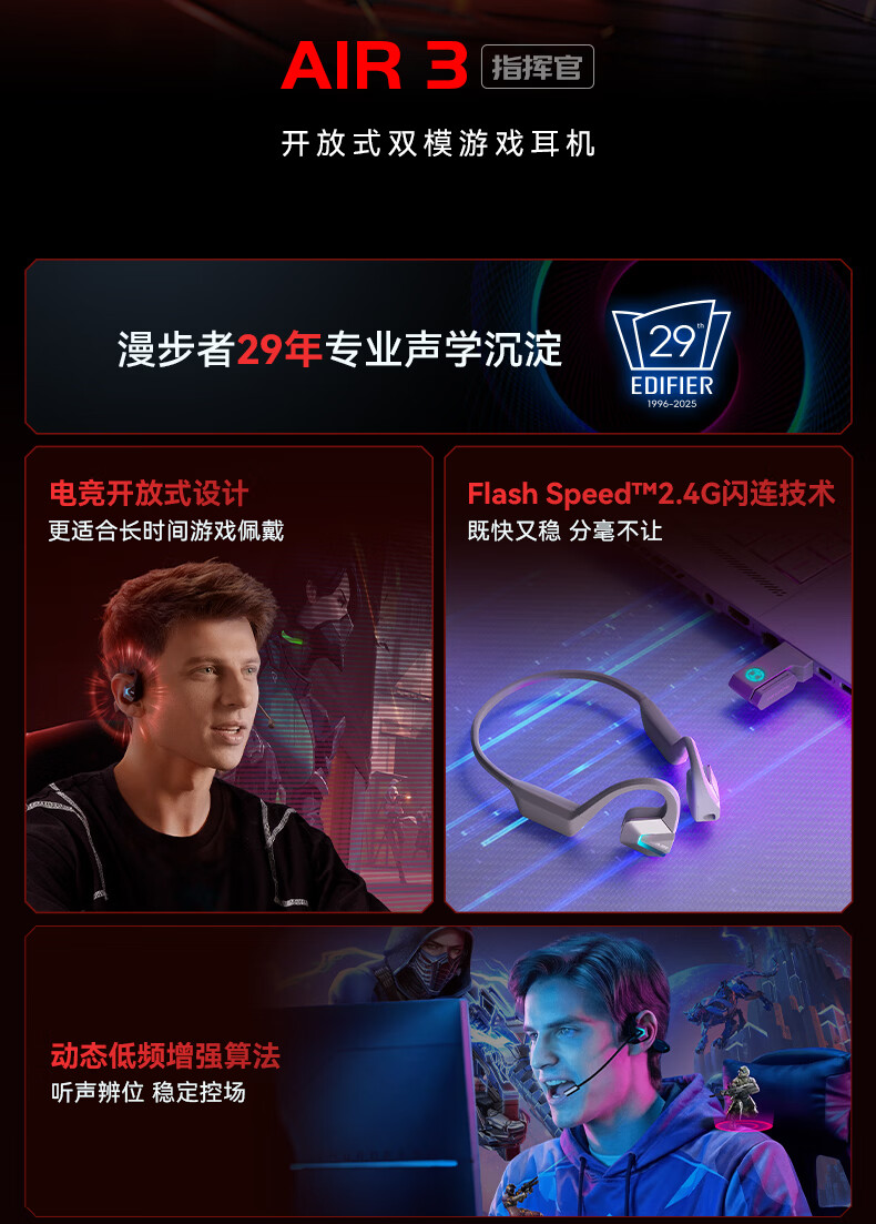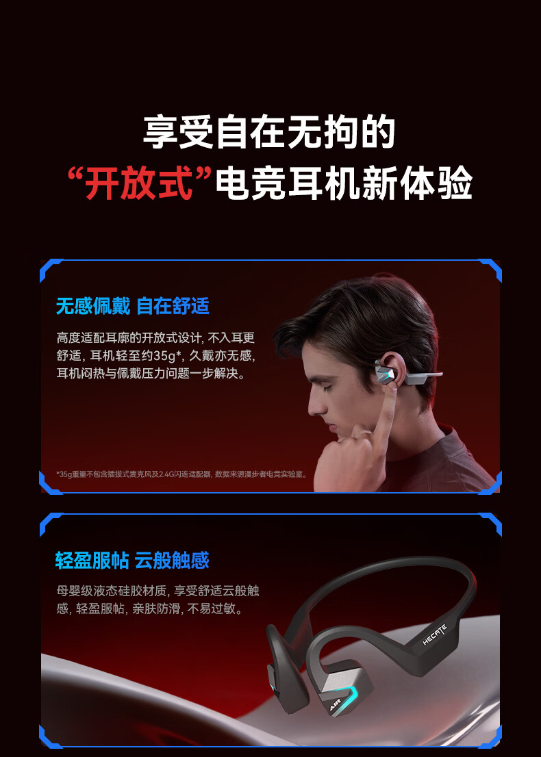 漫步者(EDIFIER)HECATE AIR3指挥官2.4G蓝牙无线耳机挂耳开放式不入耳长续航跑步运动骨传导概念游戏耳机 星际黑