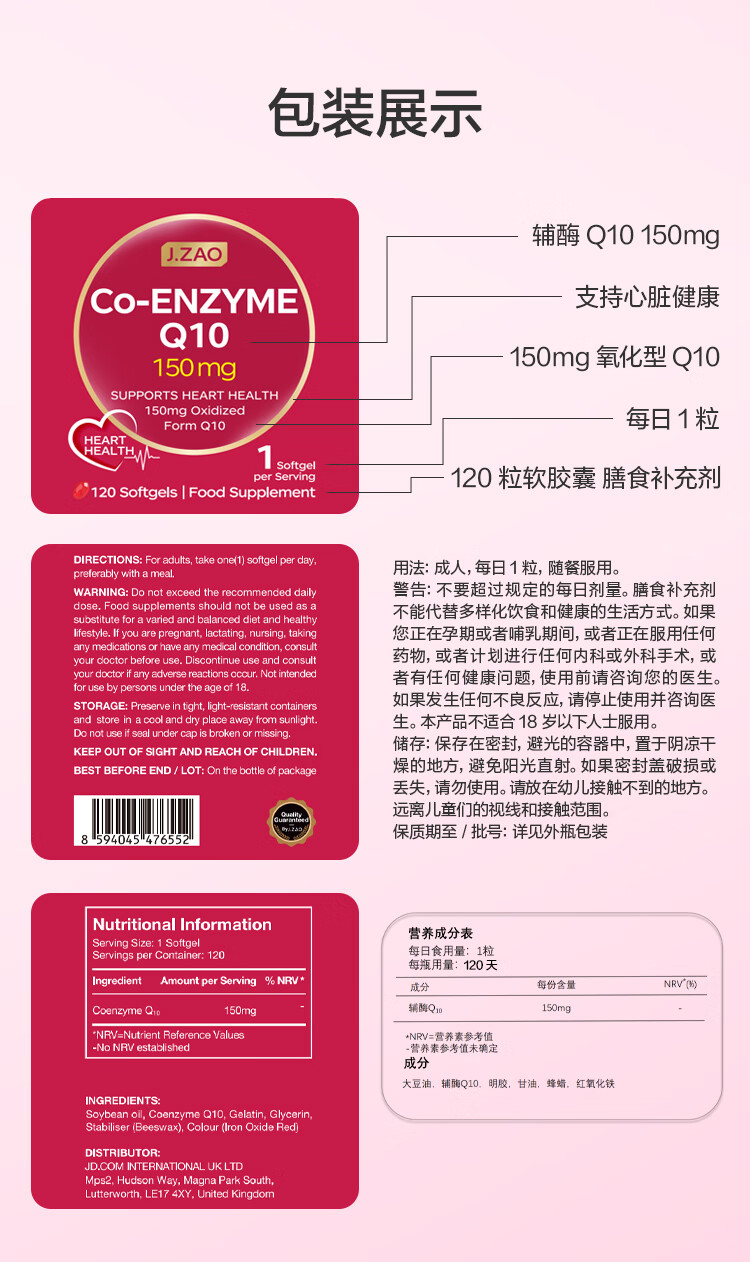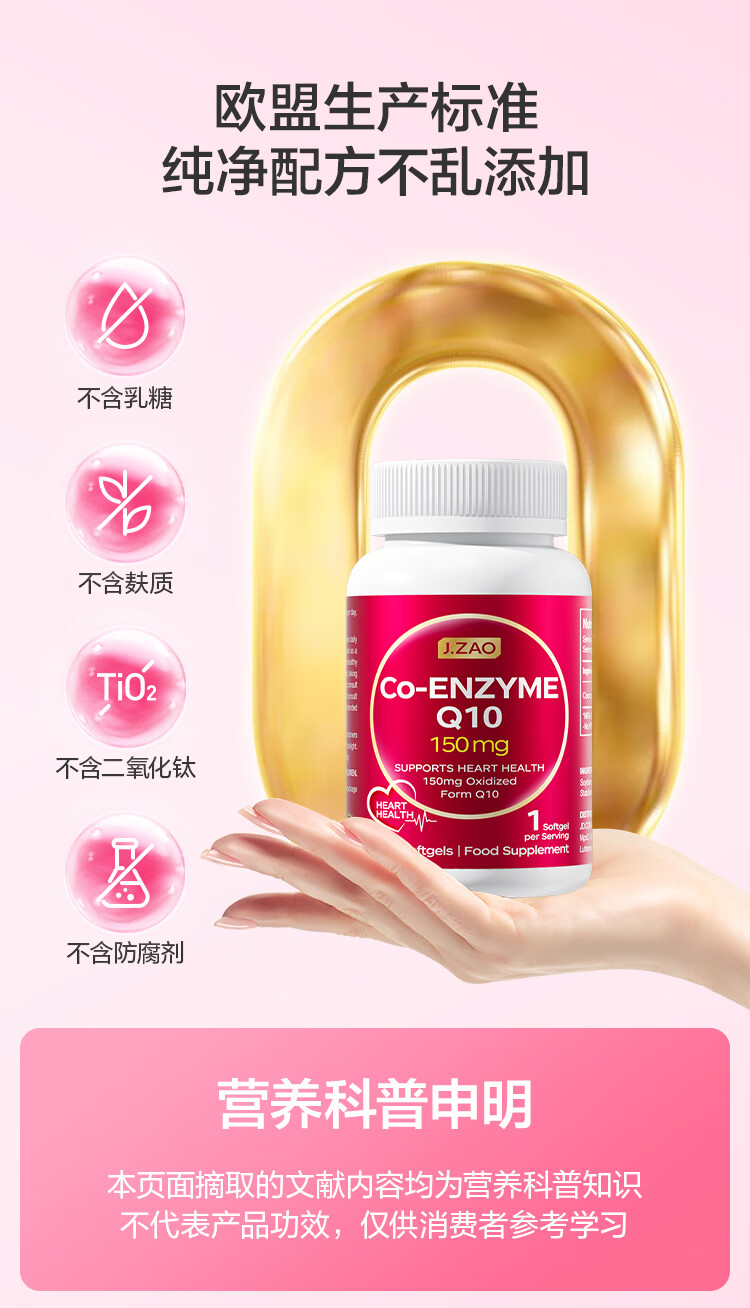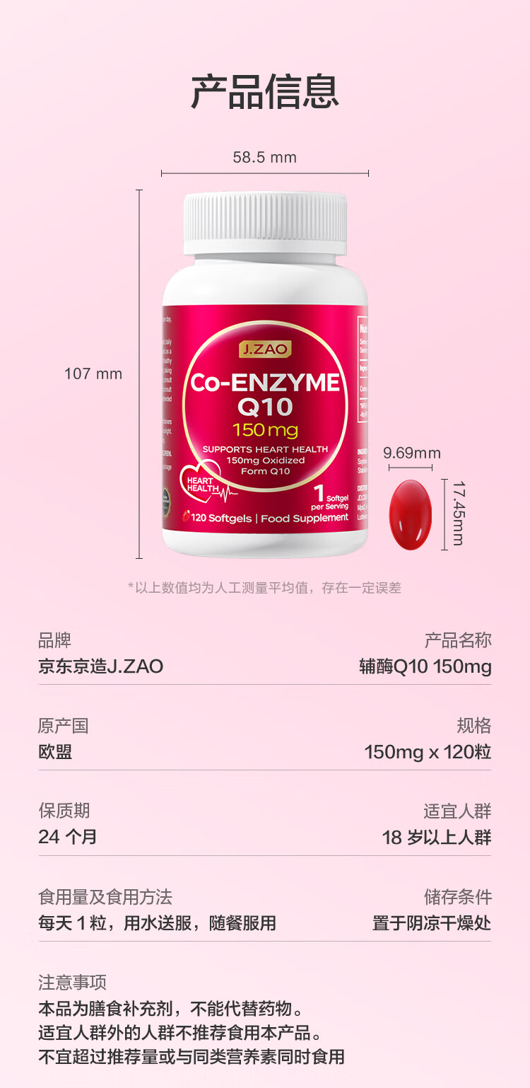 J.ZAO 京东京造150mg辅酶q10胶囊120粒/瓶 呵护心脏 熬夜备孕优选 进口