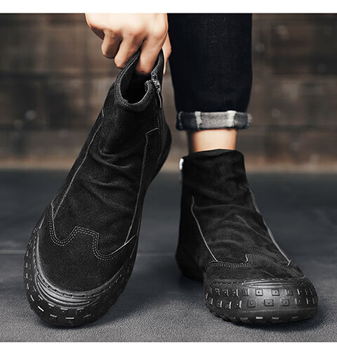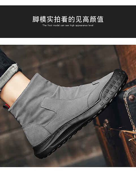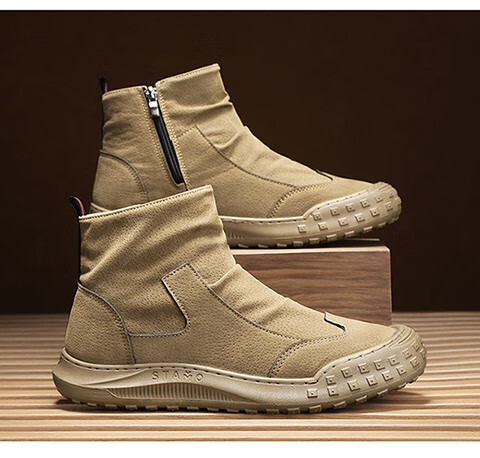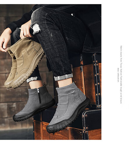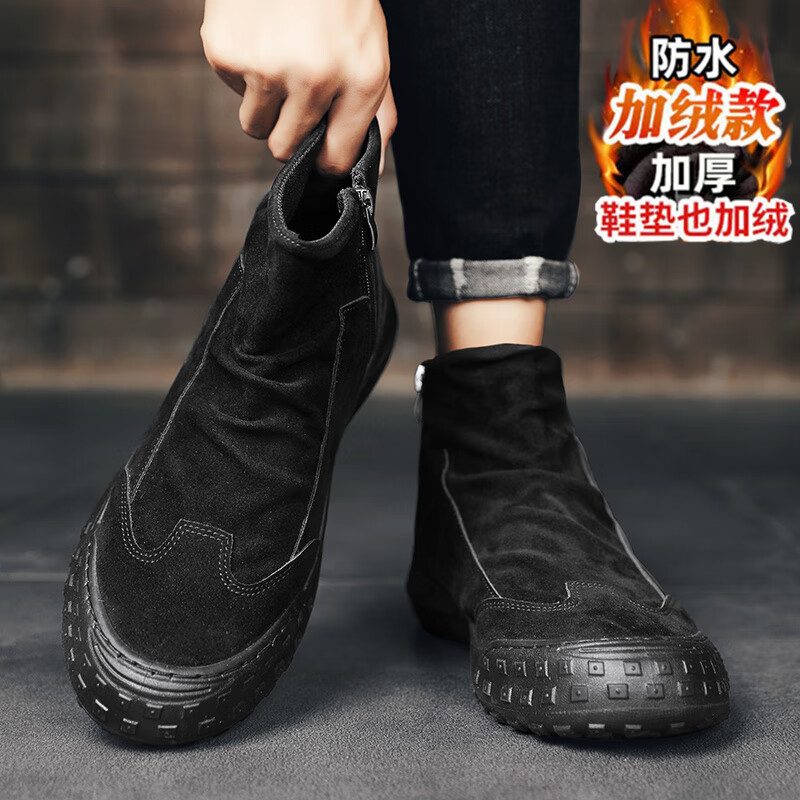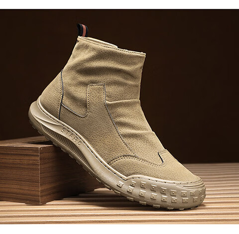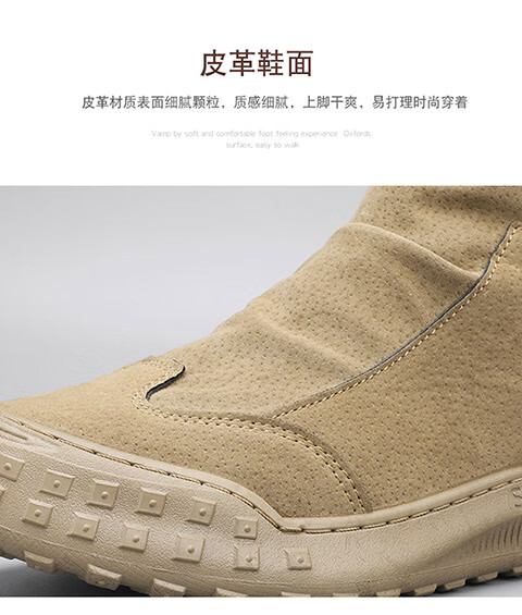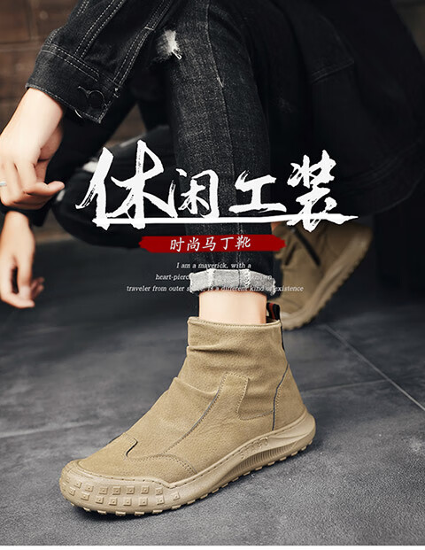 稻草人(MEXICAN)真皮高帮鞋子男士2026新款秋冬季马丁靴一脚蹬劳保鞋加绒保暖棉鞋 卡其(四季款) 39