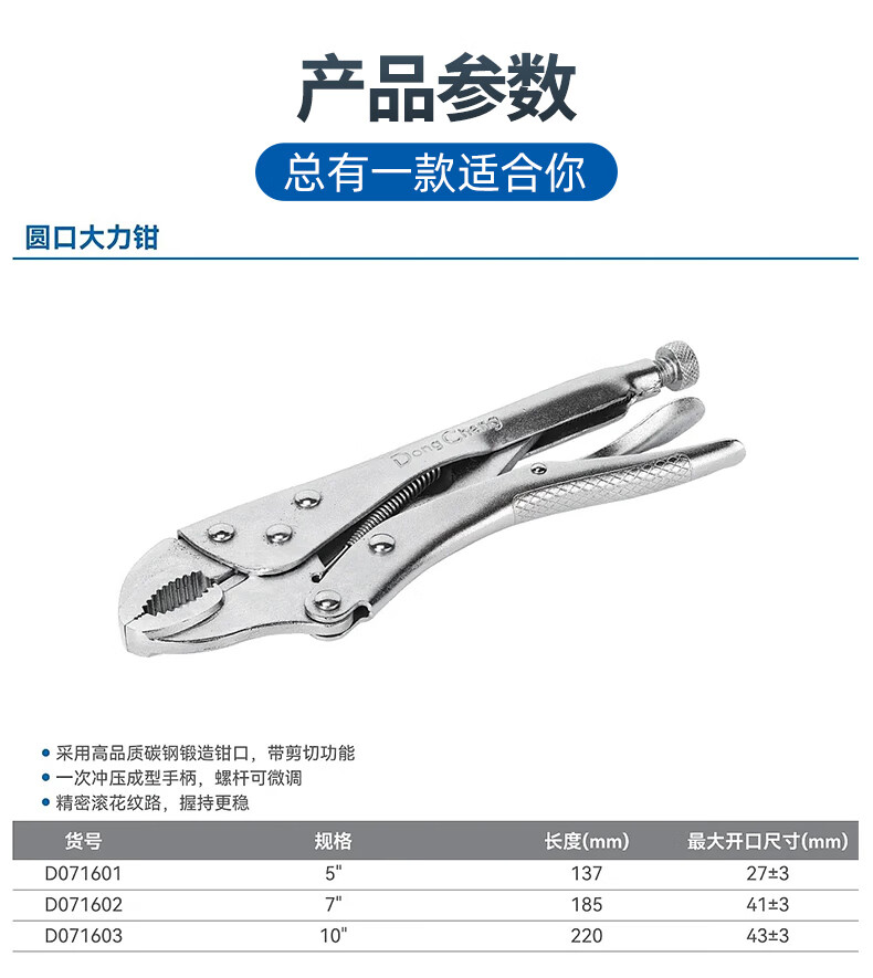 东成 大力钳圆口/直口/尖嘴/C型/铁皮/链条/U型焊接大力钳 5寸圆口大力钳D071601